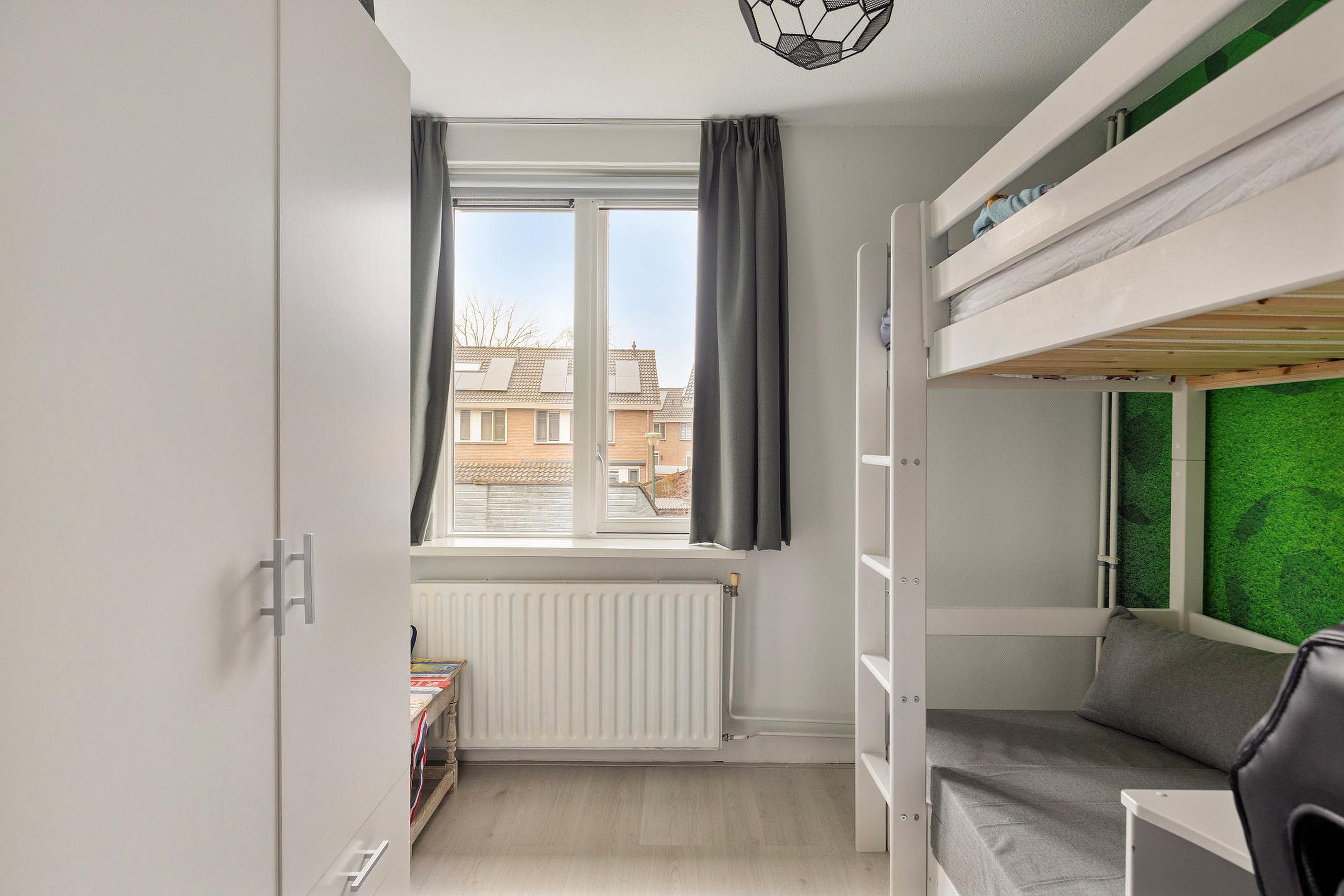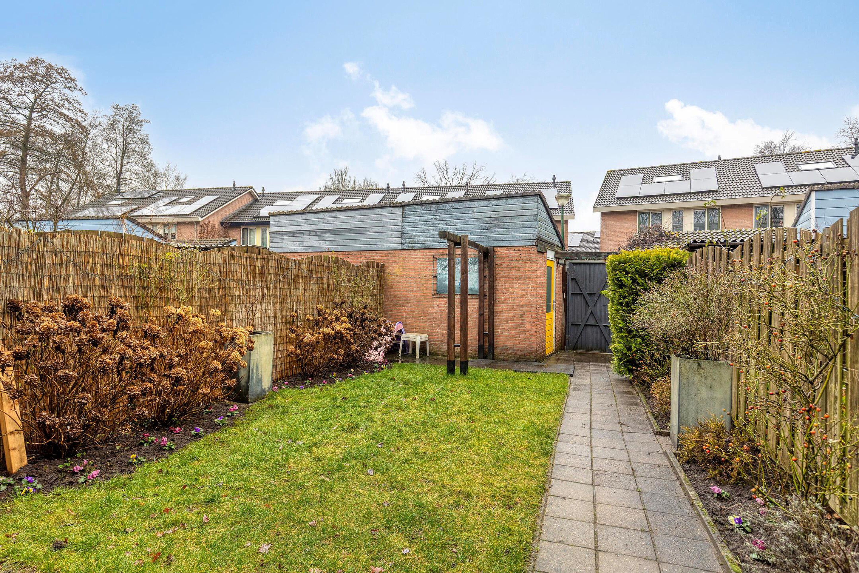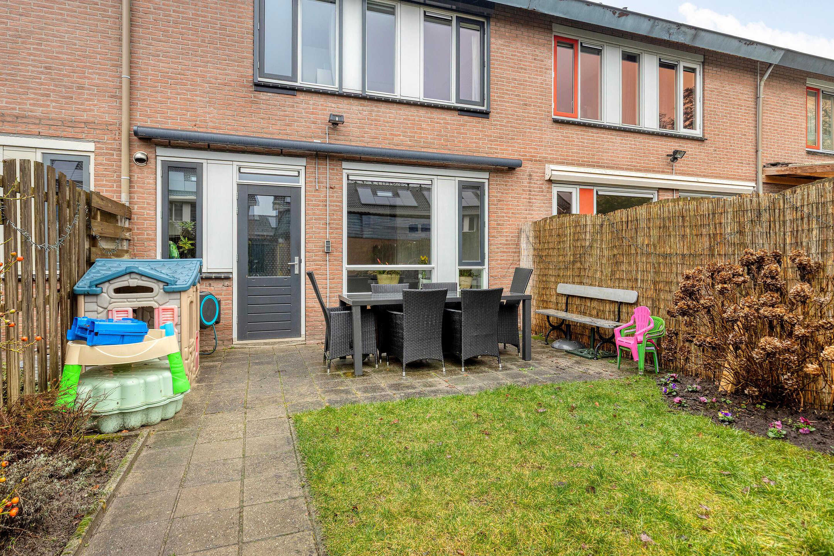 De achtertuin is overzichtelijk en verzorgd aangelegd met een combinatie van terras en gazon. Direct achter de woning bevindt zich een ruim terras waar u met gemak een grote eettafel plaatst voor gezellige diners buiten. Het gazon biedt speelruimte voor kinderen of plaats voor een trampoline. Achter in de tuin staat een vrijstaande berging, ideaal voor fietsen en tuingereedschap, en via de achterom is de tuin gemakkelijk bereikbaar. De erfafscheidingen zorgen voor privacy, waardoor u hier ongestoord kunt genieten van het buitenleven.