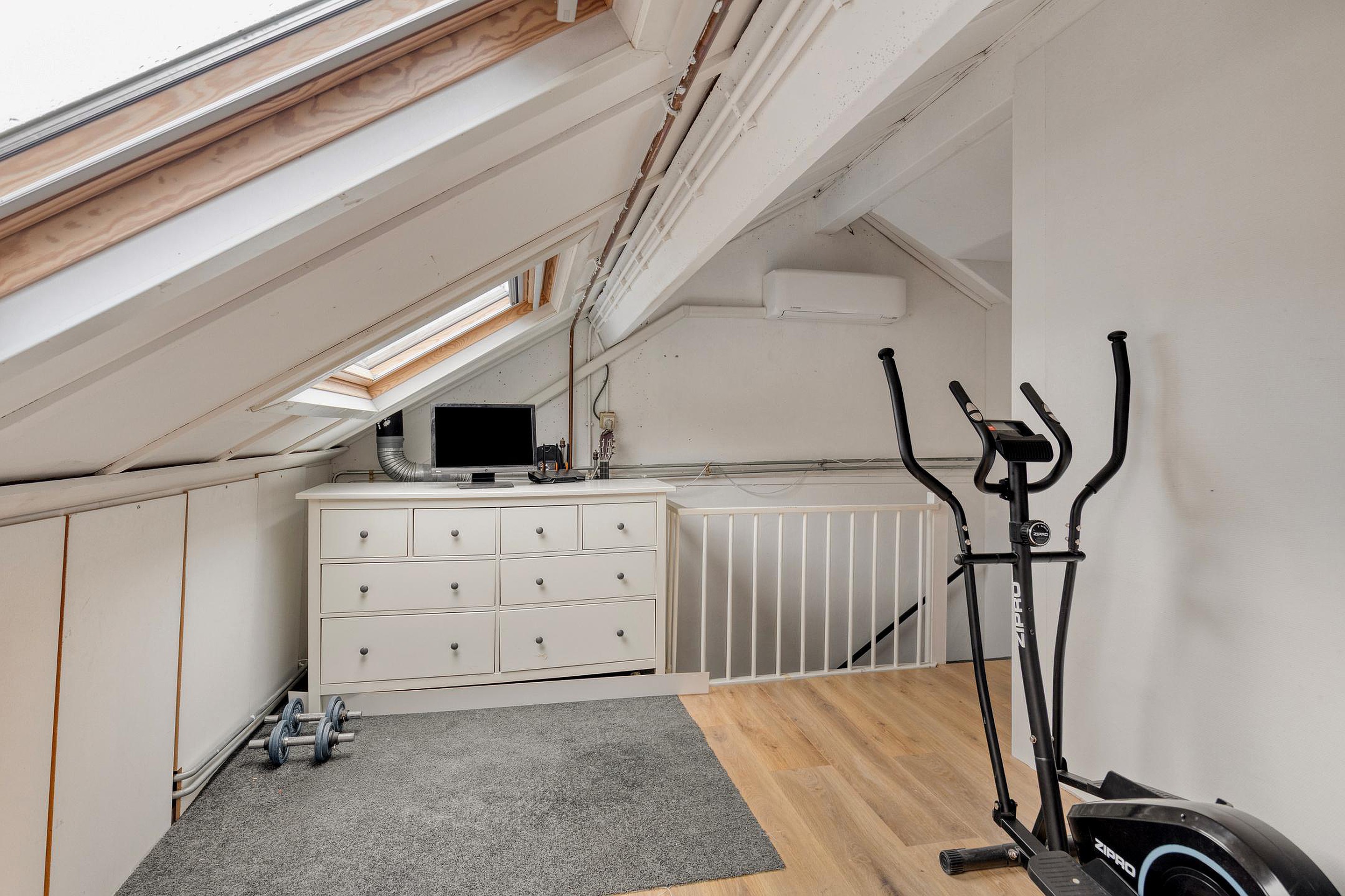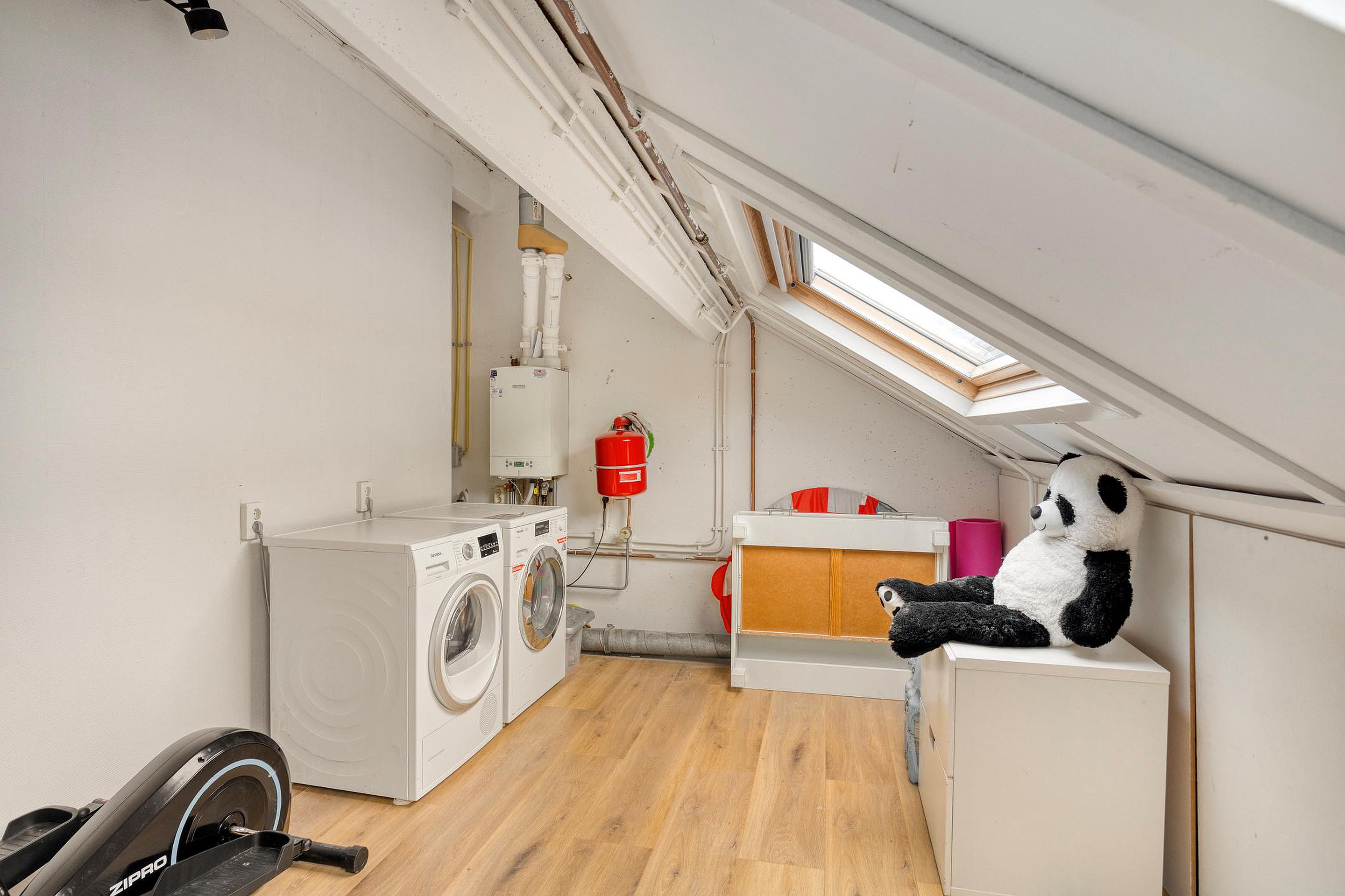 Een vaste trap brengt u naar de tweede verdieping, waar een ruime overloop met dakramen direct opvalt door de hoeveelheid daglicht. Hier vindt u de opstelling voor witgoed, de cv-installatie en extra bergruimte achter de knieschotten. Daarnaast is er een volwaardige vijfde slaapkamer gerealiseerd. De dakkapel is voorzien van geïntegreerde rolluiken en ook hier zorgt de airconditioning voor een aangenaam klimaat, zowel in de zomer als in de winter. Deze verdieping leent zich uitstekend voor een tienerkamer, werkruimte of multifunctionele invulling.