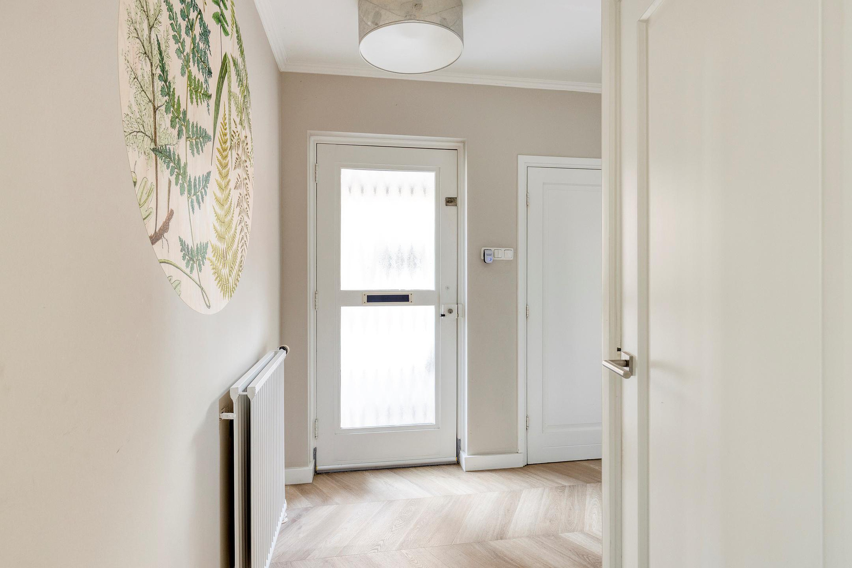 Via de verzorgde voortuin en de ruime oprit, waar u met gemak meerdere auto’s parkeert, betreedt u de woning. Ook in de directe omgeving is er voldoende parkeergelegenheid. Eenmaal binnen komt u in de ruime hal, die u direct een warm welkom geeft en toegang biedt tot de woonkamer, de trap naar de eerste verdieping en de toiletruimte.
