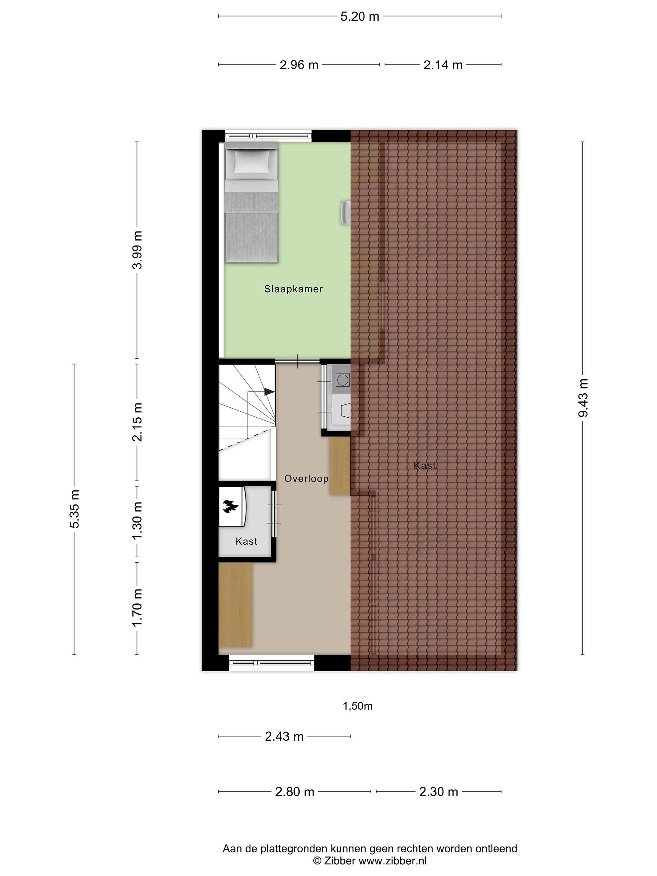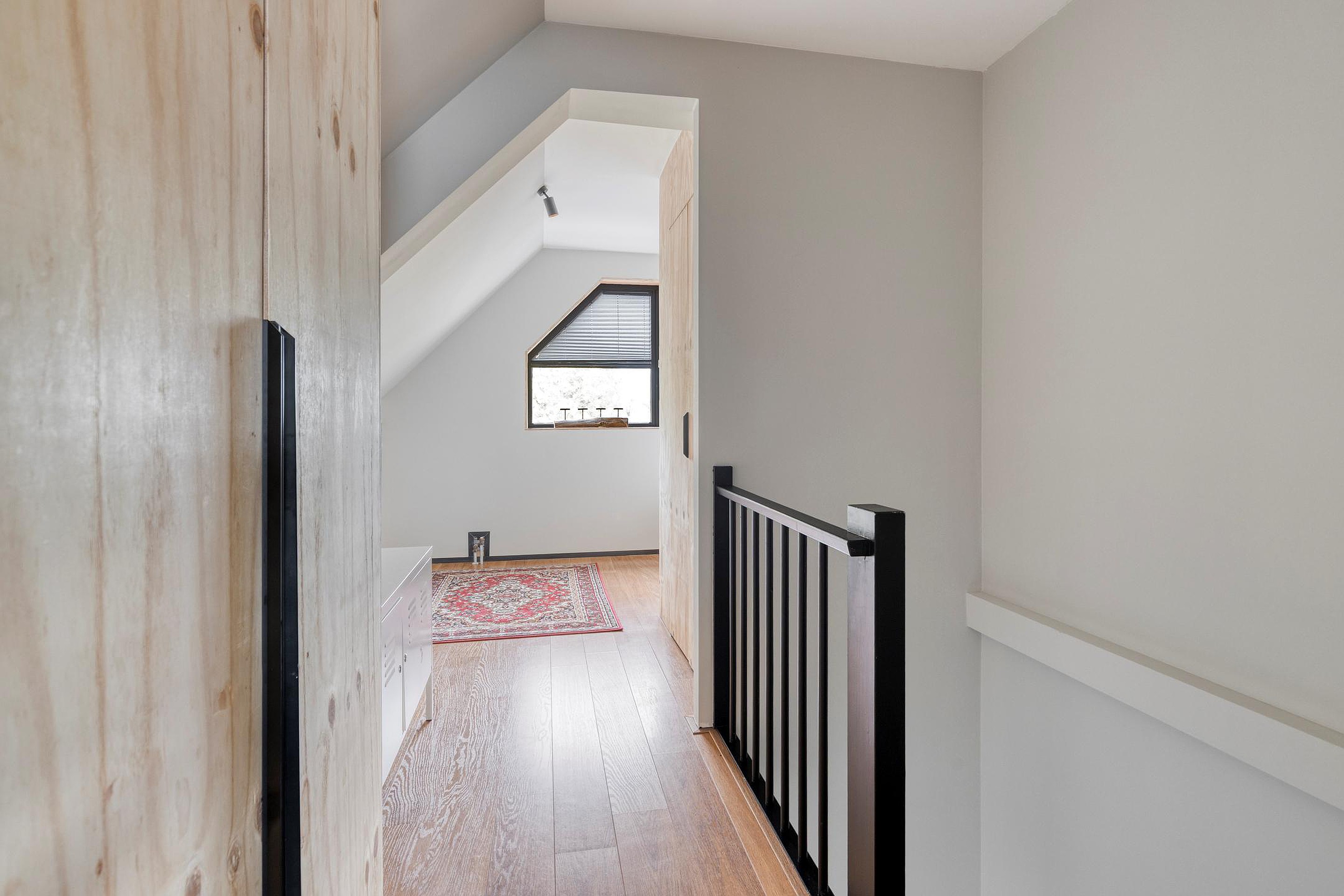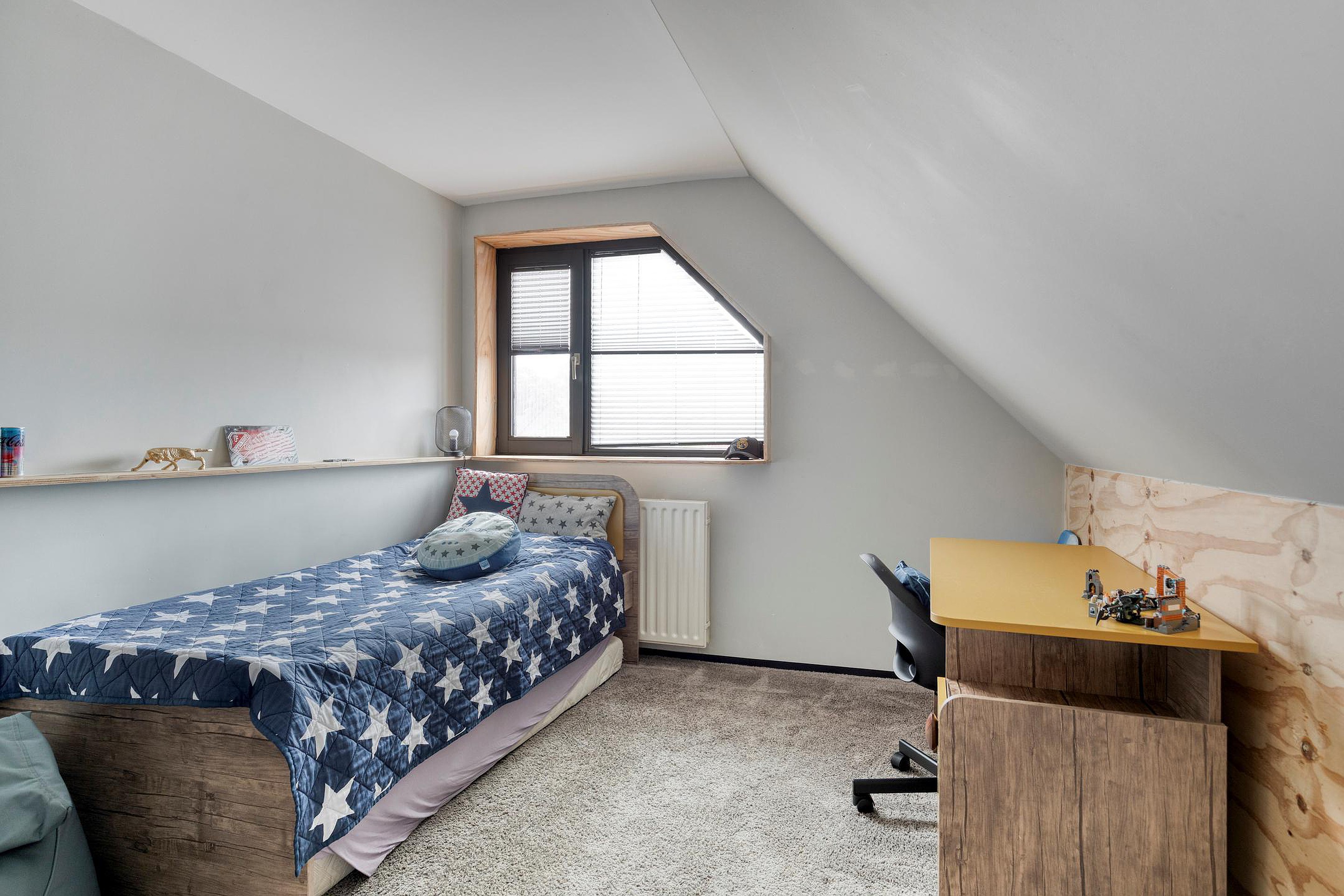 Ook de zolderverdieping is volledig benut; van de ruime overloop tot de vierde slaapkamer. De overloop is afgewerkt met opbergruimte achter het knieschot en een tweetal maatwerk bergkasten: één voorzien van de aansluitingen voor wasmachine en droger, de ander van de cv-installatie. De slaapkamer is eveneens netjes afgewerkt met een lichte tapijtvloer, extra opbergruimte en een gevelraam. Dankzij het slimme gebruik van de schuine wanden en inbouwkasten kunt u hier uitstekend werken, studeren of logeren.