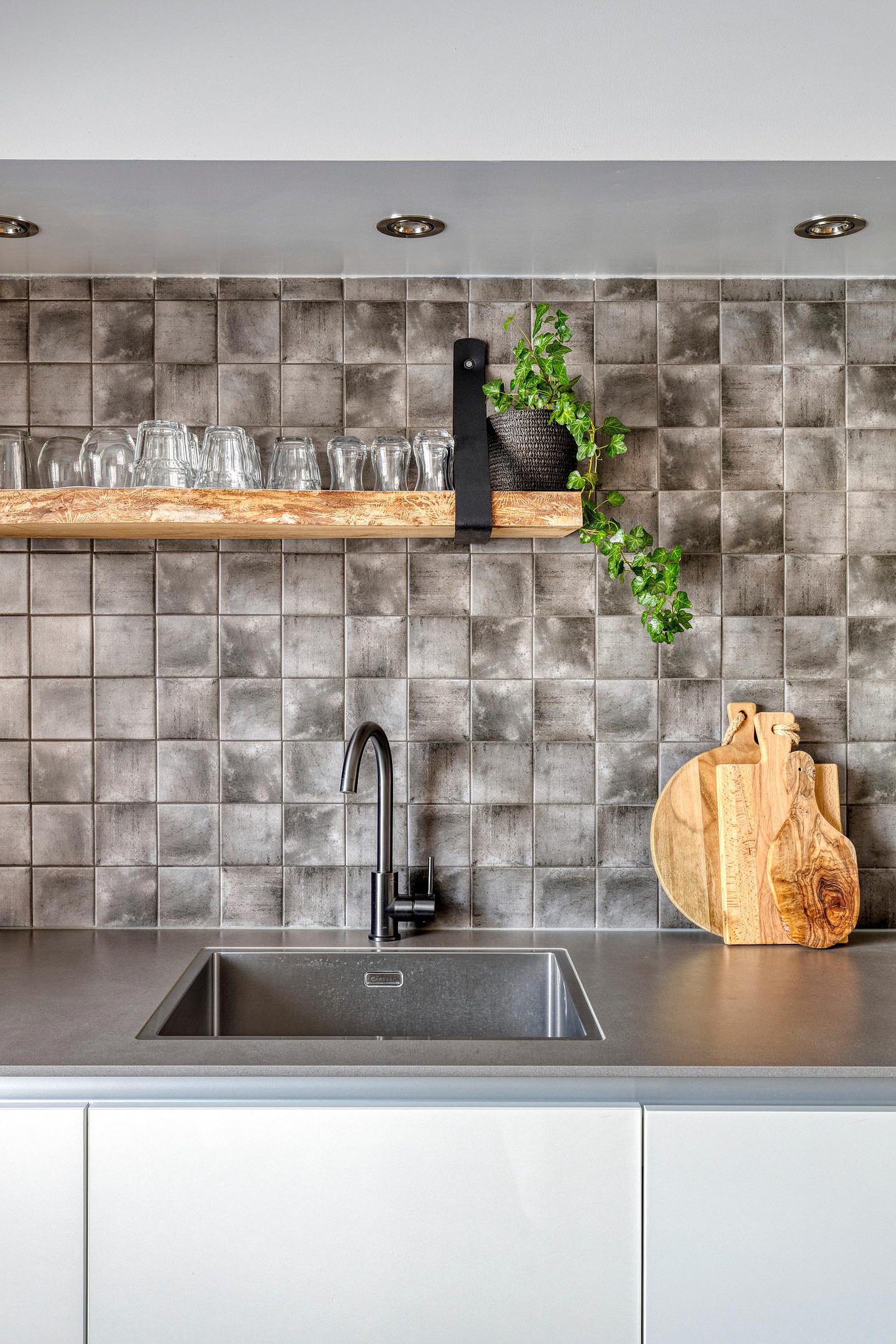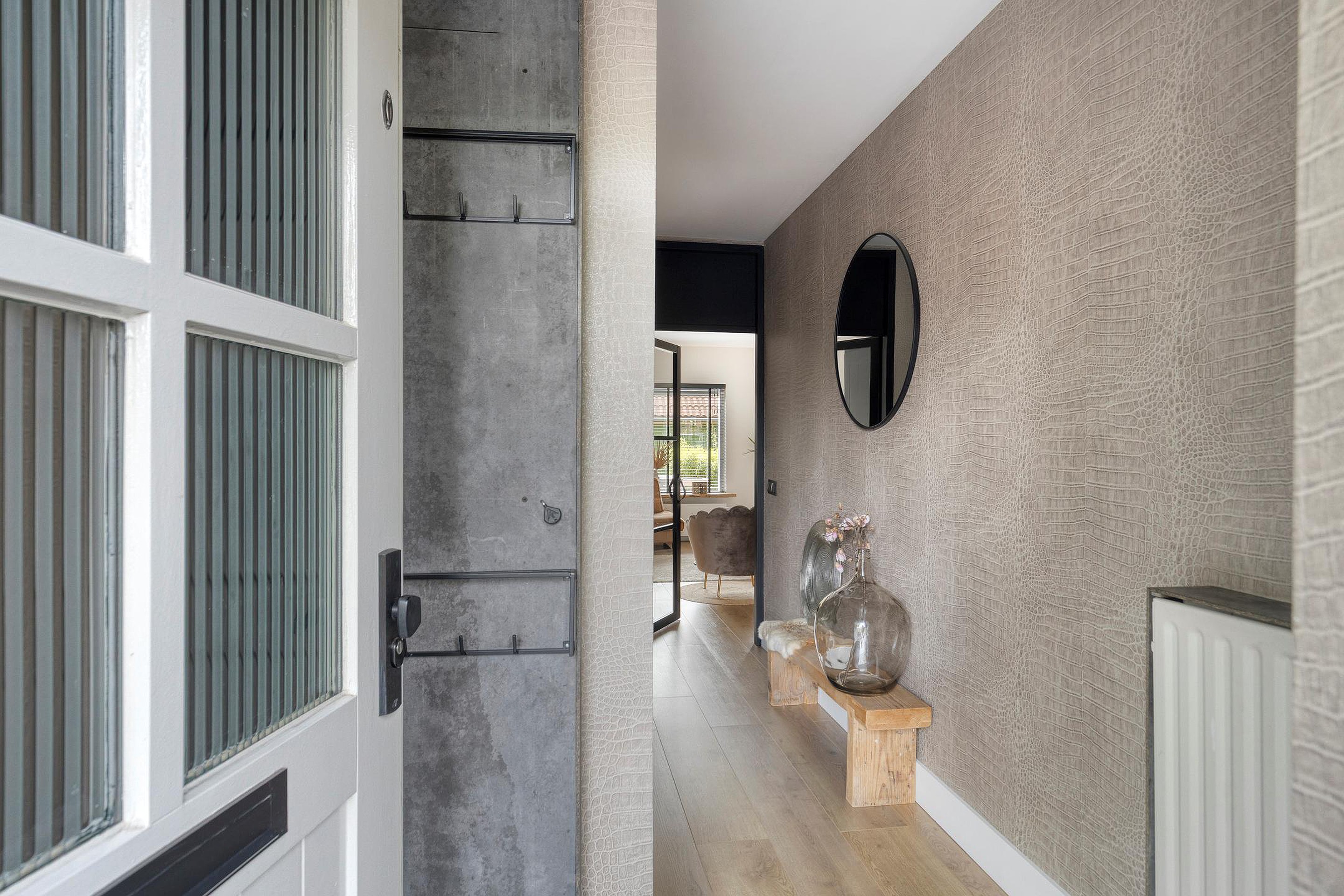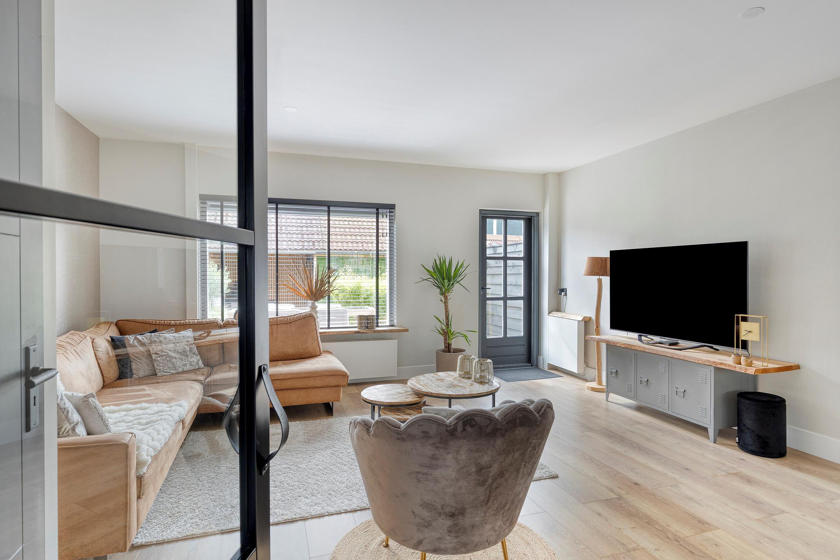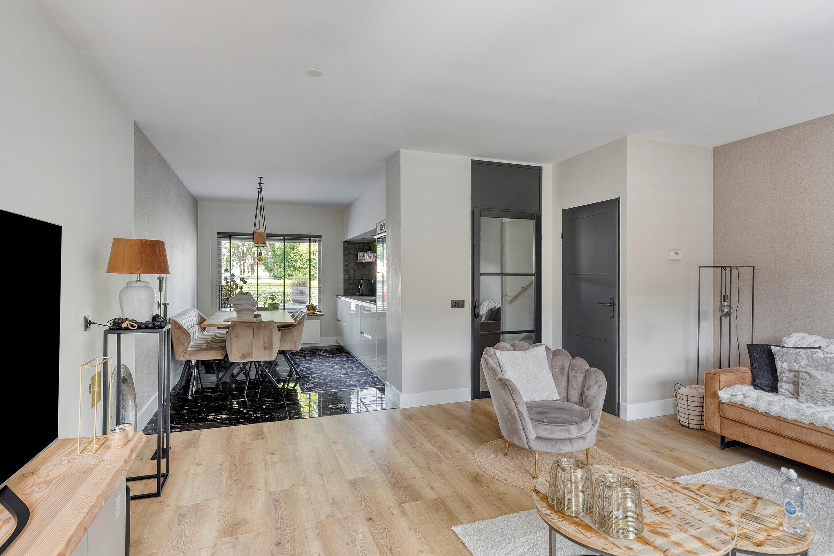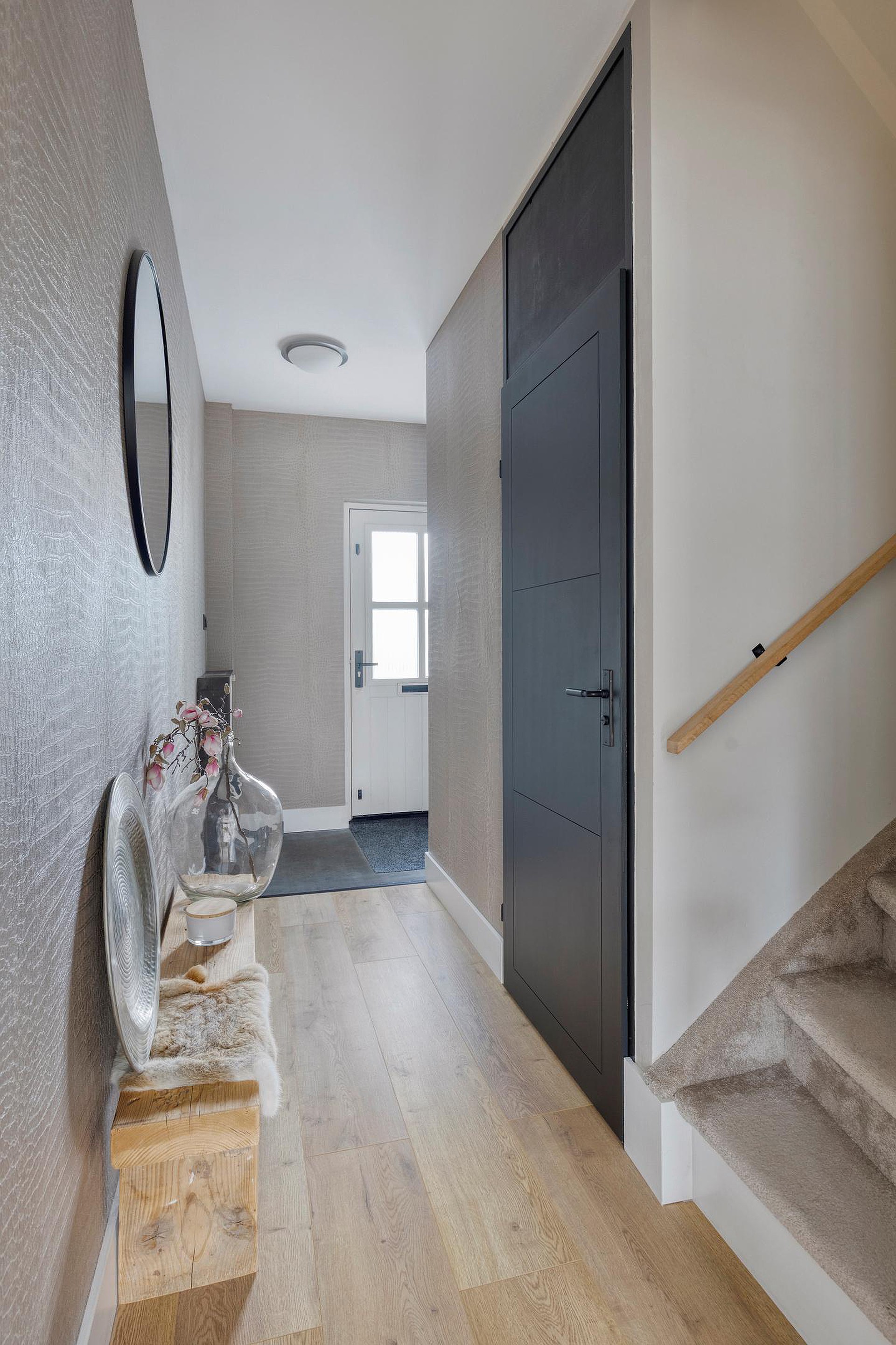 Via de strakke voortuin en overdekte entree stapt u binnen in de hal, voorzien van een moderne toiletruimte, meterkast, trapopgang en toegang tot de woonkamer via een stijlvolle taatsdeur. Wat direct opvalt, zijn de luxe afwerkingen zoals de zwarte binnendeuren, hoge plinten en warme laminaat-vloer die doorloopt in het zitgedeelte. Aan de achterzijde is er voldoende ruimte voor een sfeervol zitgedeelte, met een deur richting de tuin en volop lichtinval. De voorzijde is ingericht met een luxe open keuken en biedt ruimte voor een eethoek. Het rechte en lichte keukenmeubel is uitgerust met een inductiekookplaat, plafondafzuigkap, combi-oven, vaatwasser en koelkast. De combinatie van hoogglans fronten, een stoer werkblad en een betegelde achterwand in grijstinten zorgt voor een moderne, industriële uitstraling.