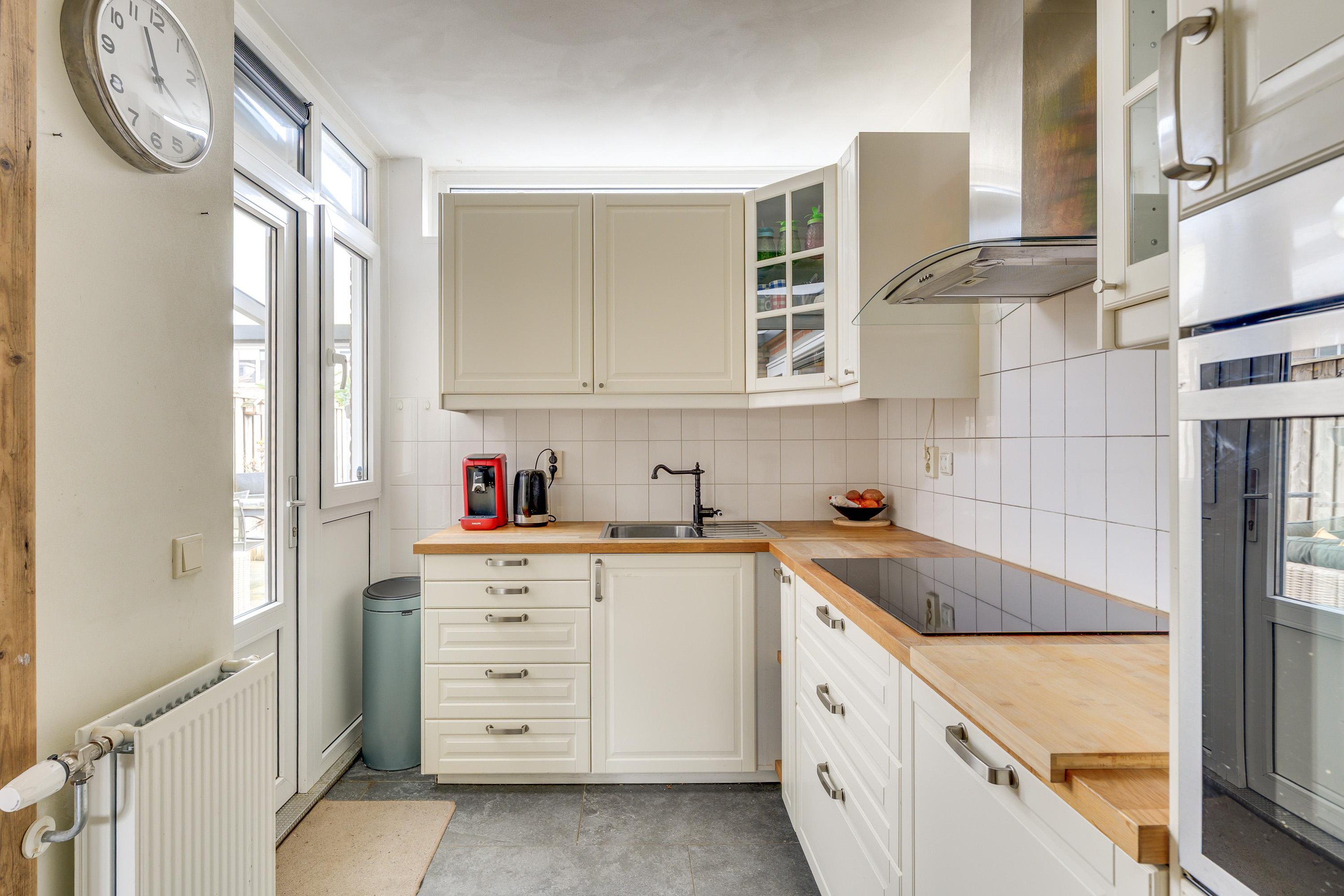 In de aanbouw bevindt zich de moderne keuken in hoekopstelling (2017). Deze is uitgerust met diverse onder- en bovenkasten, een werkblad met geïntegreerde spoelbak, inductiekookplaat, afzuigkap, vaatwasser en combi-oven. Vanuit de keuken stap je direct onder de sfeervolle terrasoverkapping – een heerlijke plek om tot in de late uurtjes beschut buiten te genieten.