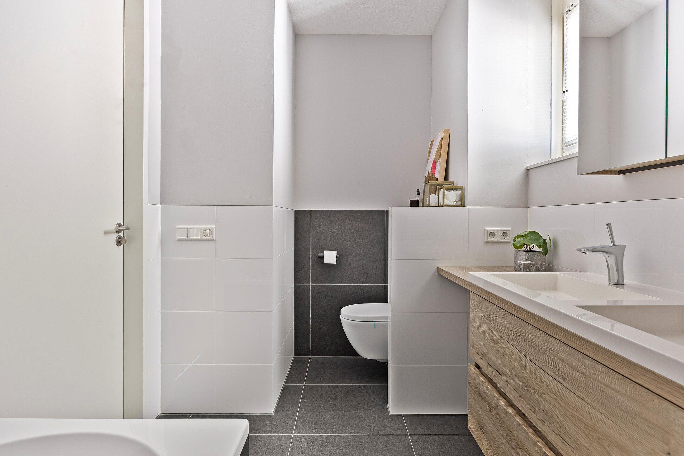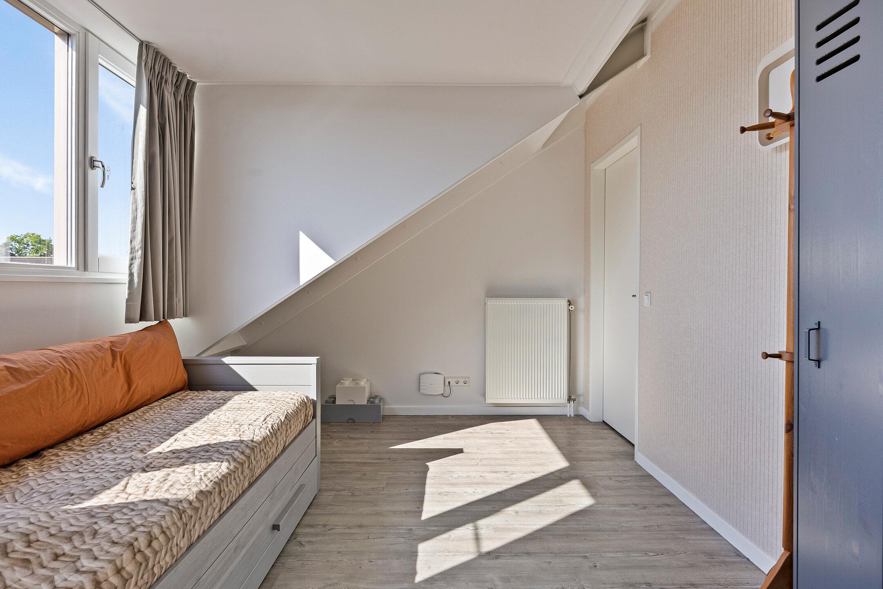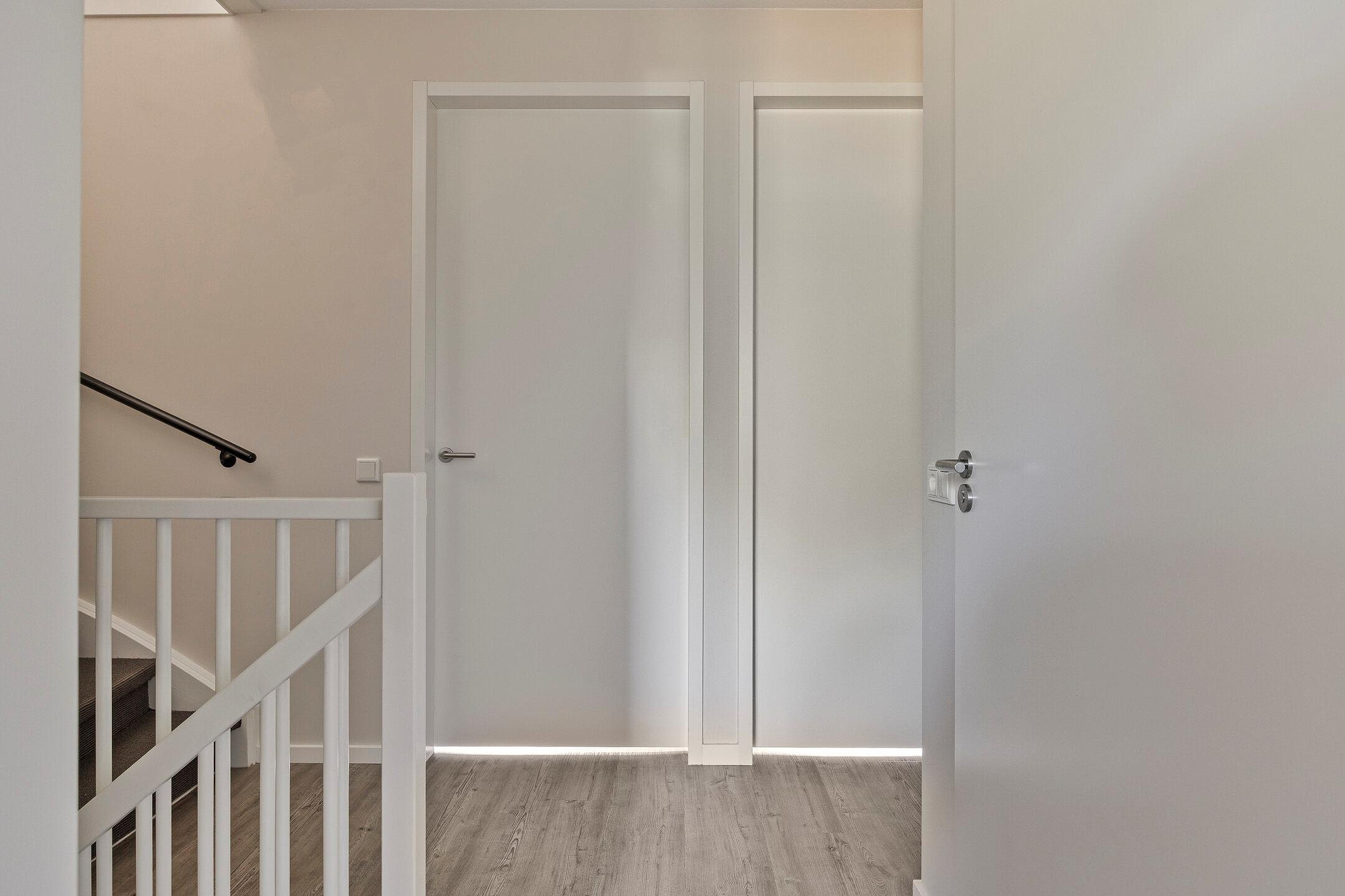 Vanuit de overloop zijn 3 slaapkamers, waarvan 1 met inloopkast, de badkamer en de trapopgang naar de tweede verdieping bereikbaar. De badkamer is grotendeels betegeld en v.v. een dubbele wastafel met meubel, een hangend toilet, een ligbad, inloopdouche en een designradiator. De vloer van overloop en de slaapkamers is v.v. pvc. De wanden zijn afgewerkt met stucwerk en de plafonds met spuitwerk. De kozijnen zijn van hout met HR++ glas en v.v. houten luiken en rolhorren.