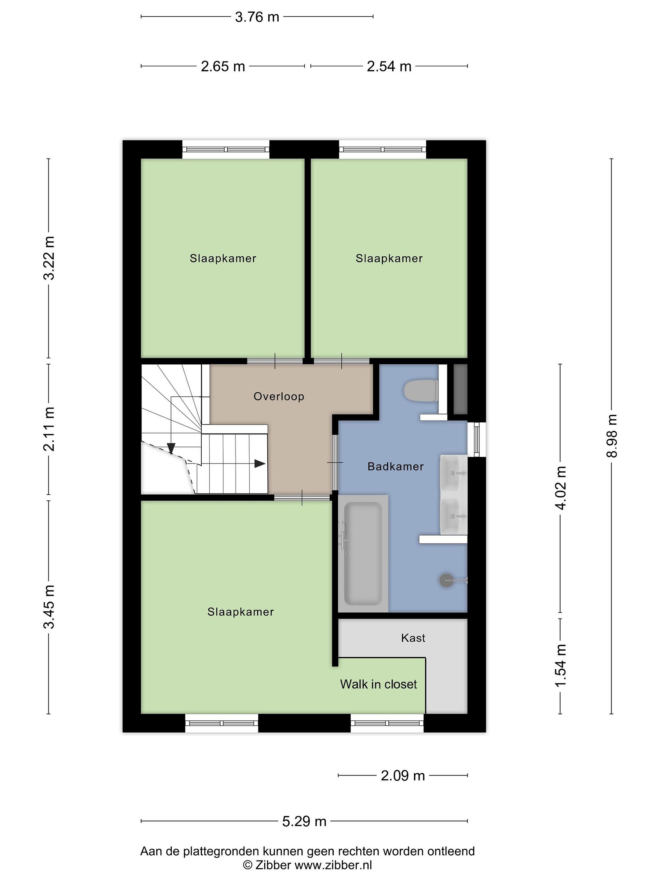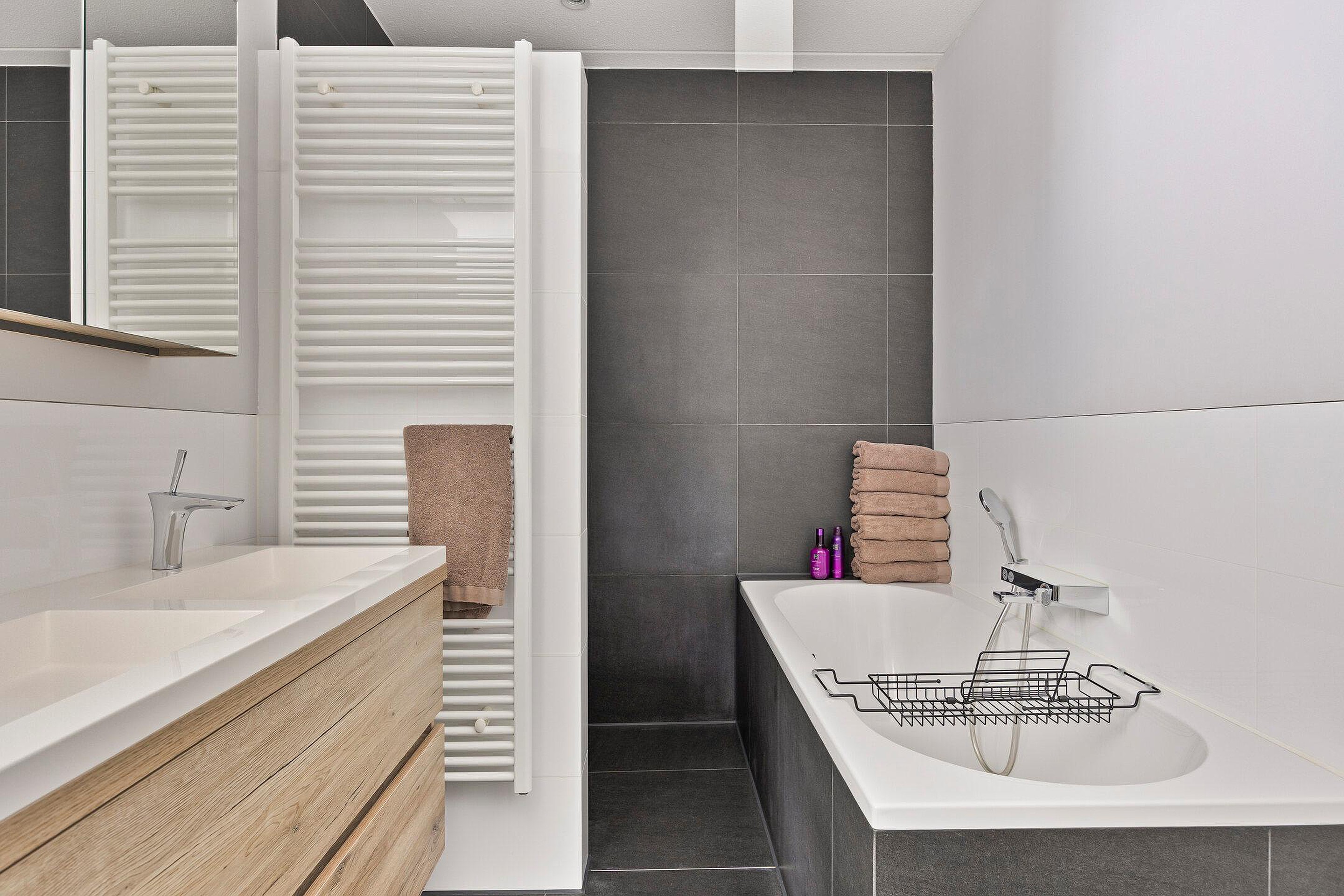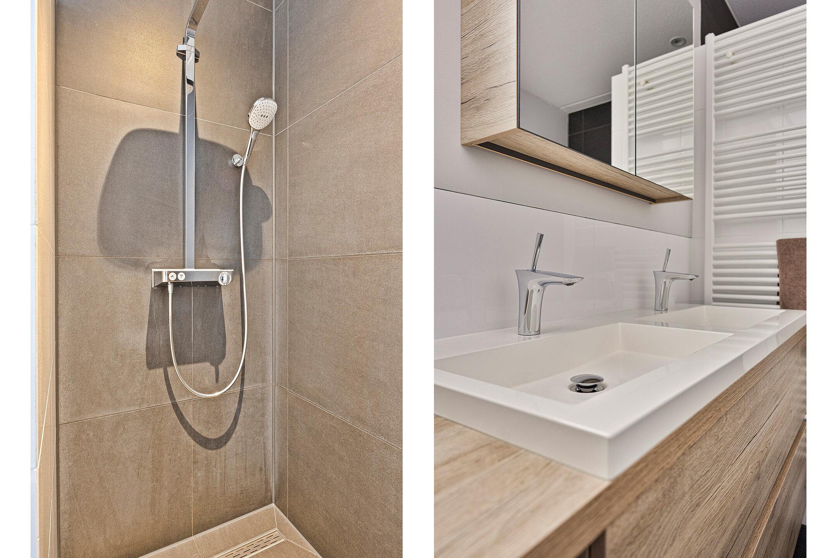 Vanuit de overloop zijn 3 slaapkamers, waarvan 1 met inloopkast, de badkamer en de trapopgang naar de tweede verdieping bereikbaar. De badkamer is grotendeels betegeld en v.v. een dubbele wastafel met meubel, een hangend toilet, een ligbad, inloopdouche en een designradiator. De vloer van overloop en de slaapkamers is v.v. pvc. De wanden zijn afgewerkt met stucwerk en de plafonds met spuitwerk. De kozijnen zijn van hout met HR++ glas en v.v. houten luiken en rolhorren.