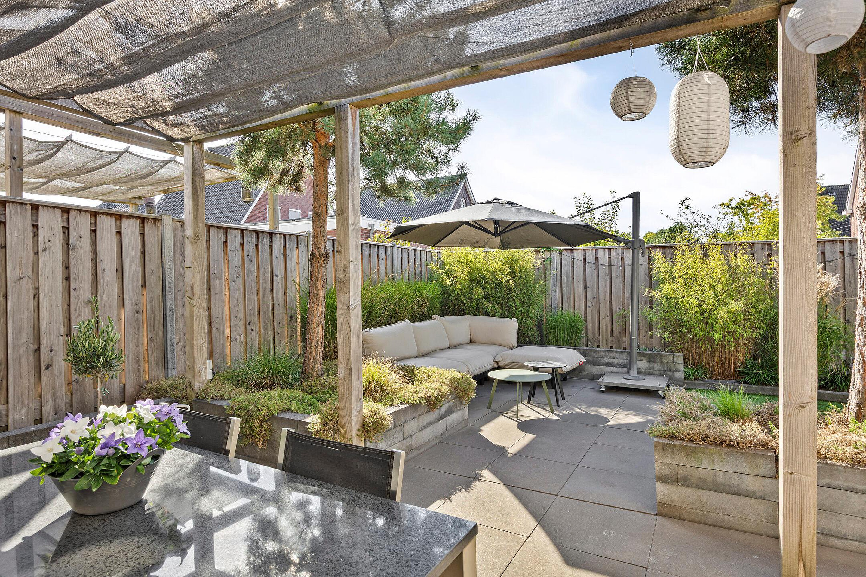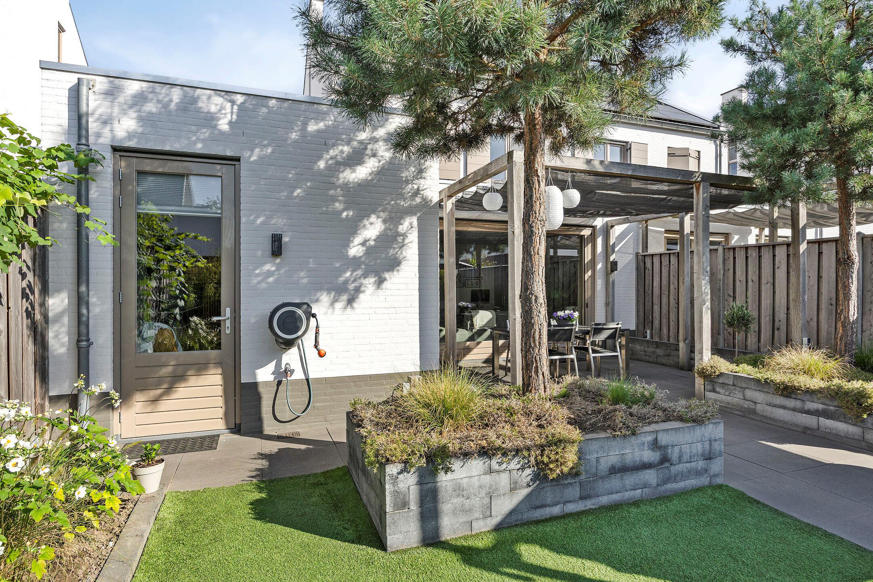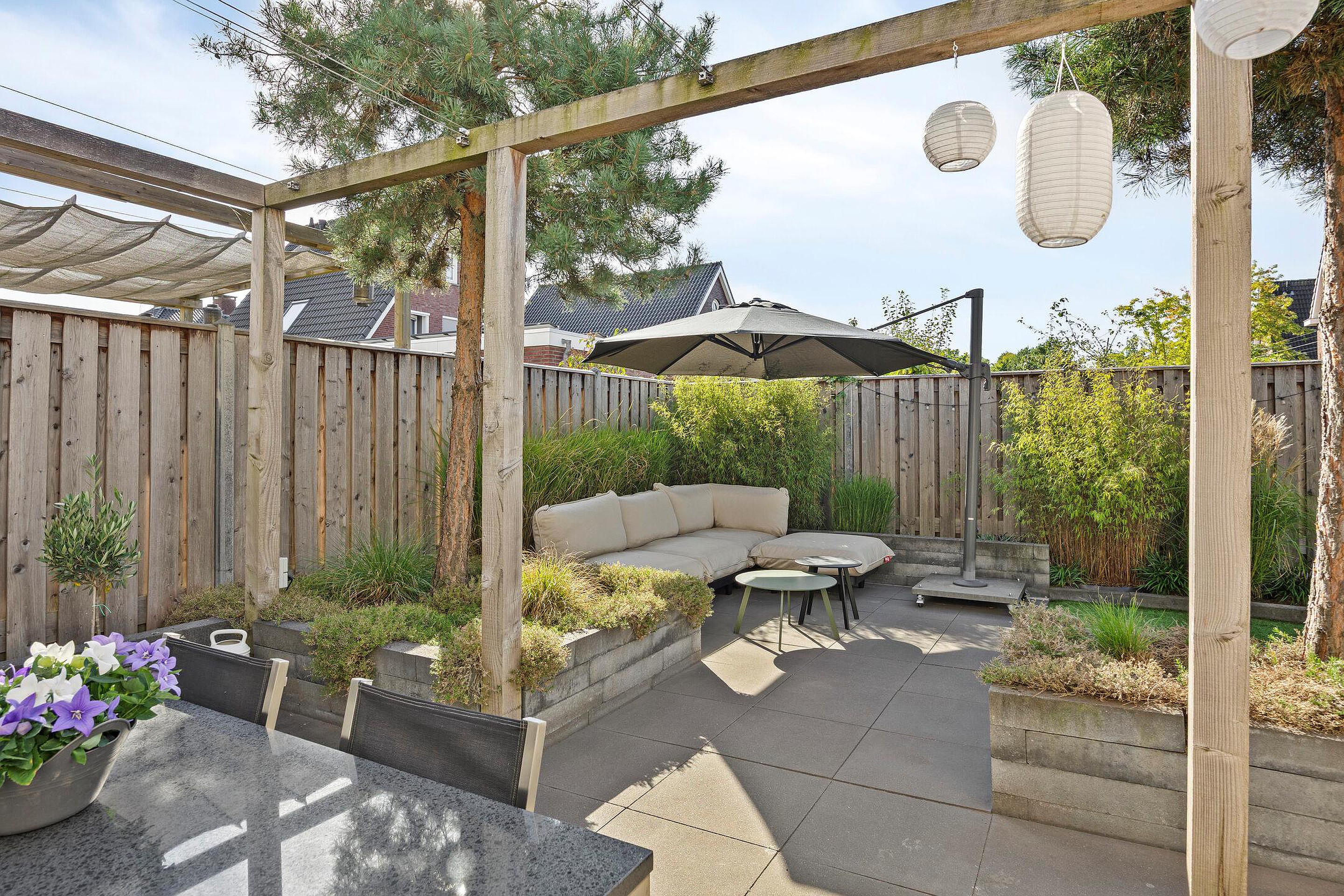 Deze woning beschikt over een aangebouwde garage en een voor-en achtertuin. Vanuit de inrit is de garage met elektrische roldeur bereikbaar. De garage is eveneens bereikbaar vanuit de speel-/werkkamer. De achtertuin is gelegen op het zuidoosten en is hoogwaardig aangelegd met sierbestrating, kunstgras, diverse borders met vaste beplanting en een terras met pergola en schaduwdoek. De voortuin is gelegen op het noordwesten en is aangelegd met siergrind, vaste beplanting en bloembakken met boompjes.