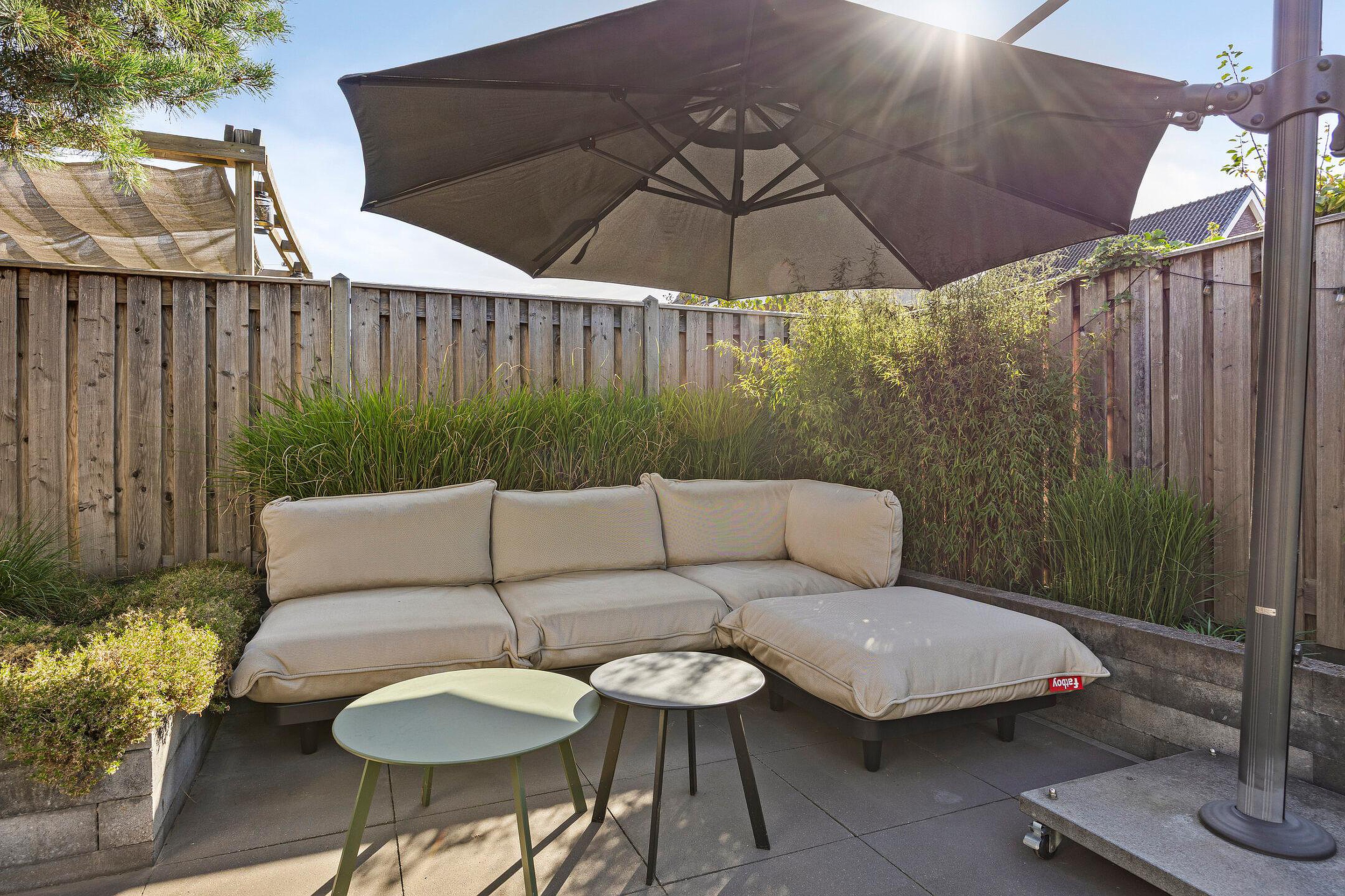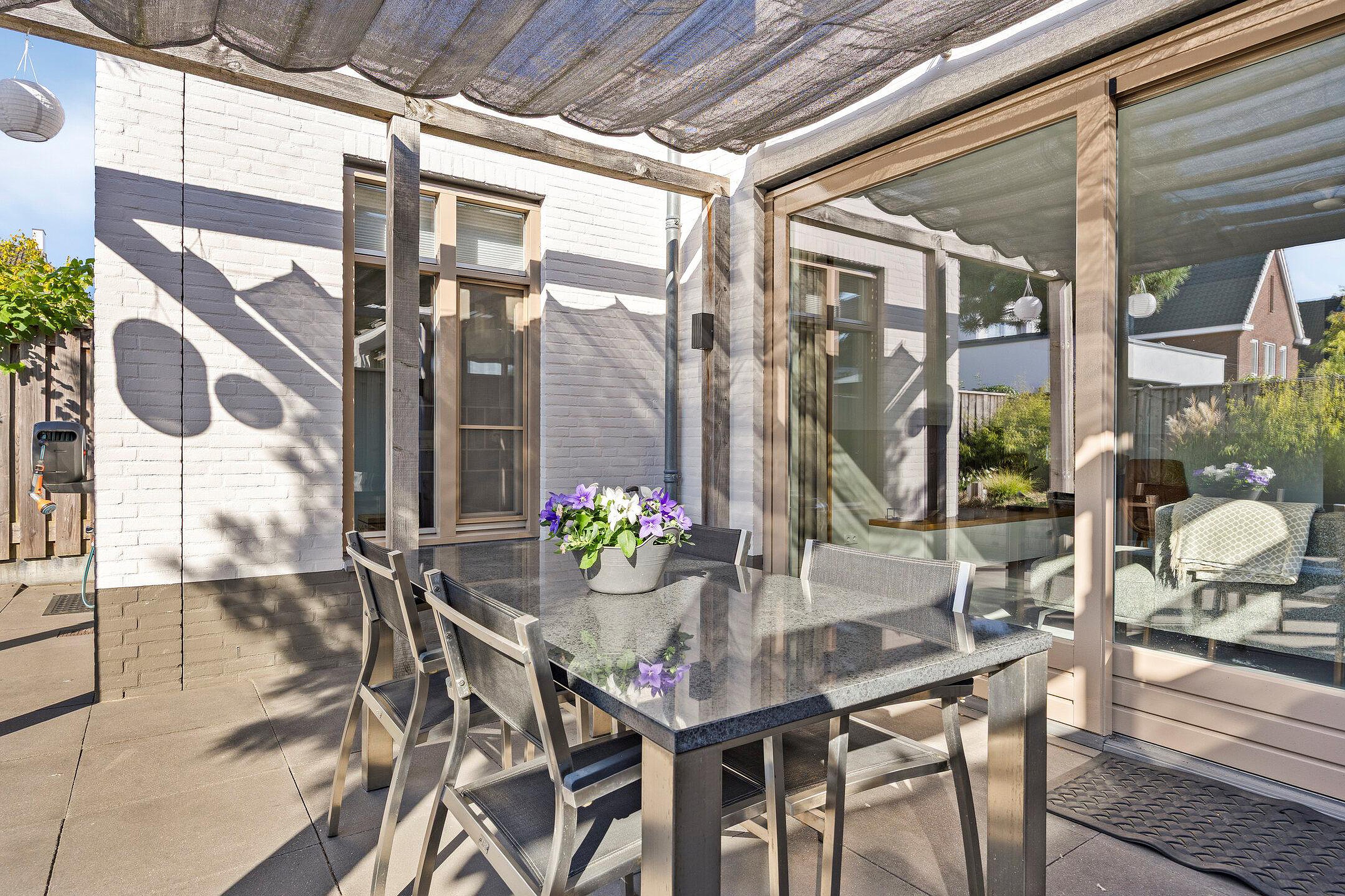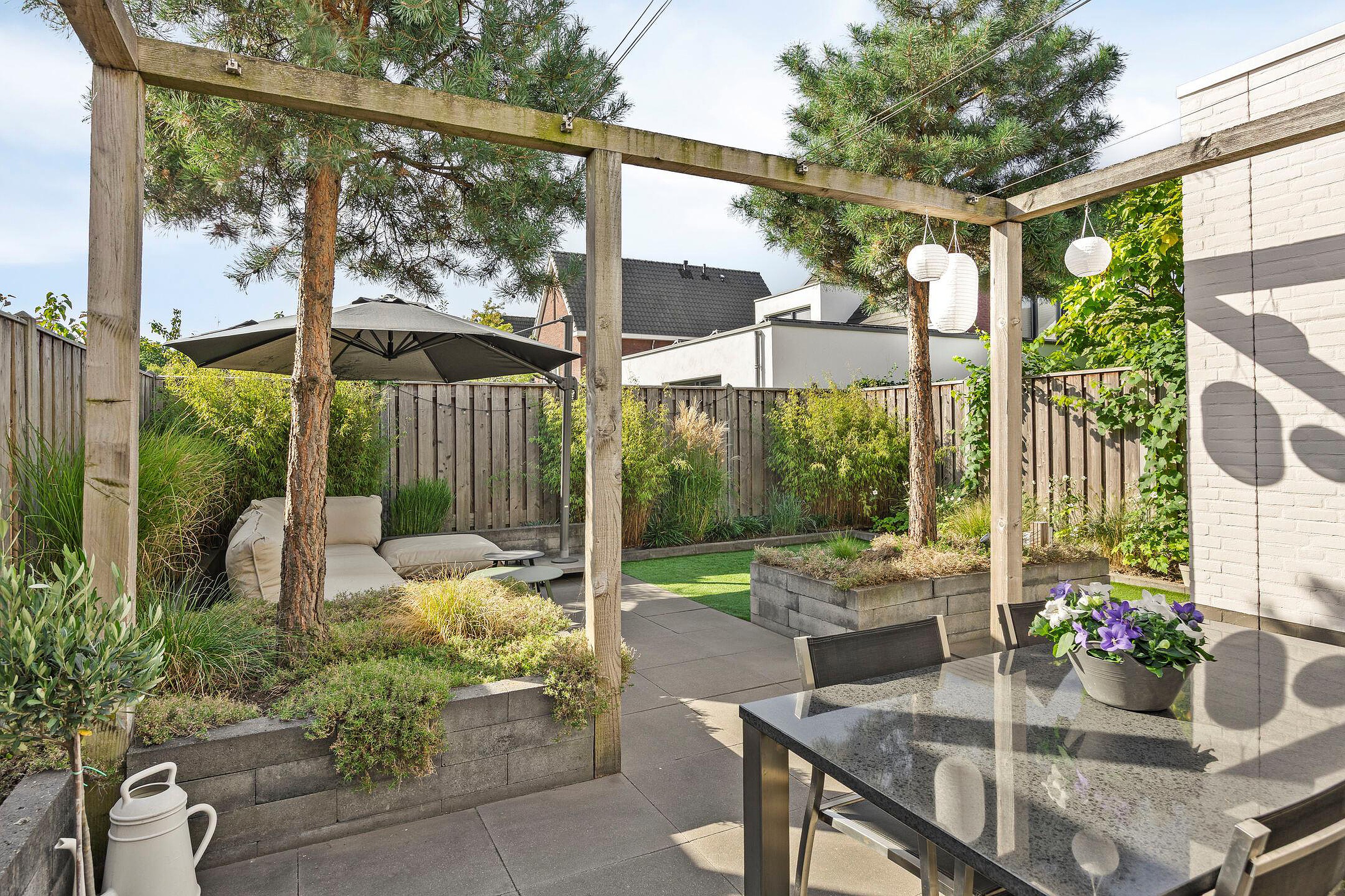 Deze woning beschikt over een aangebouwde garage en een voor-en achtertuin. Vanuit de inrit is de garage met elektrische roldeur bereikbaar. De garage is eveneens bereikbaar vanuit de speel-/werkkamer. De achtertuin is gelegen op het zuidoosten en is hoogwaardig aangelegd met sierbestrating, kunstgras, diverse borders met vaste beplanting en een terras met pergola en schaduwdoek. De voortuin is gelegen op het noordwesten en is aangelegd met siergrind, vaste beplanting en bloembakken met boompjes.