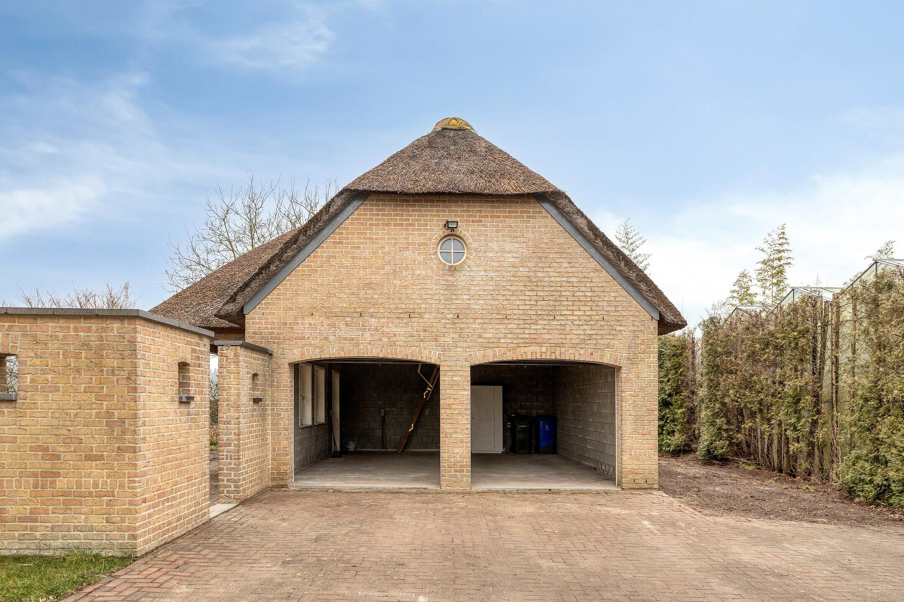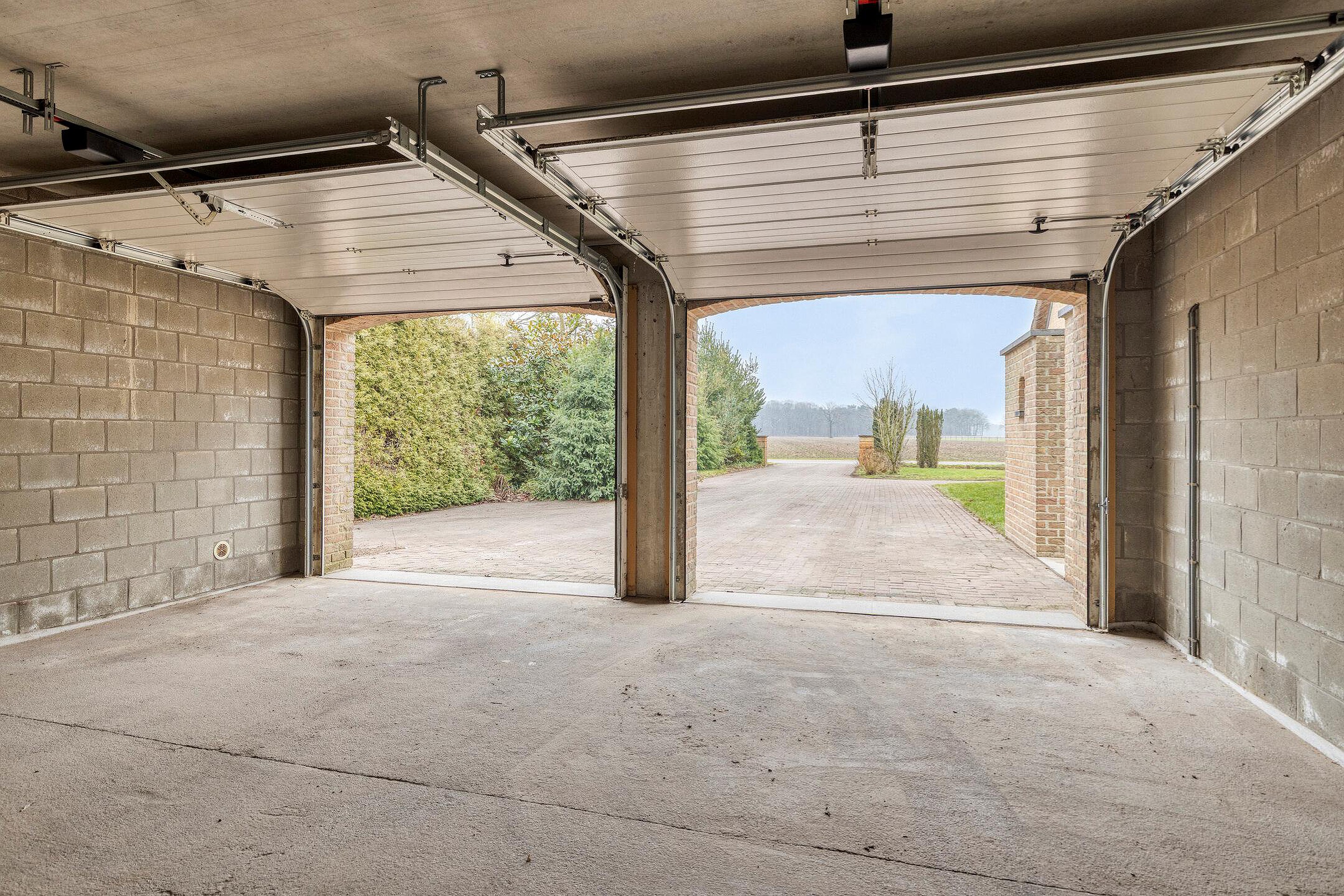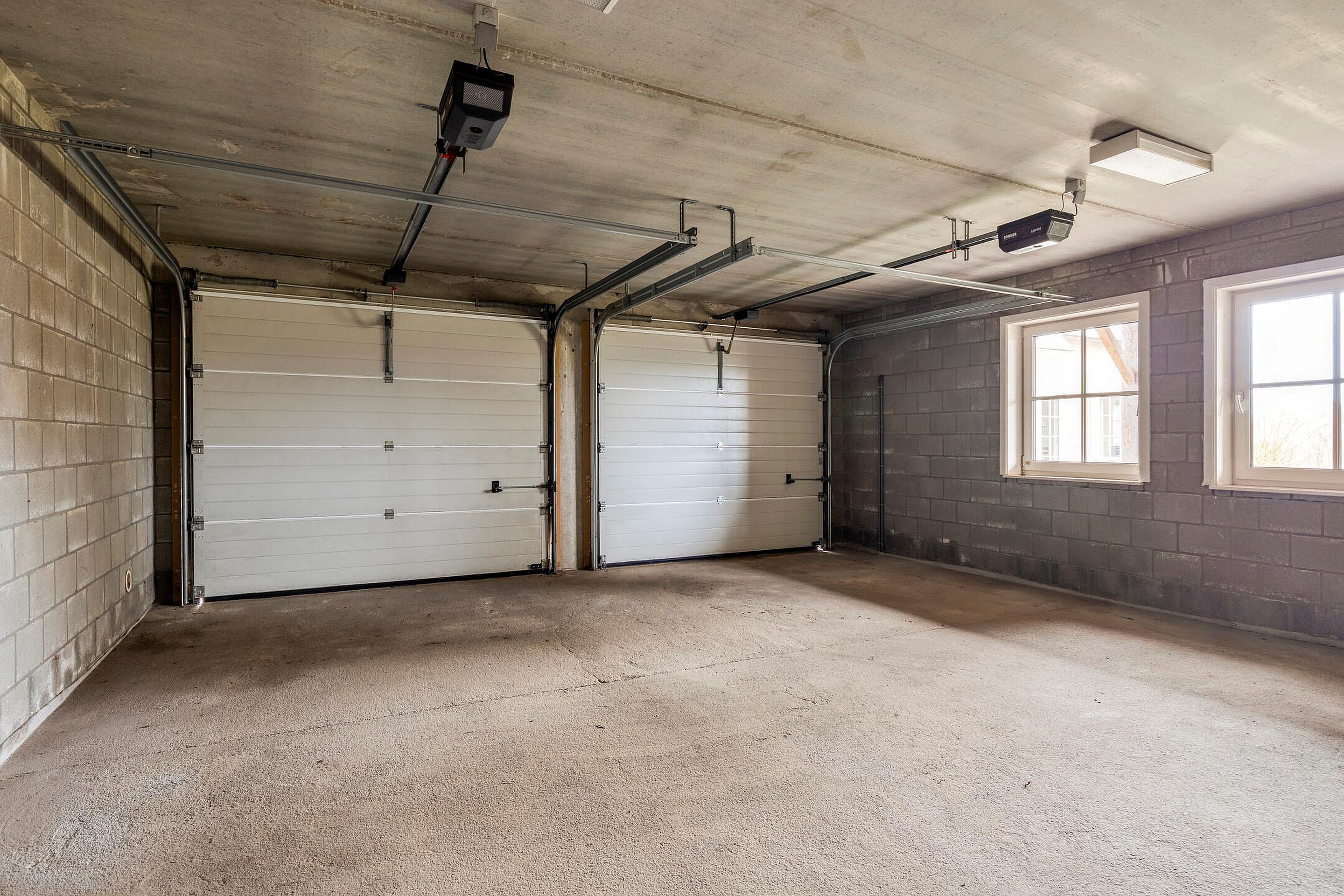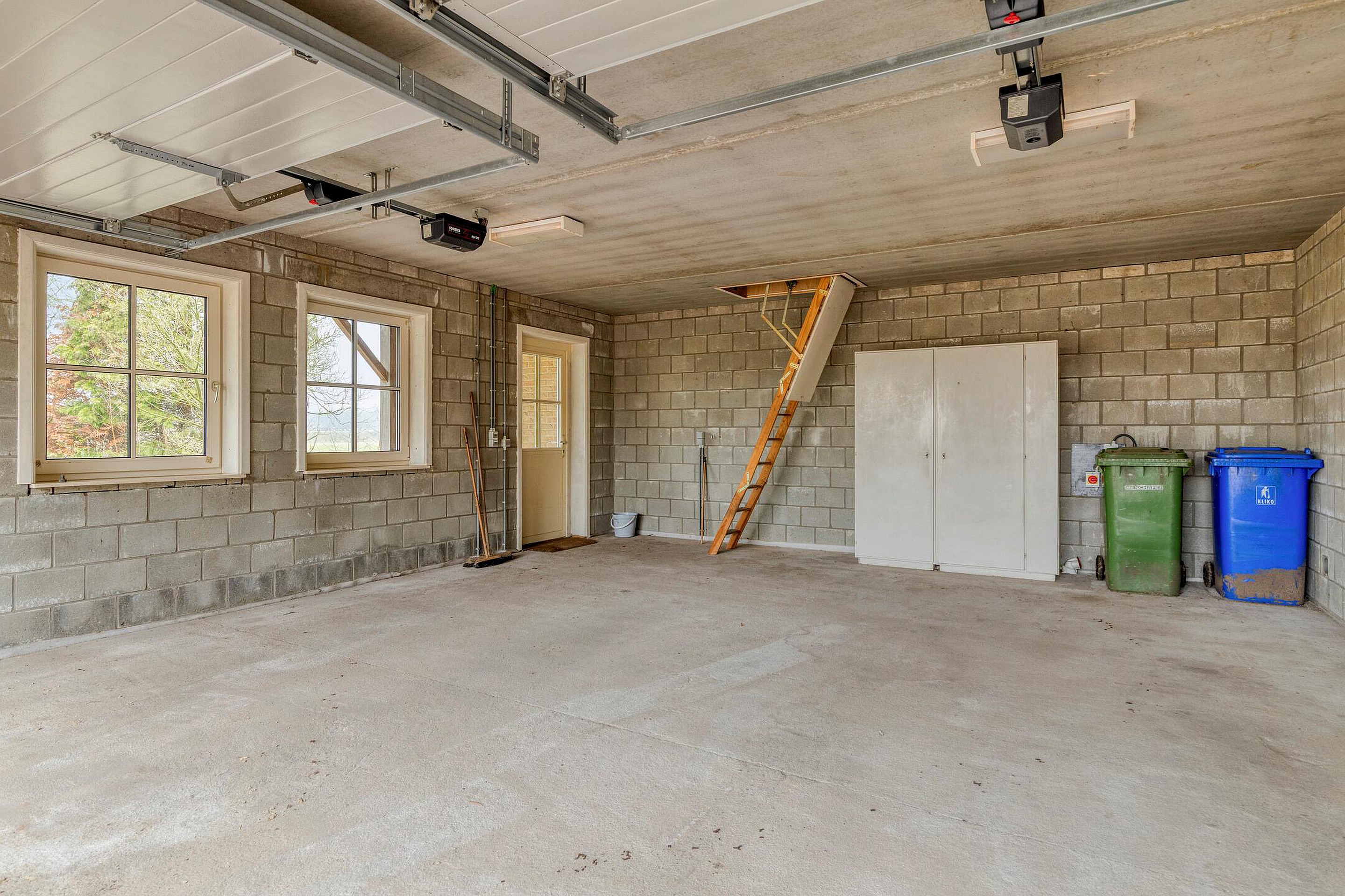 De vrijstaande dubbele garage is bereikbaar middels 2 elektrische overheaddeuren en een loopdeur vanuit de achtertuin. Middels een vlizotrap is een ruime bergzolder bereikbaar. Aan zijkant van de garage bevindt zich nog een overkapping.