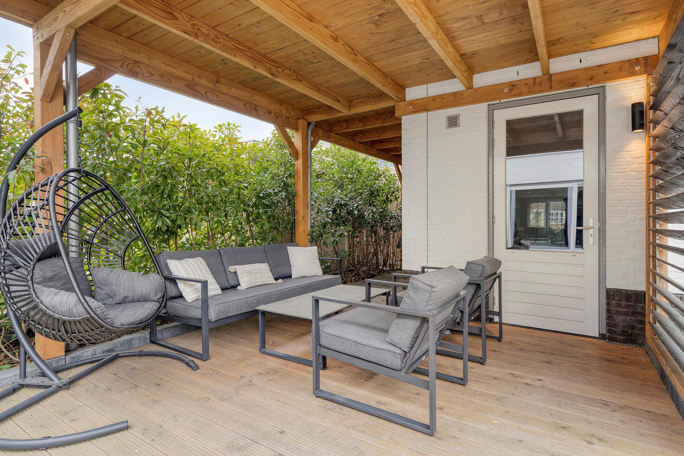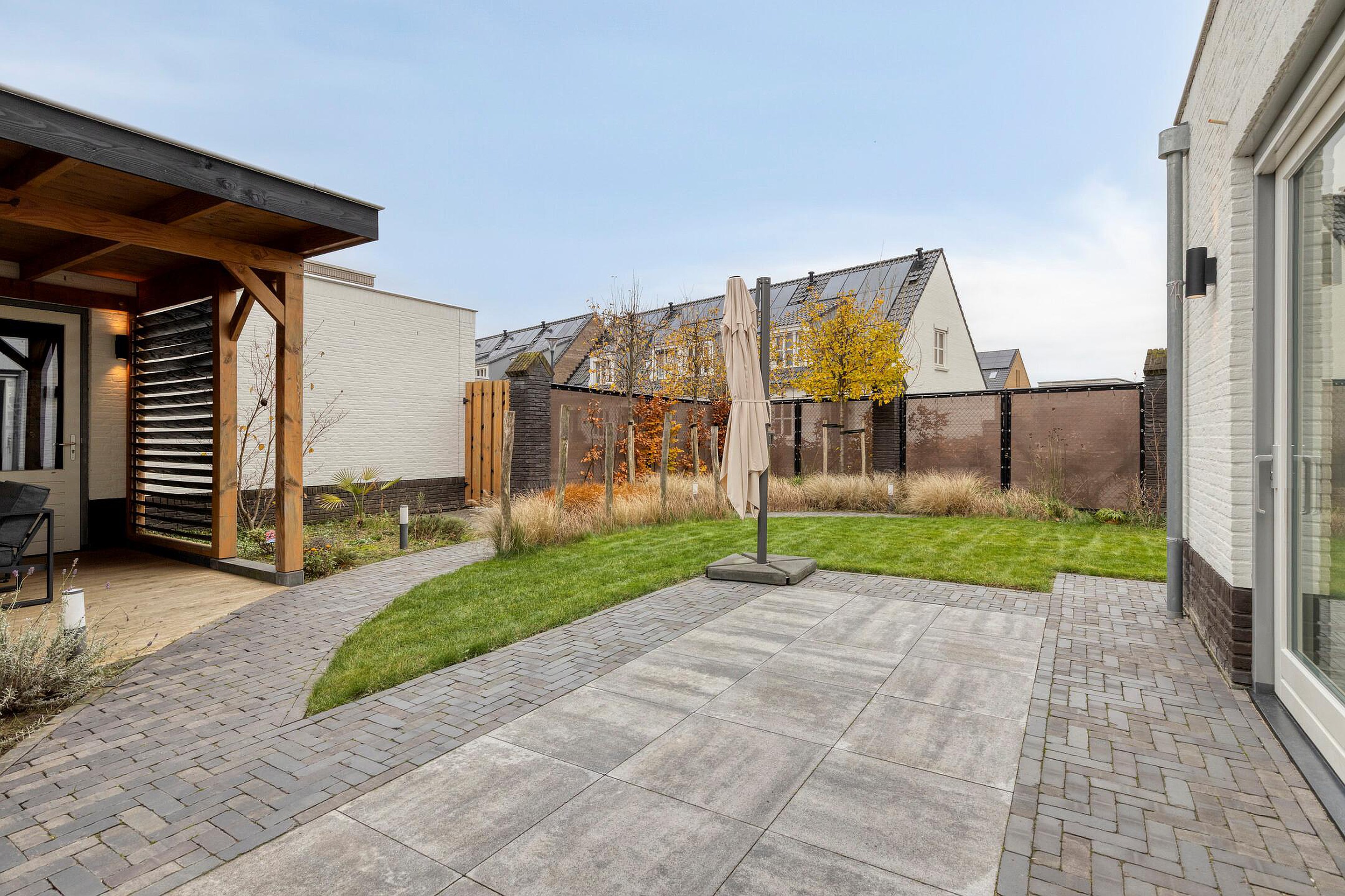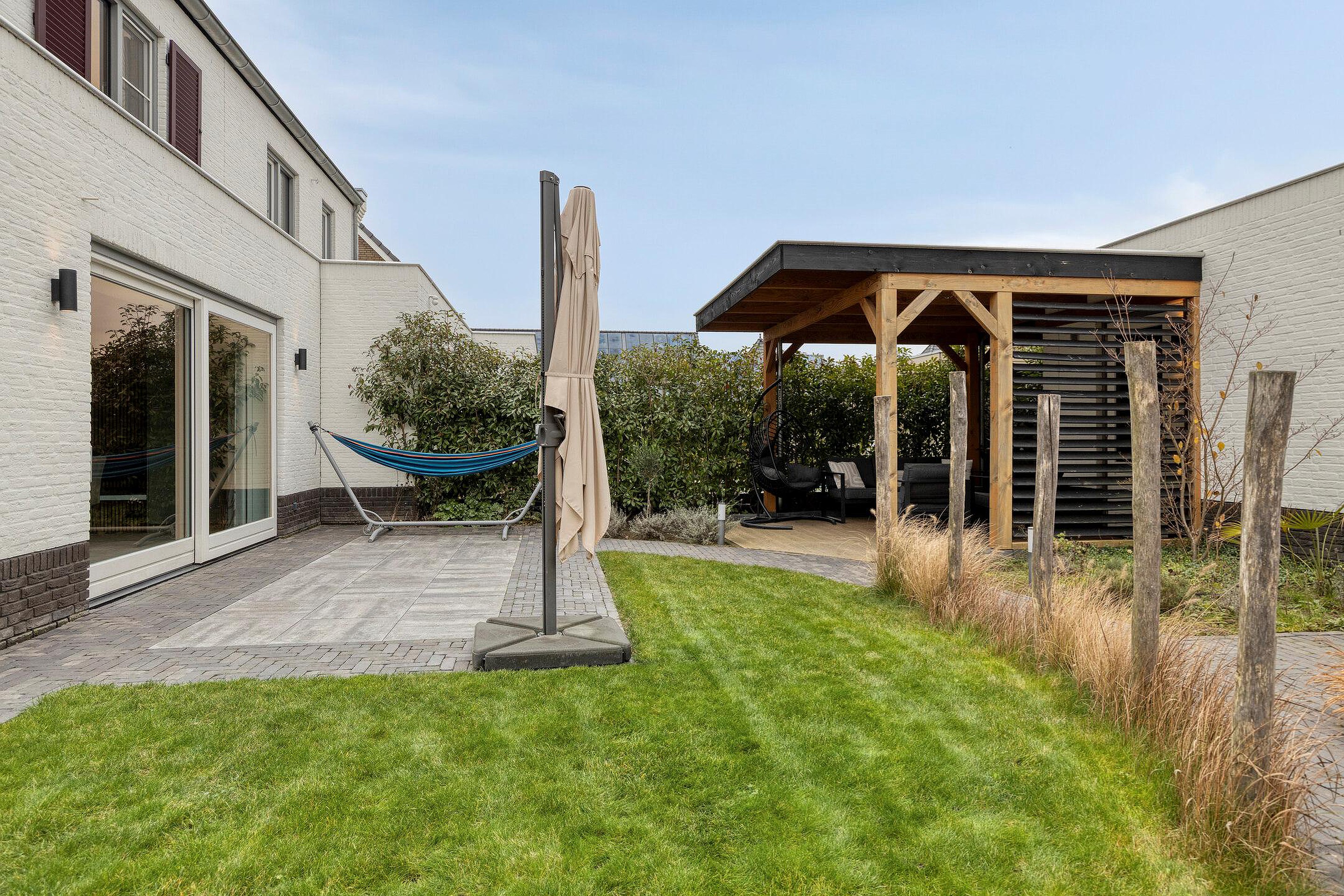 - Fraai aangelegde achtertuin met terras overkapping.