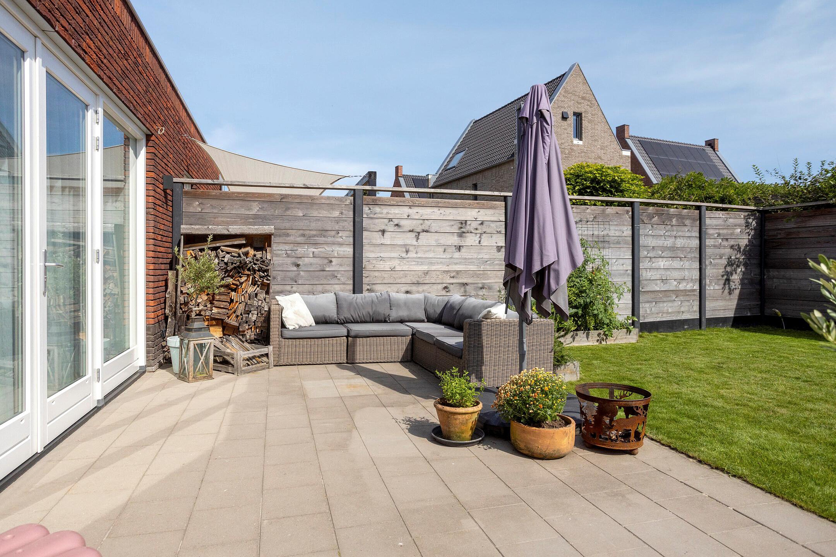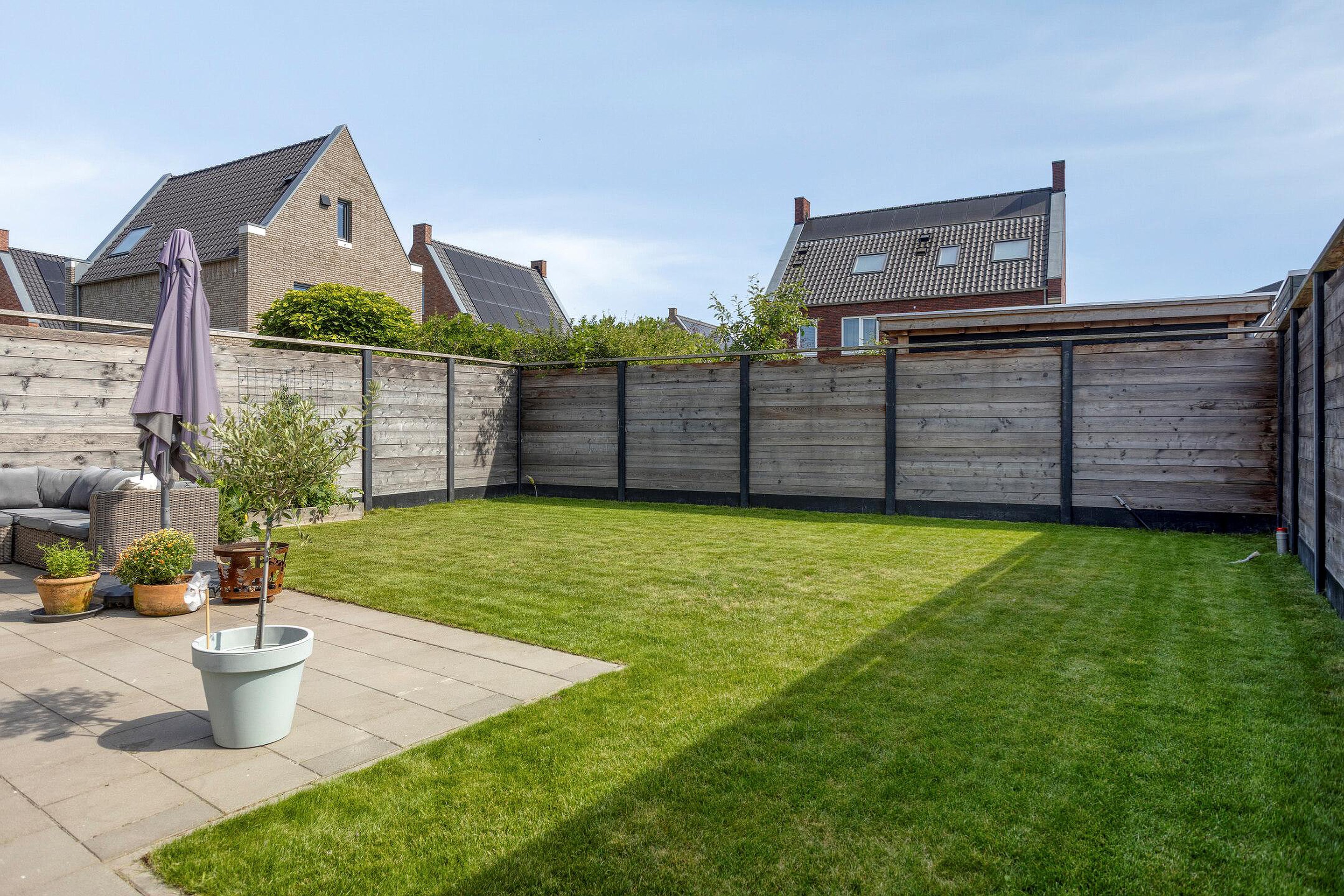 Deze woning heeft een garage met eigen oprit, een voortuin en een royale achtertuin welke gelegen is op het zuiden. Aan de voorzijde van de woning is de garage bereikbaar middels een elektrische sectionaaldeur. Vanuit de achtertuin is de garage bereikbaar middels een dubbele deur. De tuin is aangelegd met gazon, sierbestrating en vaste beplanting. De voortuin is aangelegd met sierbestrating en vaste beplanting.