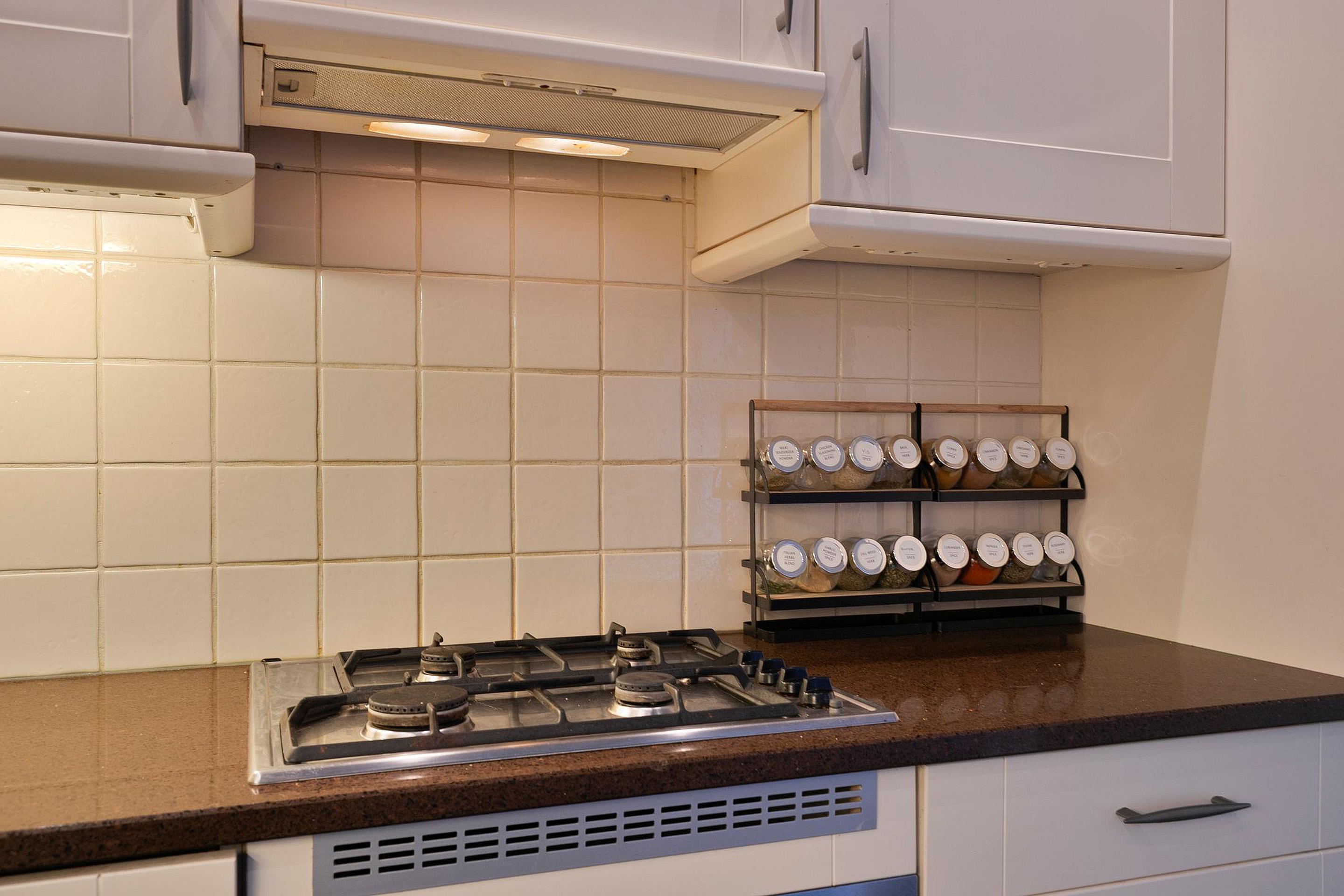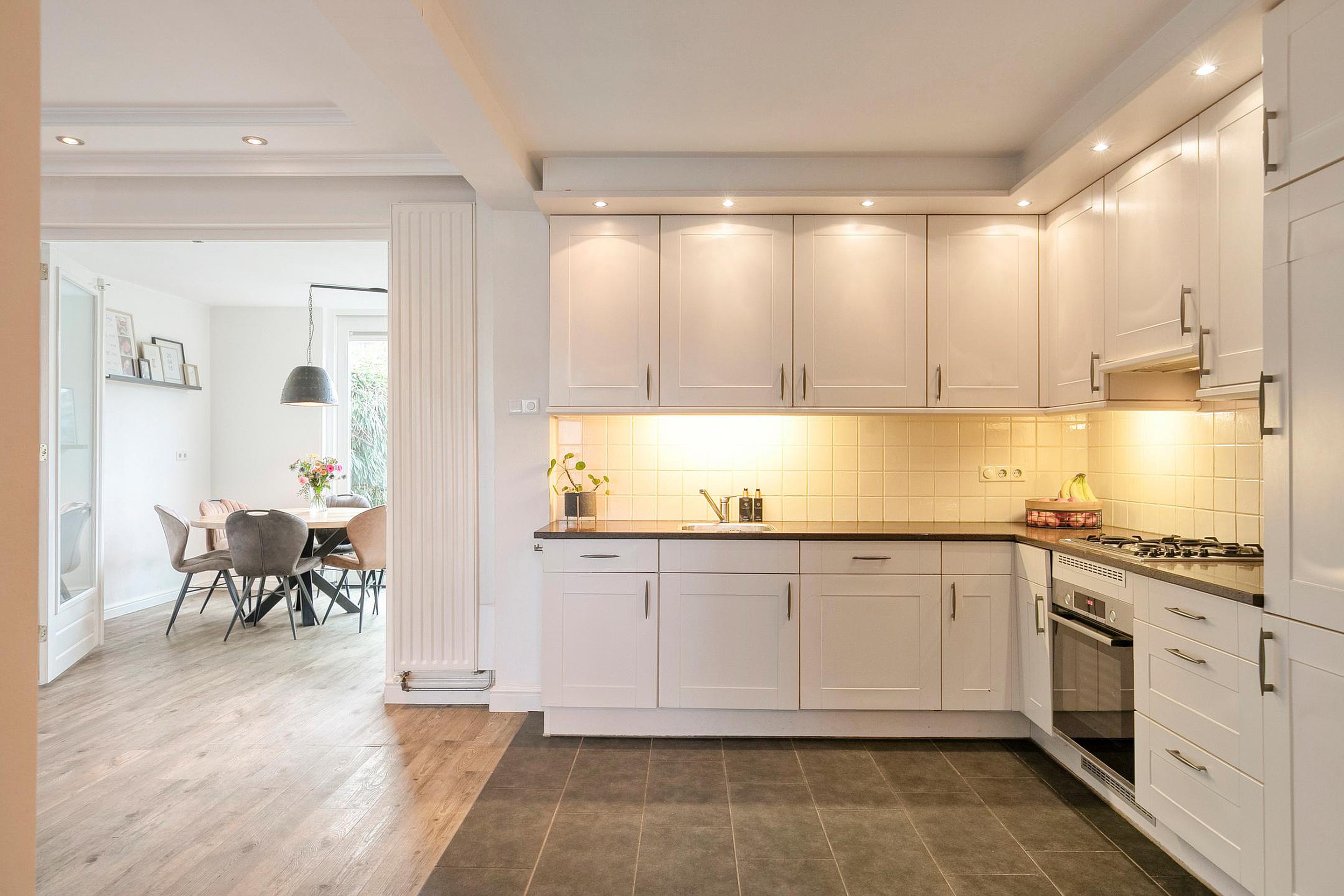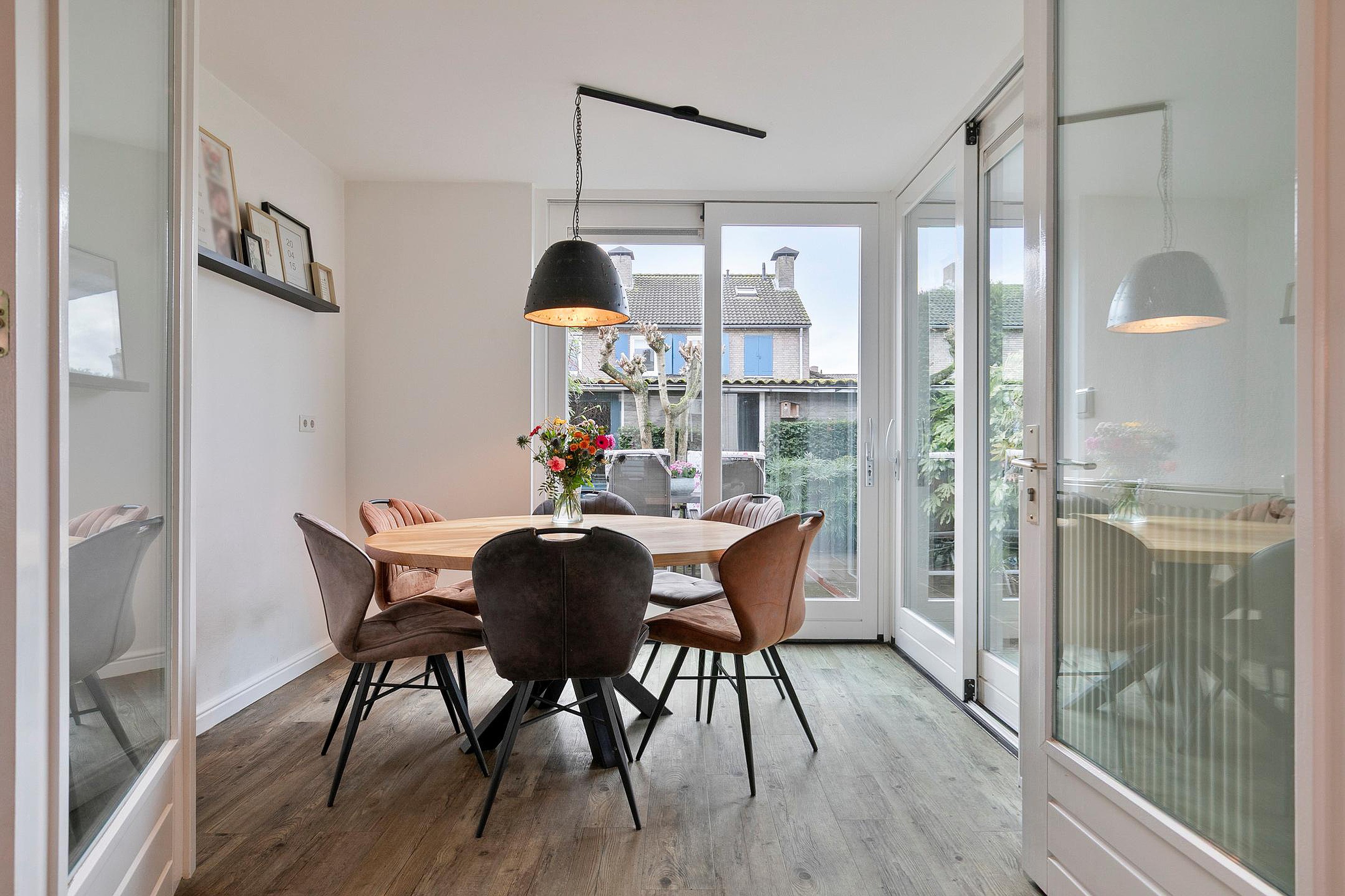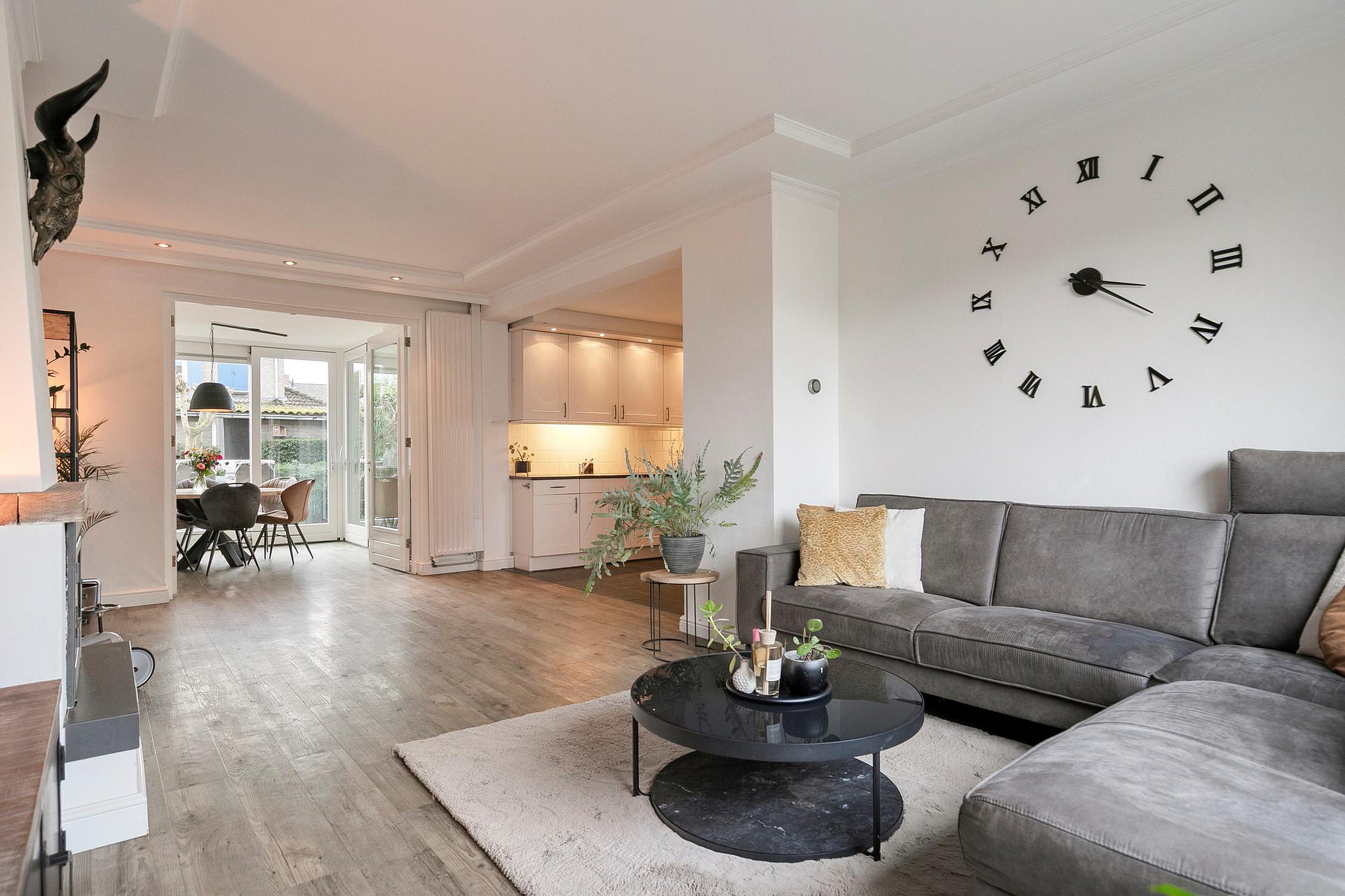 Vanuit de hal/entree met meterkast is er toegang tot het toilet, de trapopgang naar de eerste verdieping en de keuken en woonkamer. In de woonkamer is een sfeervolle houtkachel aanwezig. Vanuit de woonkamer is middels openslaande deuren een tuin/eetkamer bereikbaar. Vanuit deze ruimte is er een schuifpui zowel naar het overdekte terras als naar de achtertuin. De keuken in L-vorm is v.v. diverse kasten en lades, een granieten werkblad met spoelbak en mengkraan, een 4-pits gaskookplaat, afzuigkap, oven (bj.2020), koel-vries combinatie (bj.2020) en een vaatwasser (Miele). De vloer van de begane grond is afgewerkt met pvc (m.u.v. de vloer in de keuken welke is v.v. tegels). Het toilet is deels betegeld en v.v. een hangend toilet en fonteintje. De wanden zijn afgewerkt met stucwerk en behang. De plafonds zijn afgewerkt met stucwerk. De kozijnen zijn van hout en grotendeels v.v. HR++ glas. Het raam aan de voorkant van de woning is v.v. een elektrisch rolluik welke middels een tijdschakelaar te beheren is.