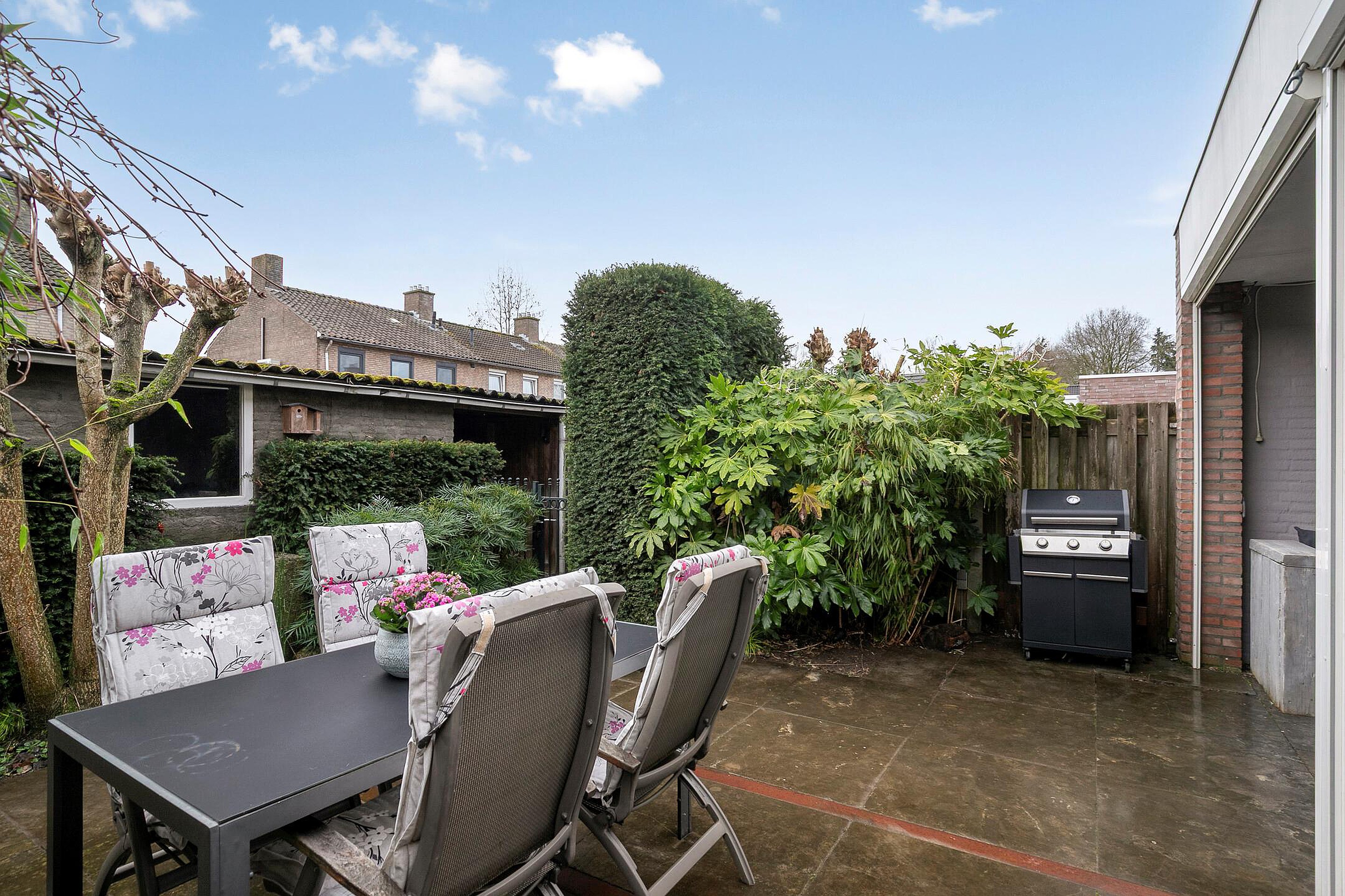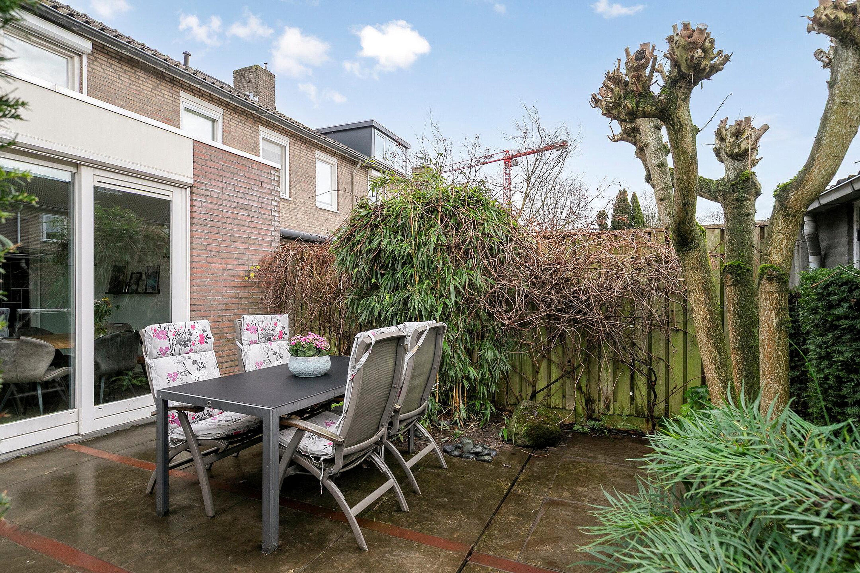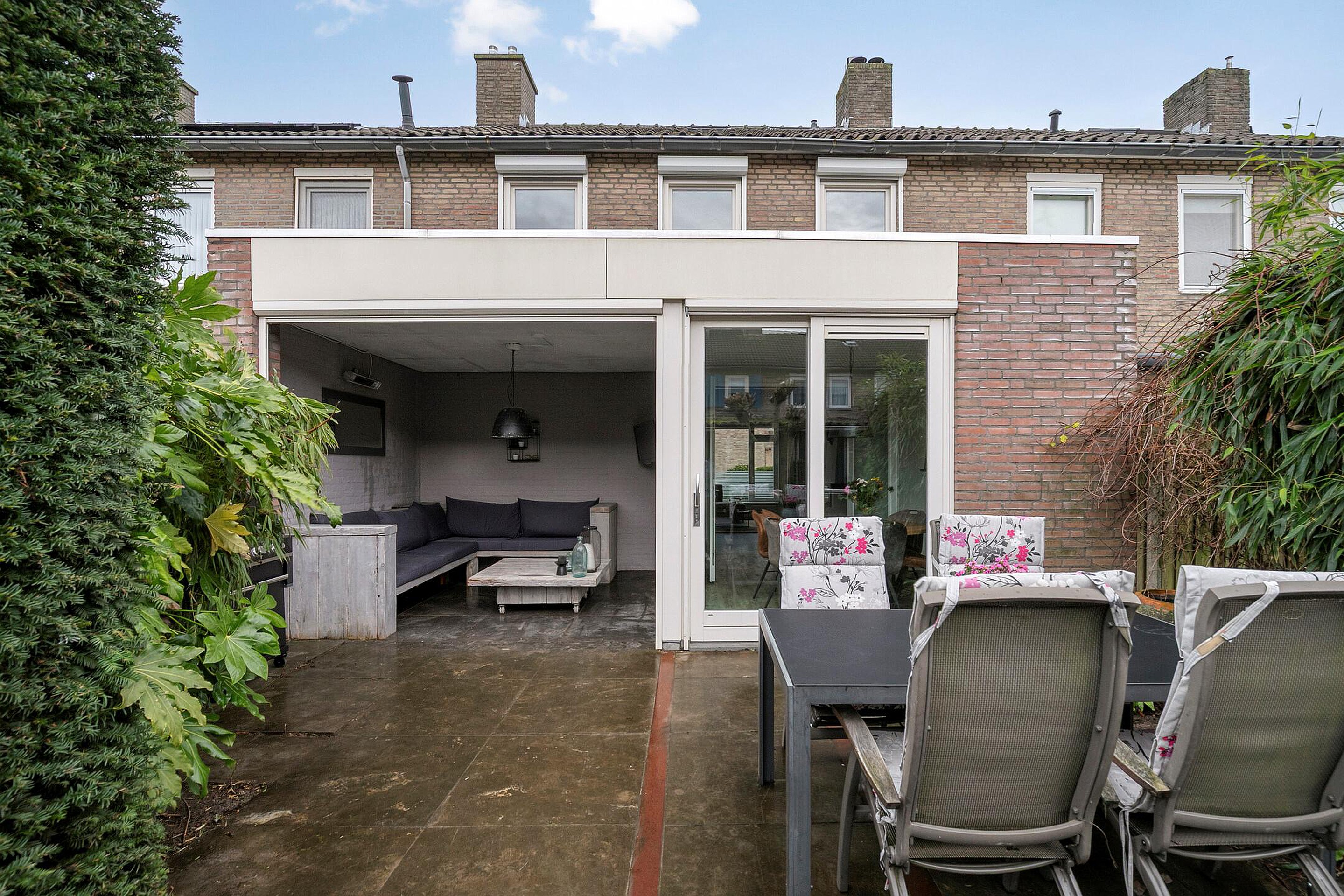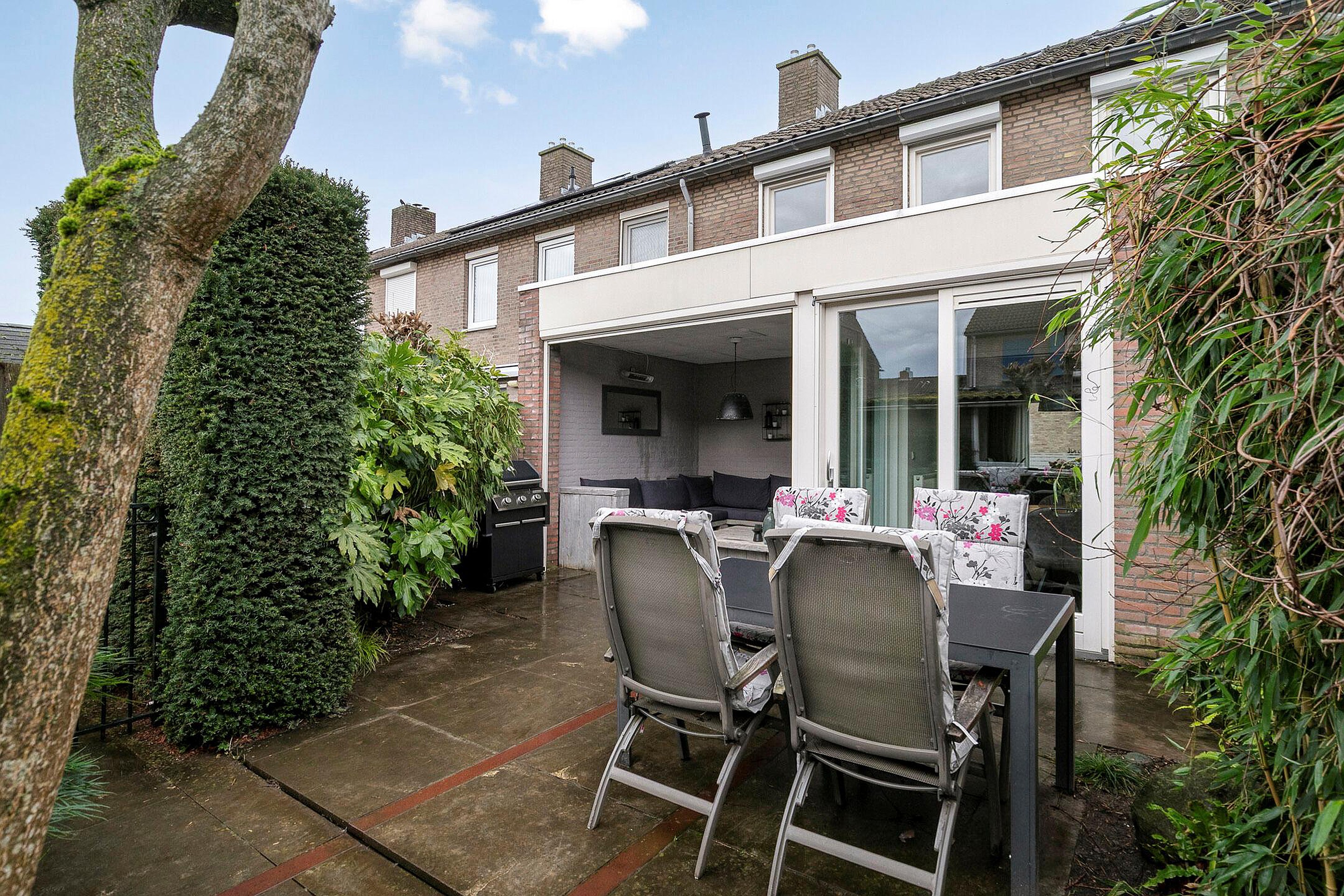 Deze woning beschikt over een voor-en achtertuin. De achtertuin is bereikbaar vanuit de tuin/eetkamer middels een schuifpui. De achtertuin is gelegen op het zuidwesten en is aangelegd met sierbestrating en borders met vaste beplanting, hagen en een boom en is bereikbaar middels een achterom. Aan de woning bevindt zich een overdekt terras welke afsluitbaar is middels een zonnescherm. Achter in de tuin is een berging gesitueerd welke afsluitbaar is middels een zonnescherm. De voortuin is gelegen op het noordoosten en is aangelegd met sierbestrating, bloembakken en borders met vaste beplanting en hagen.
