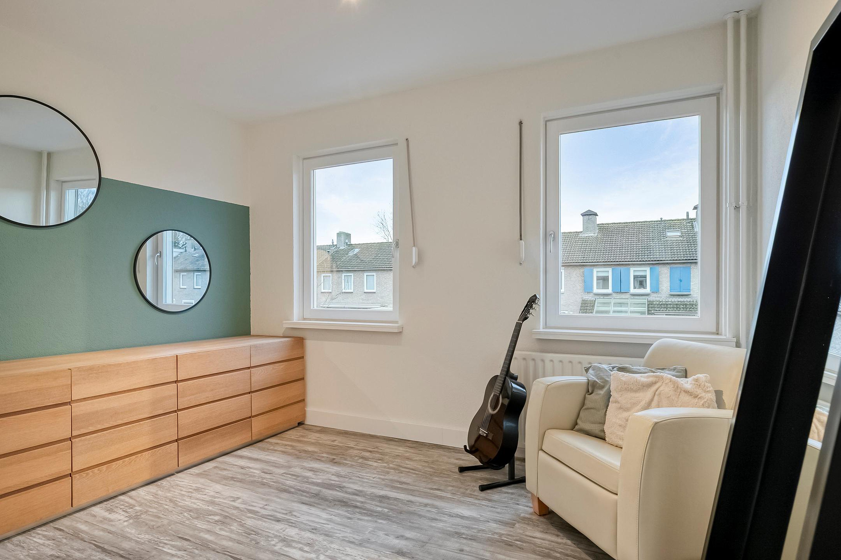 De vloer van de overloop en de slaapkamers is afgewerkt met laminaat. De wanden en plafonds zijn afgewerkt met stucwerk. De kozijnen zijn van hout en v.v. isolerende beglazing. Aan de voor-en achterzijde van de woning zijn de ramen v.v. rolluiken.