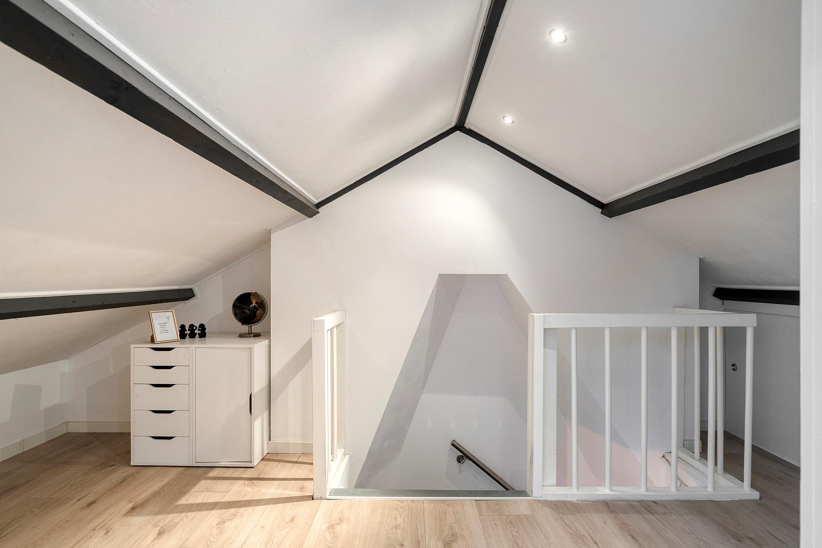 Middels een vaste trap is de zolderruimte bereikbaar. Deze ruimte is eventueel te gebruiken als 4e slaapkamer. Hier zijn de cv-ketel en de wasmachine aansluiting gesitueerd. De vloer van deze kamer is afgewerkt met laminaat. De wanden zijn afgewerkt met stucwerk. Deze ruimte beschikt over dakramen van hout met HR++ glas.
