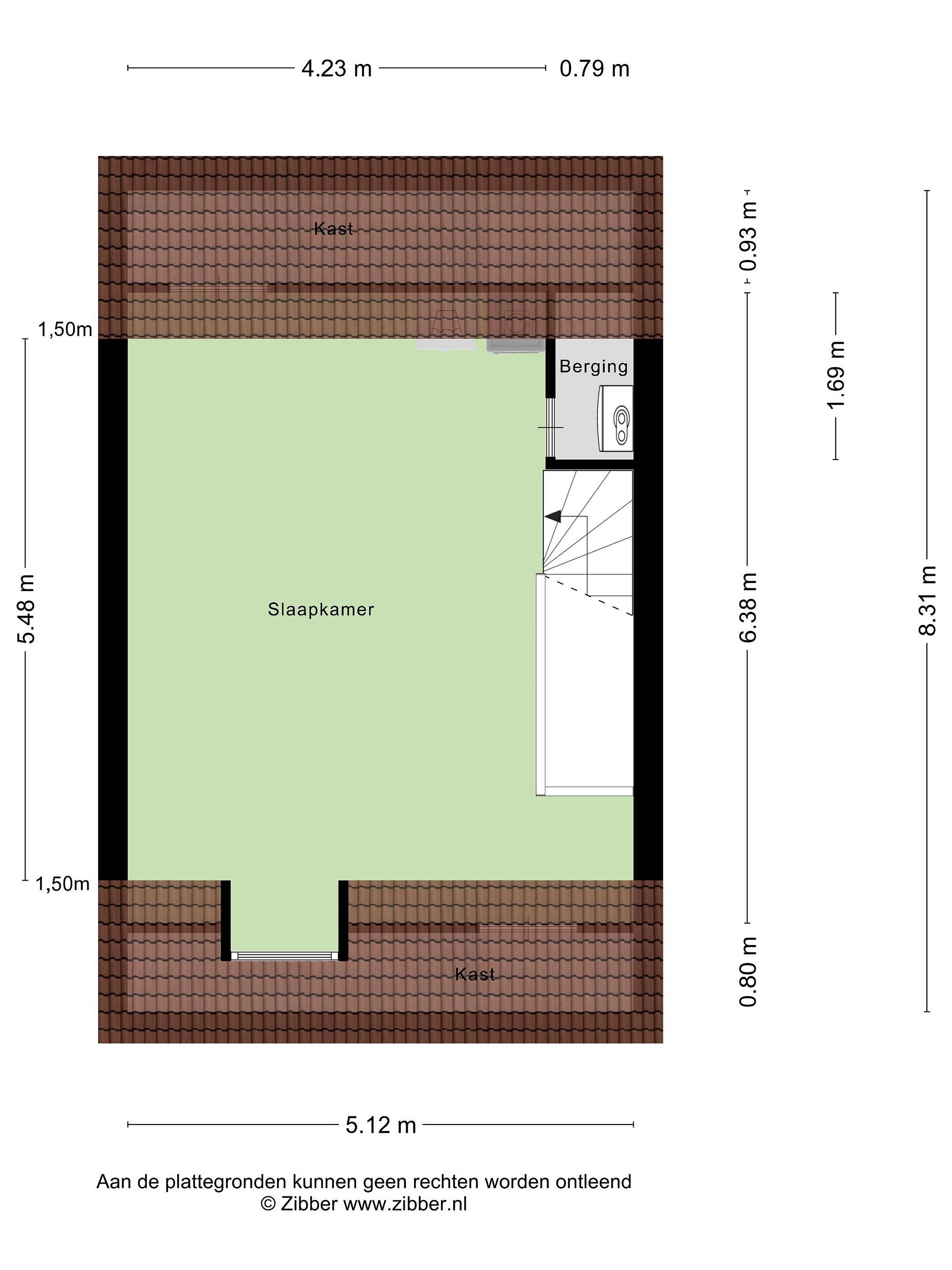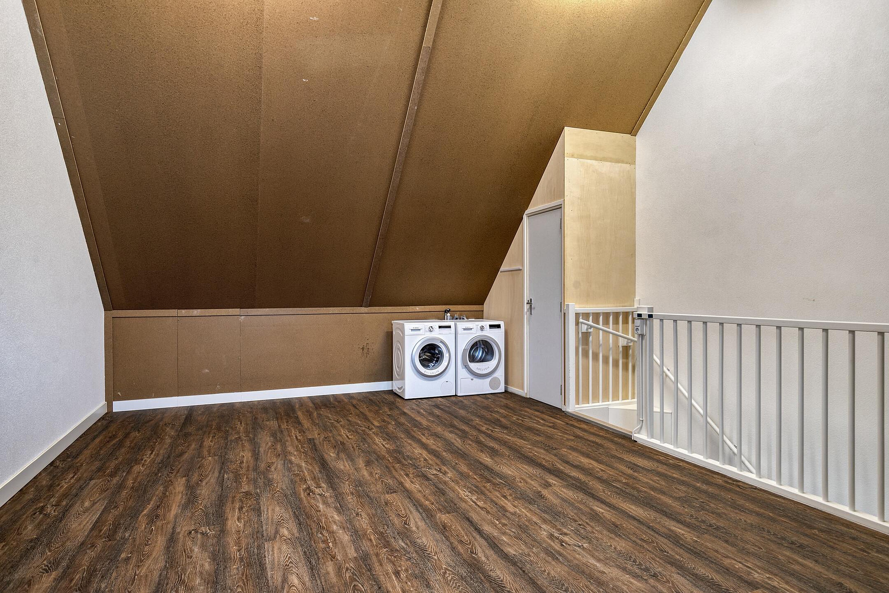 Middels een vaste trap is de zolder bereikbaar. Deze is eventueel te gebruiken als slaapkamer. Op deze verdieping is de aansluiting voor de wasmachine gesitueerd. De cv-ketel en ventilatie unit zijn gesitueerd in een bergkast. De vloer van deze verdieping is v.v. pvc en vloerverwarming. De wanden zijn afgewerkt met spachtelputz. De kozijnen zijn van hout met HR++ glas, en ook hier v.v. een hor.