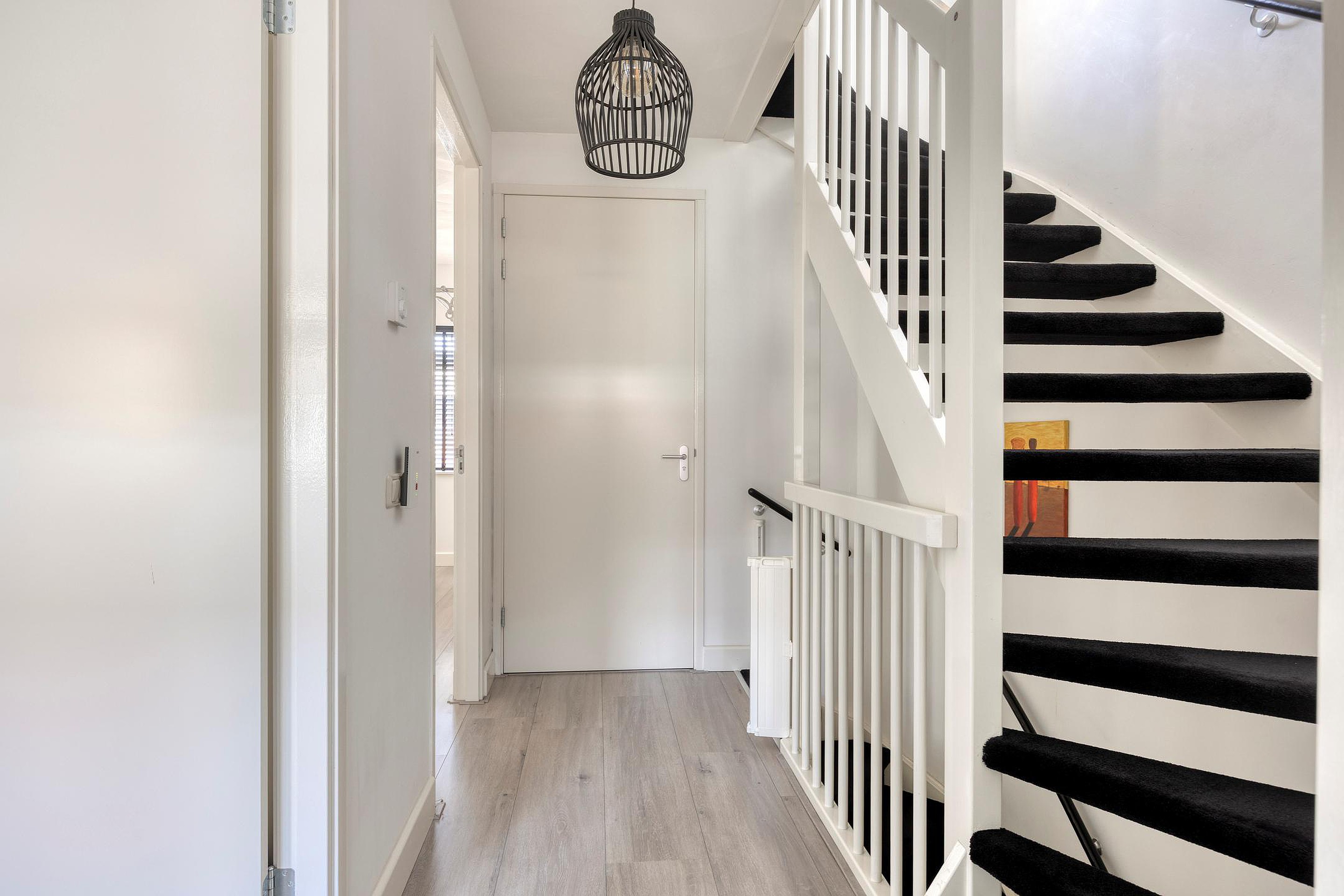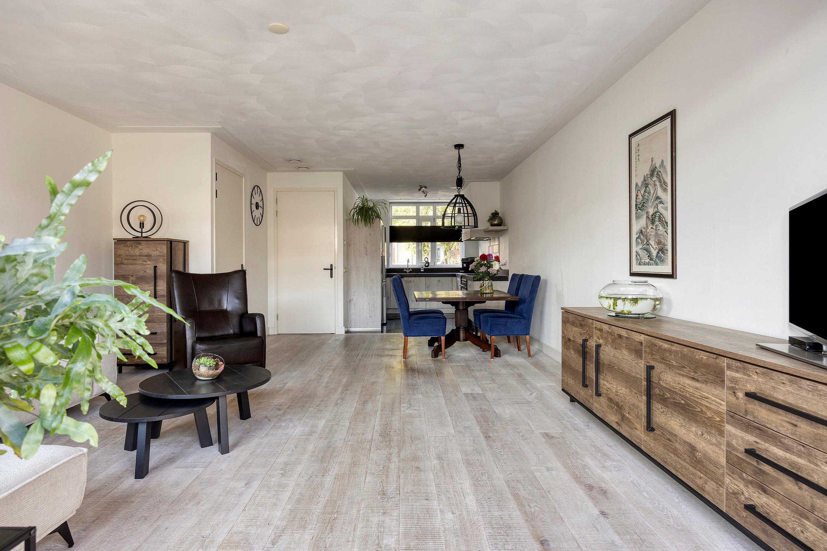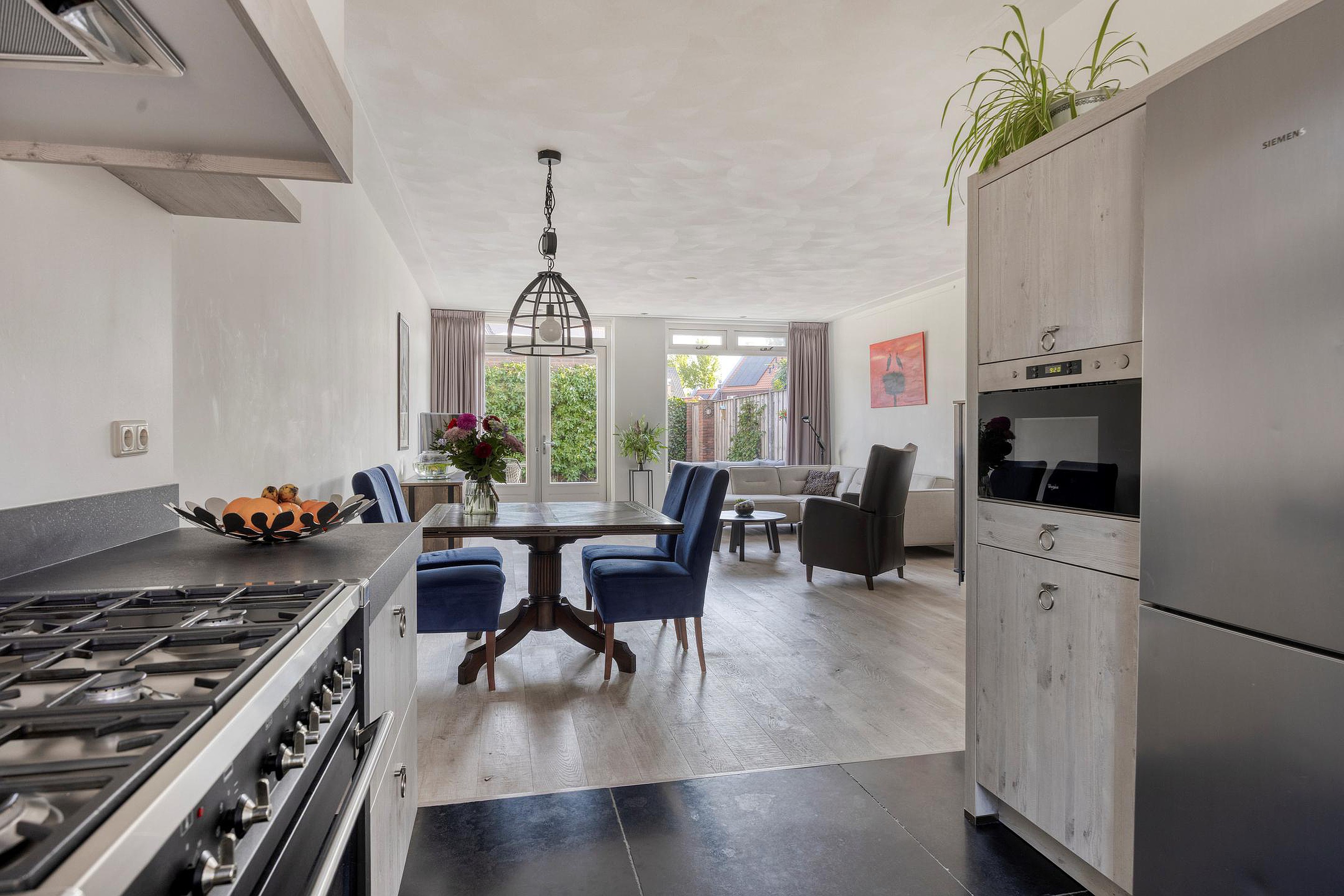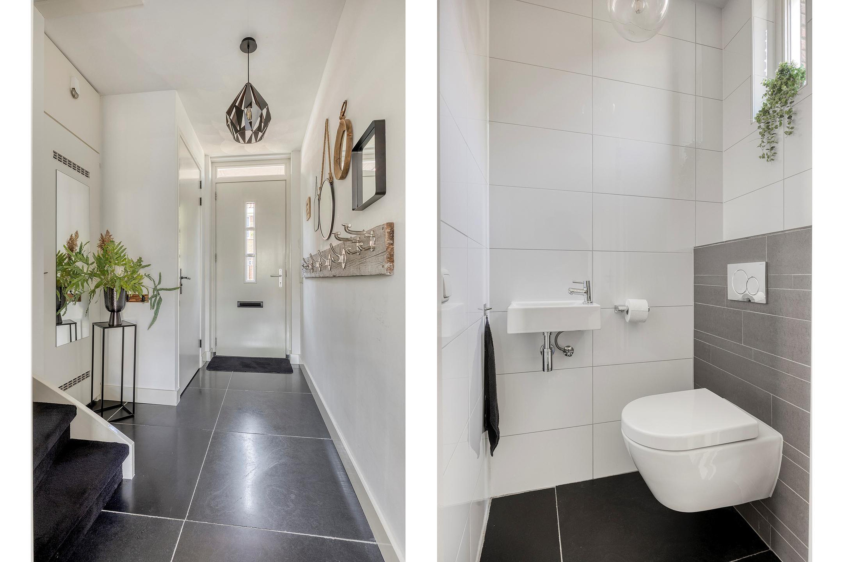 Vanuit de hal/entree met meterkast is er toegang tot het toilet, de woonkamer met open keuken en een trapopgang naar de eerste verdieping. Het woongedeelte is aan de achterzijde van de woning gelegen en geeft een prettig zicht op de achtertuin. Middels openslaande tuindeuren is de achtertuin bereikbaar. In de woonkamer is een trapkast aanwezig wat zorgt voor extra bergruimte. Aan de voorzijde van de woning is de keuken gesitueerd. De keuken in L-vorm en met wandkast is v.v. diverse kasten en lades, een kunststof werkblad met spoelbak en mengkraan, fornuis met oven (Smeg), afzuigkap, magnetron, koel-vries combinatie (Siemens) en een vaatwasser. De vloer van de woonkamer is v.v. hout. De vloer in de keuken, hal en het toilet is v.v. tegels. De gehele benedenverdieping is v.v. vloerverwarming. De wanden en plafonds zijn afgewerkt met stucwerk. De kozijnen zijn van hout met HR++ glas. Het toilet is geheel betegeld en v.v. een hangend toilet en fonteintje.