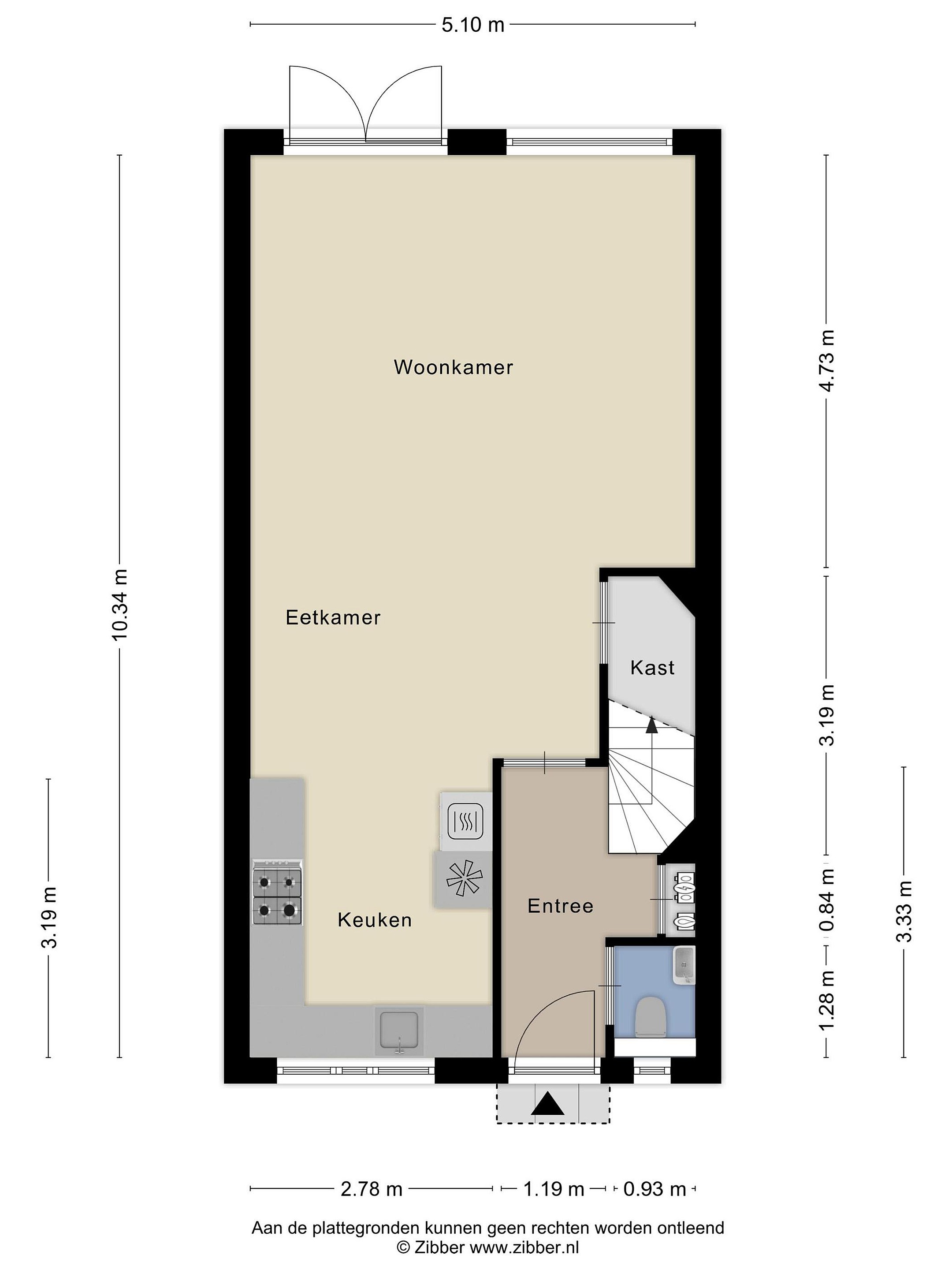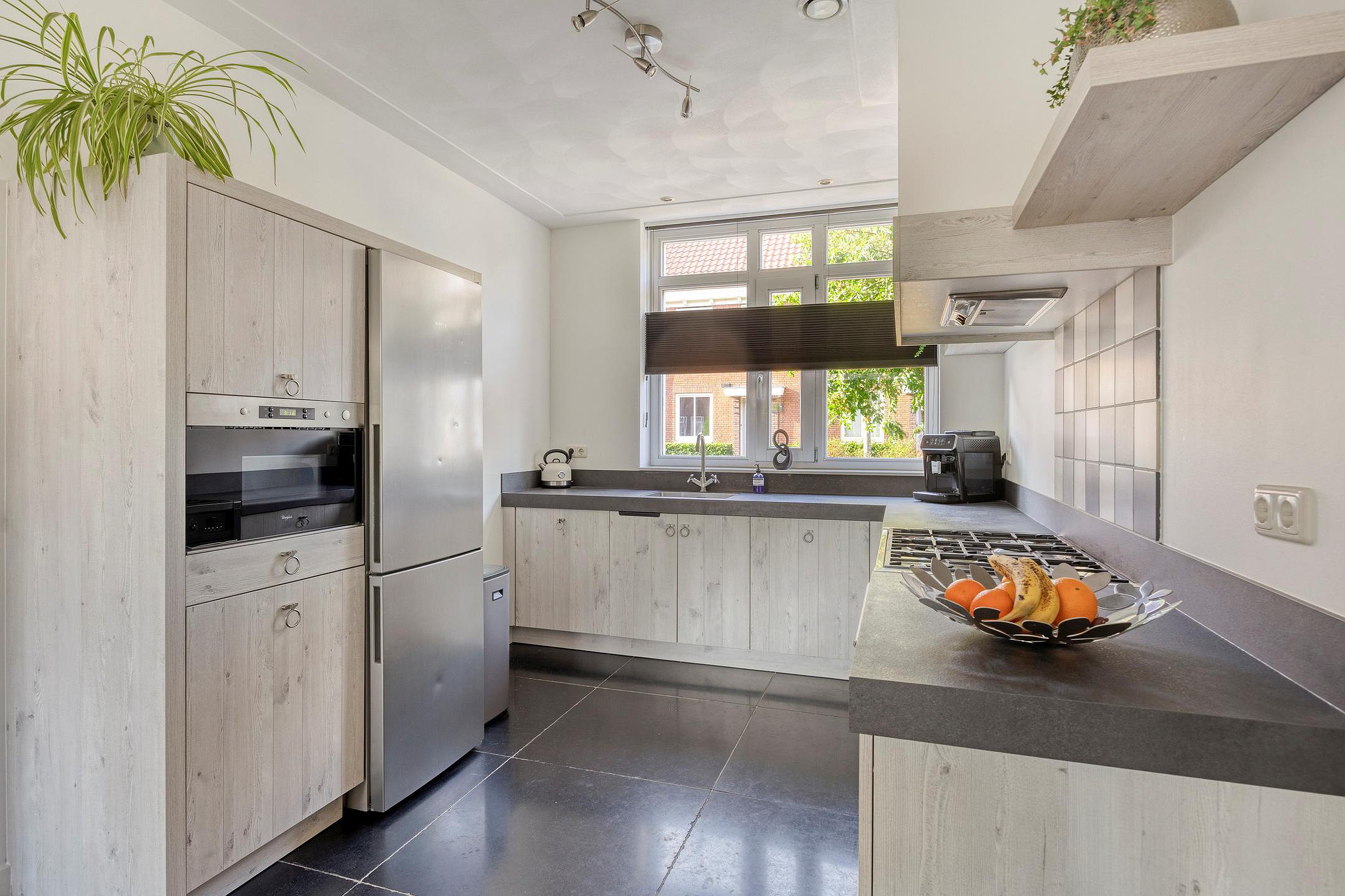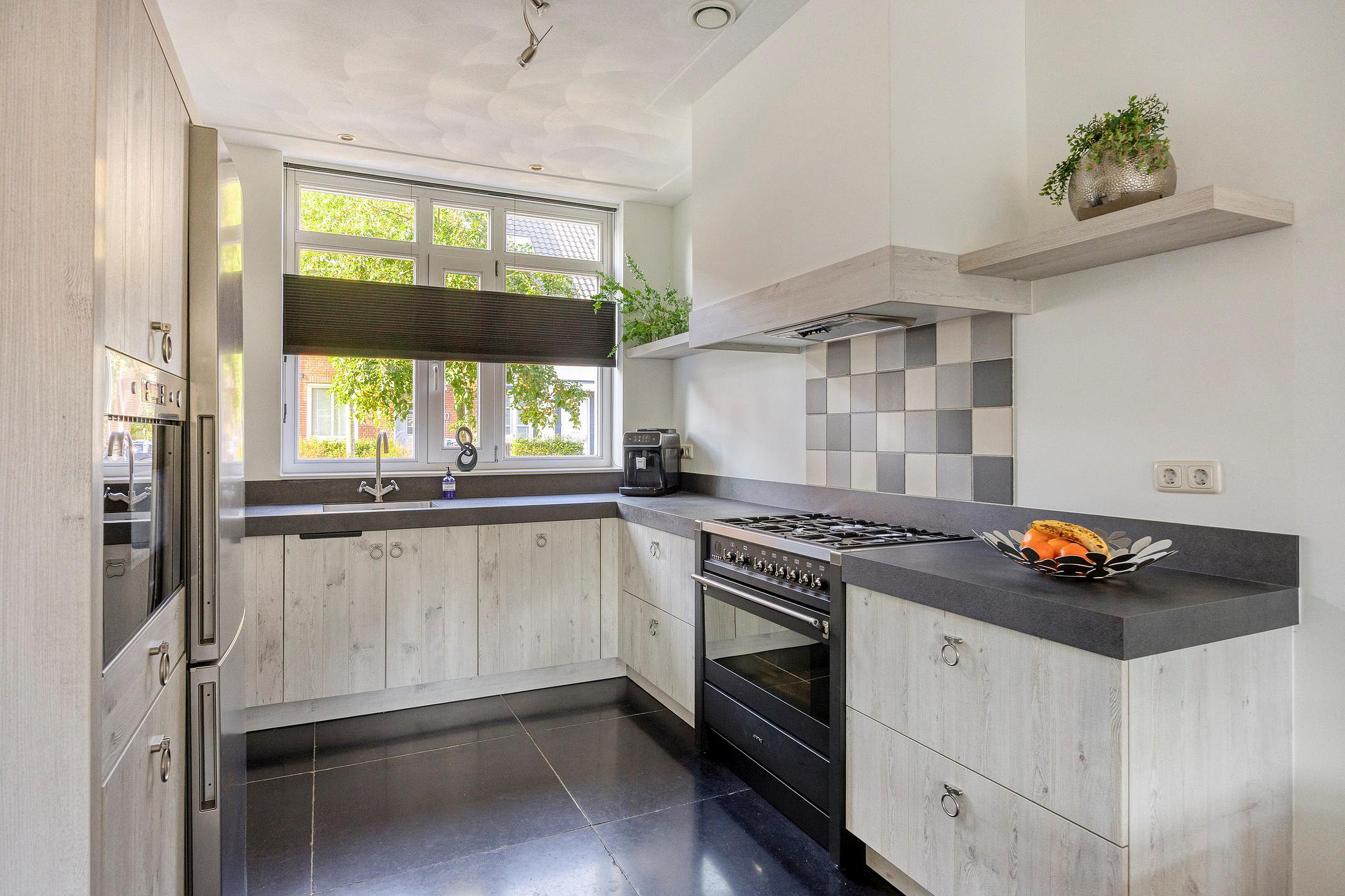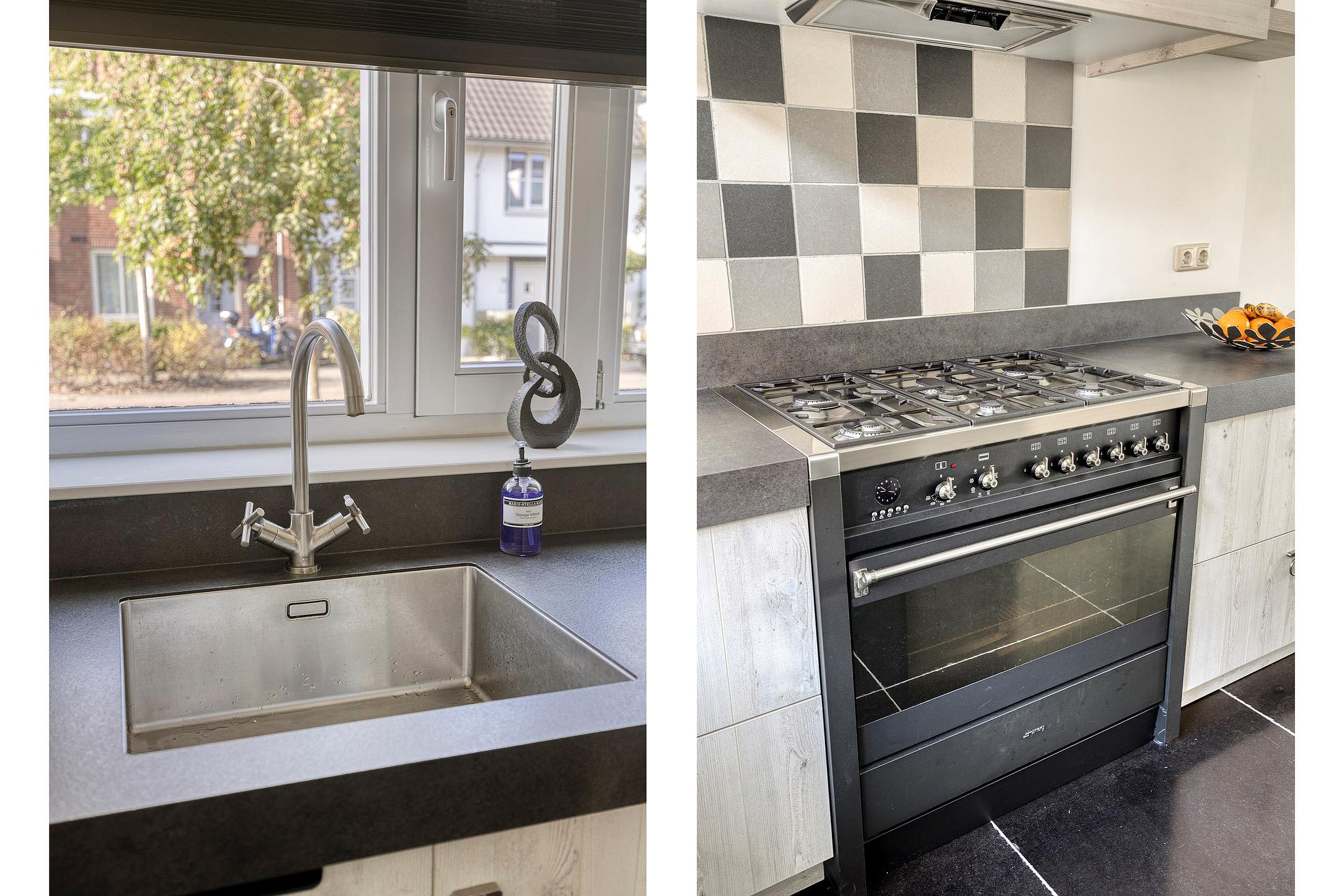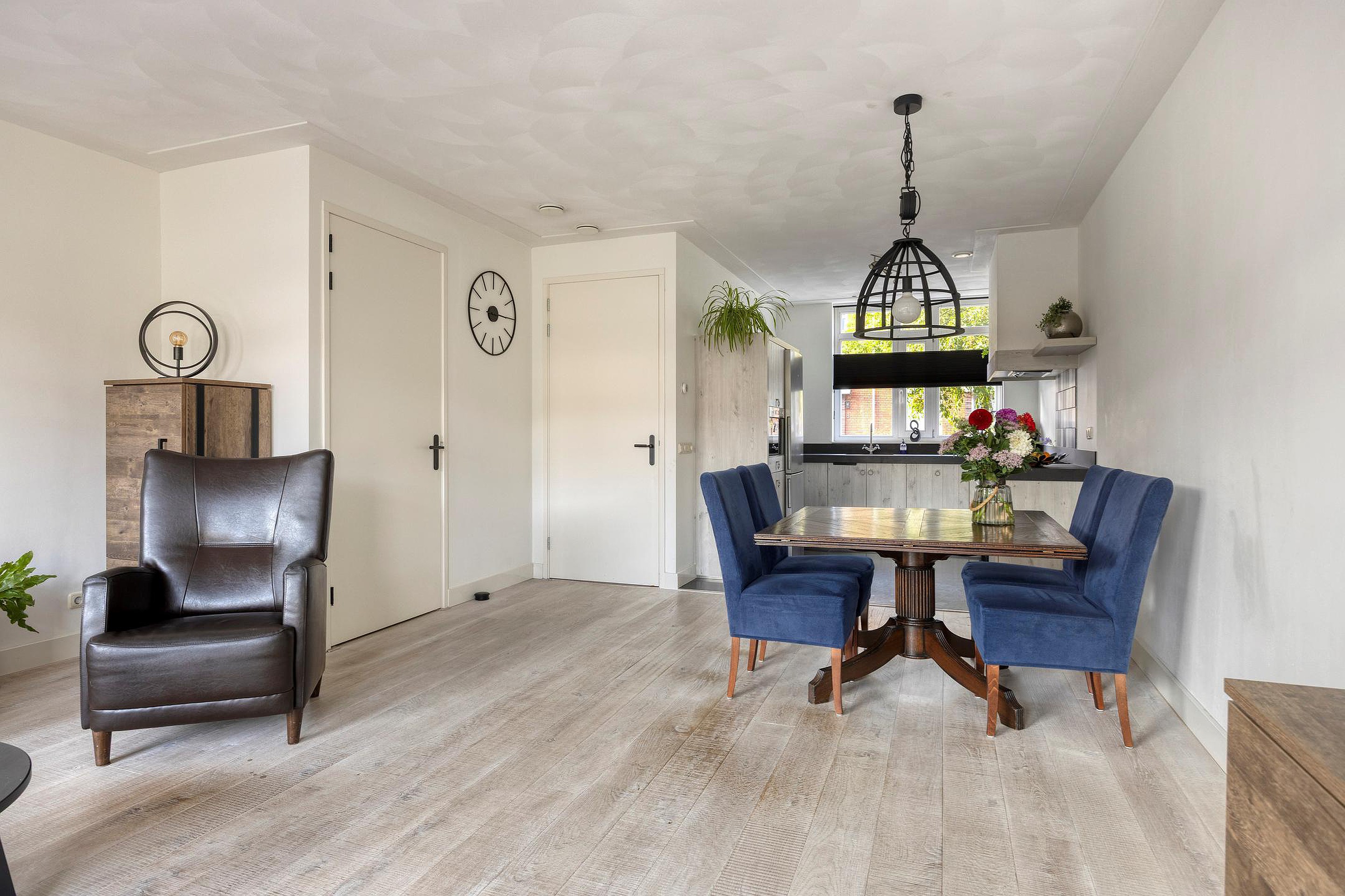 Vanuit de hal/entree met meterkast is er toegang tot het toilet, de woonkamer met open keuken en een trapopgang naar de eerste verdieping. Het woongedeelte is aan de achterzijde van de woning gelegen en geeft een prettig zicht op de achtertuin. Middels openslaande tuindeuren is de achtertuin bereikbaar. In de woonkamer is een trapkast aanwezig wat zorgt voor extra bergruimte. Aan de voorzijde van de woning is de keuken gesitueerd. De keuken in L-vorm en met wandkast is v.v. diverse kasten en lades, een kunststof werkblad met spoelbak en mengkraan, fornuis met oven (Smeg), afzuigkap, magnetron, koel-vries combinatie (Siemens) en een vaatwasser. De vloer van de woonkamer is v.v. hout. De vloer in de keuken, hal en het toilet is v.v. tegels. De gehele benedenverdieping is v.v. vloerverwarming. De wanden en plafonds zijn afgewerkt met stucwerk. De kozijnen zijn van hout met HR++ glas. Het toilet is geheel betegeld en v.v. een hangend toilet en fonteintje.
