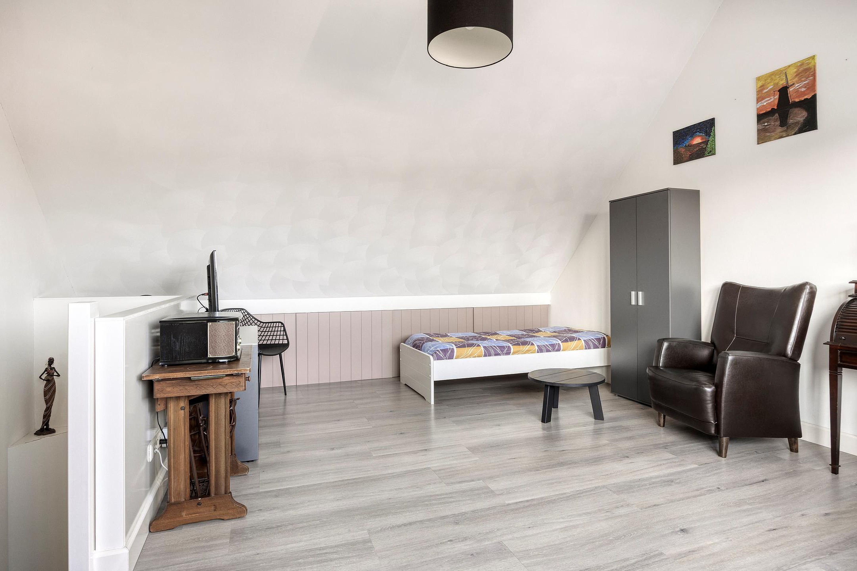 Middels een vaste trap is de ruime zolder/vierde slaapkamer bereikbaar. Op deze verdieping is tevens een technische ruimte aanwezig waar de cv-ketel en de WTW-installatie gesitueerd zijn. De vloer is afgewerkt met laminaat. De wanden en plafonds zijn v.v. stucwerk. De kozijnen zijn van hout met HR++ glas en v.v. een hor.
