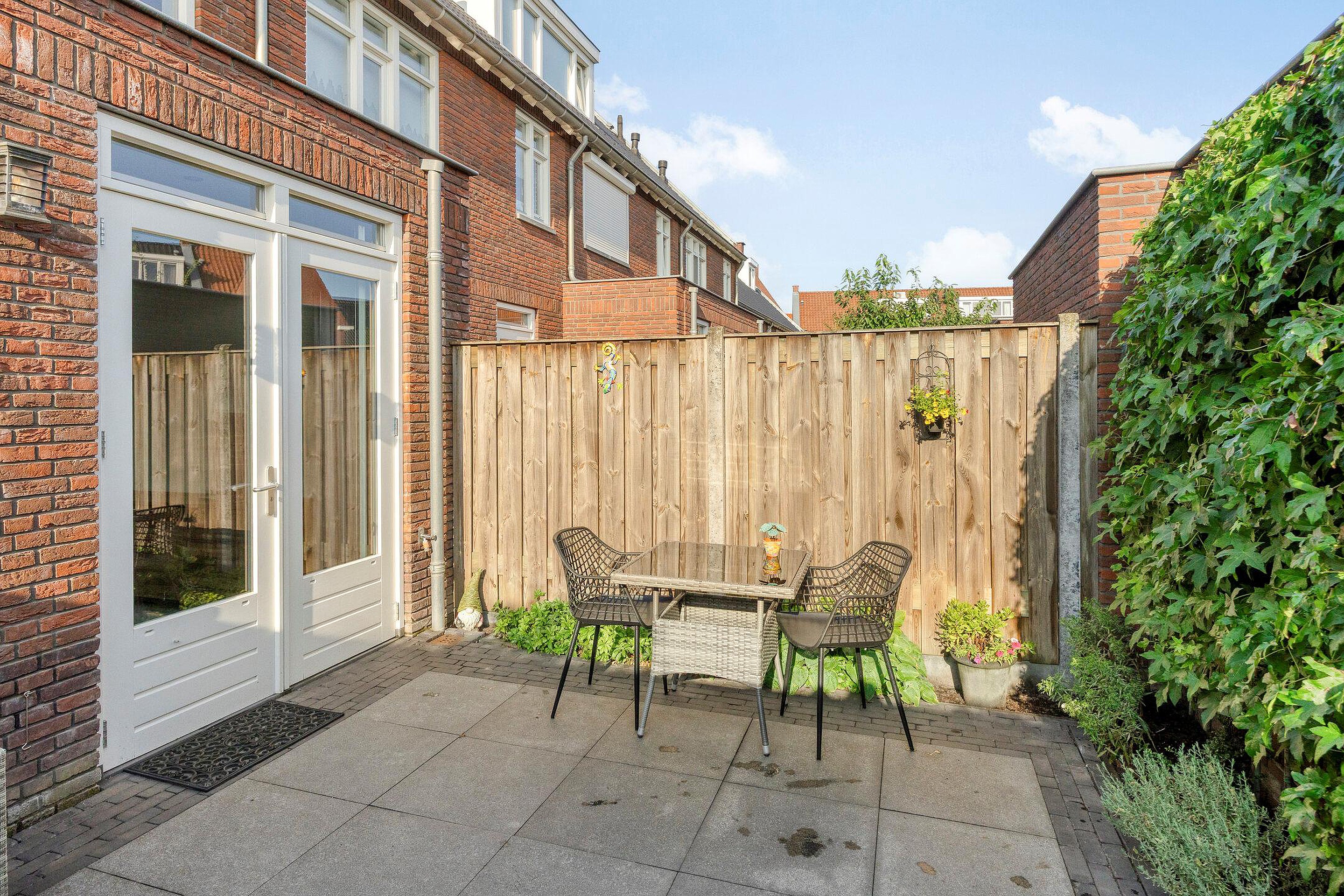 Deze woning beschikt over een voor-en achtertuin. De achtertuin met stenen berging is gelegen op het noordoosten en is aangelegd met sierbestrating en vaste beplanting. De achtertuin is bereikbaar middels een poort vanuit het gezamenlijk parkeerterrein. De voortuin is aangelegd met sierbestrating, siergrind en een bloembak met vaste beplanting.