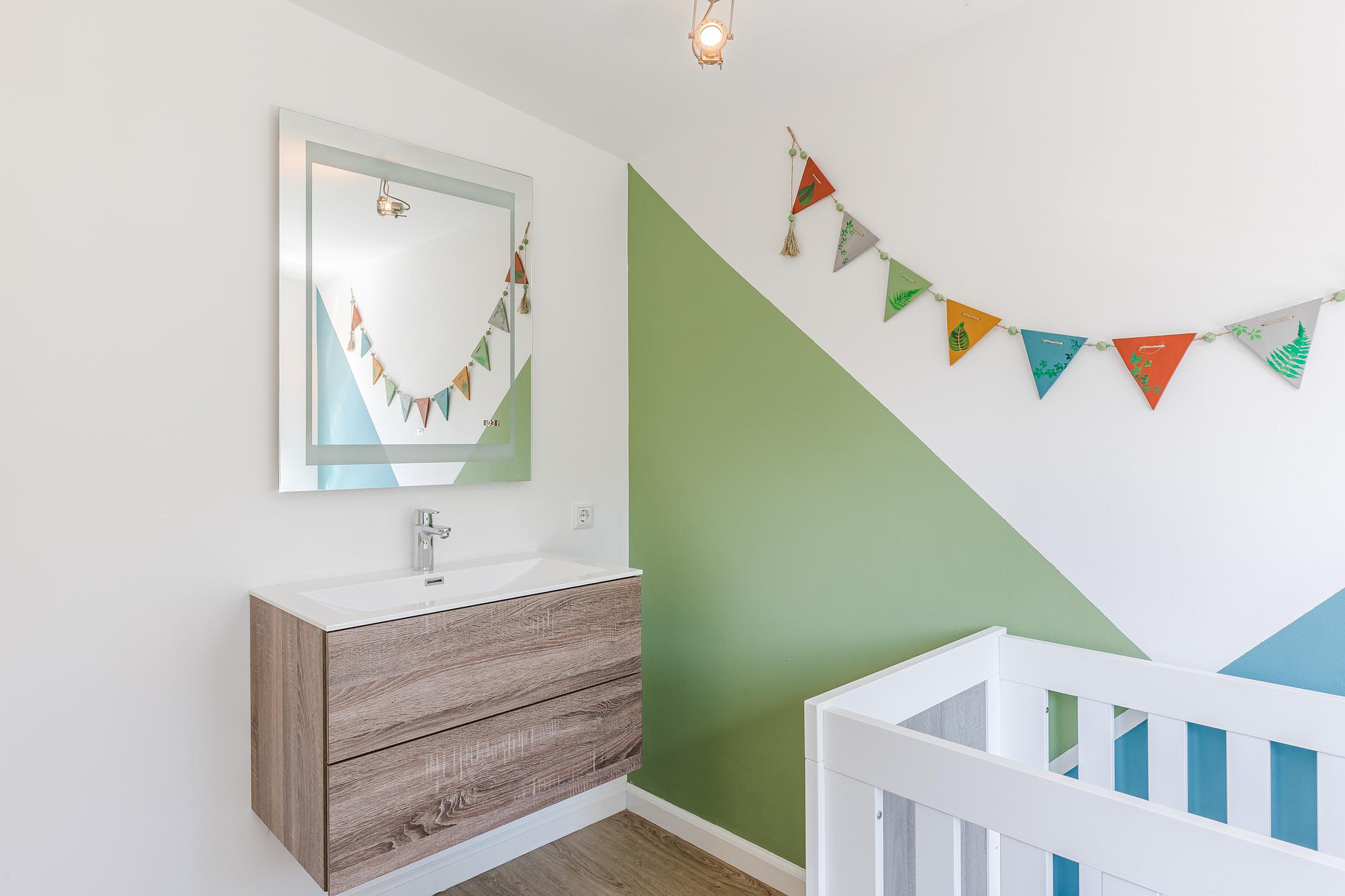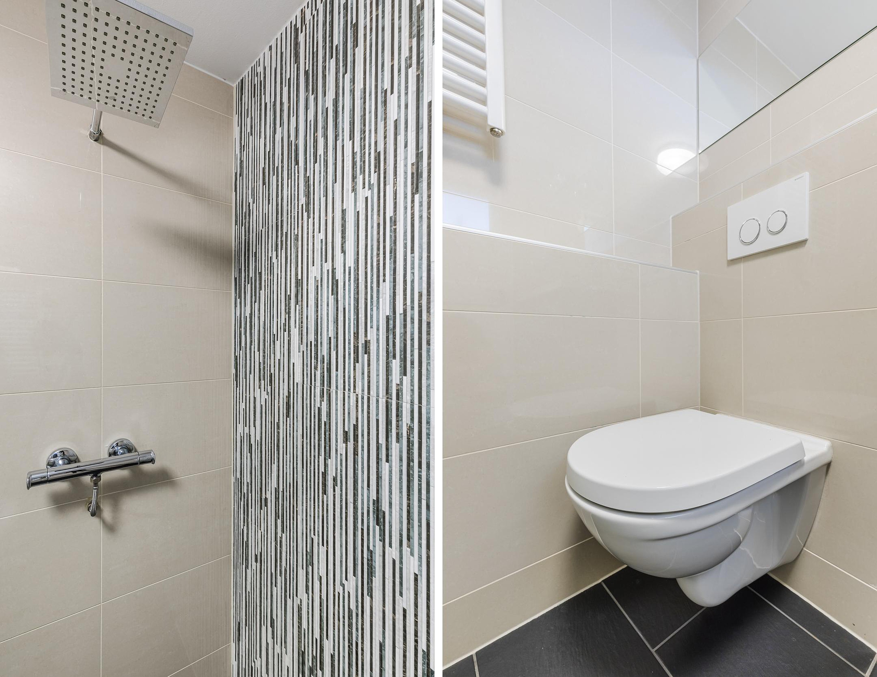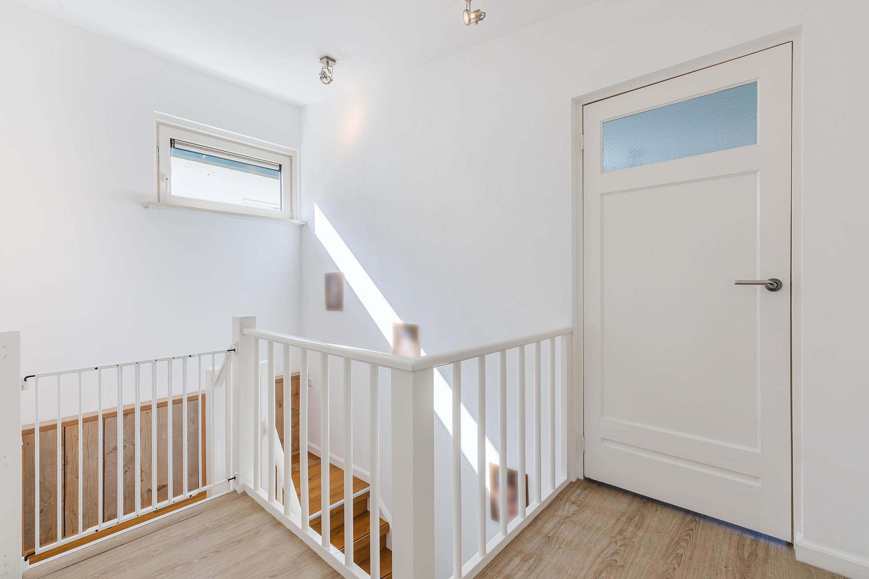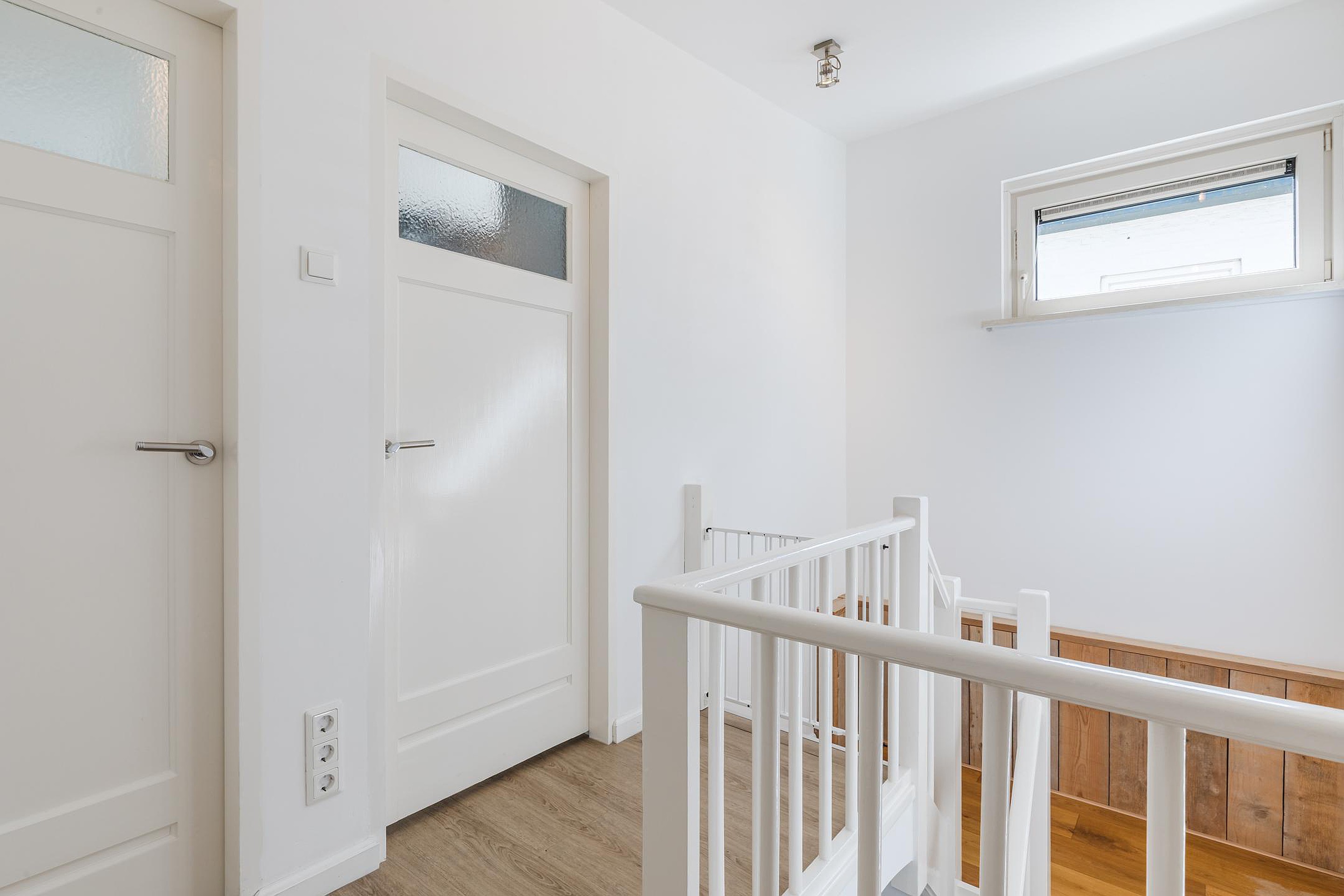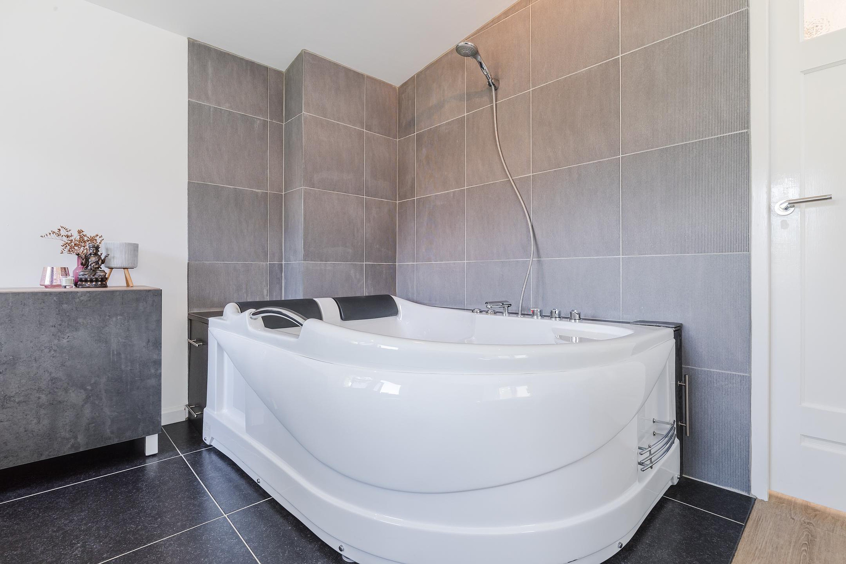 De overloop geeft toegang tot 3 ruime slaapkamers en de badkamer. De overloop en de slaapkamers zijn voorzien van een pvc-vloer. De slaapkamers zijn ca. 8,5m2, 8,5m2 en 22,5m2 groot. Eén slaapkamer is voorzien van een wastafel. De masterbedroom is deels voorzien van een tegelvloer. In de masterbedroom is een grote whirlpool gesitueerd. De geheel betegelde badkamer (2011) is ingericht met een inloopdouche, zwevend closet en een grote wastafel met meubel. De 1e verdieping is voorzien van rolluiken.