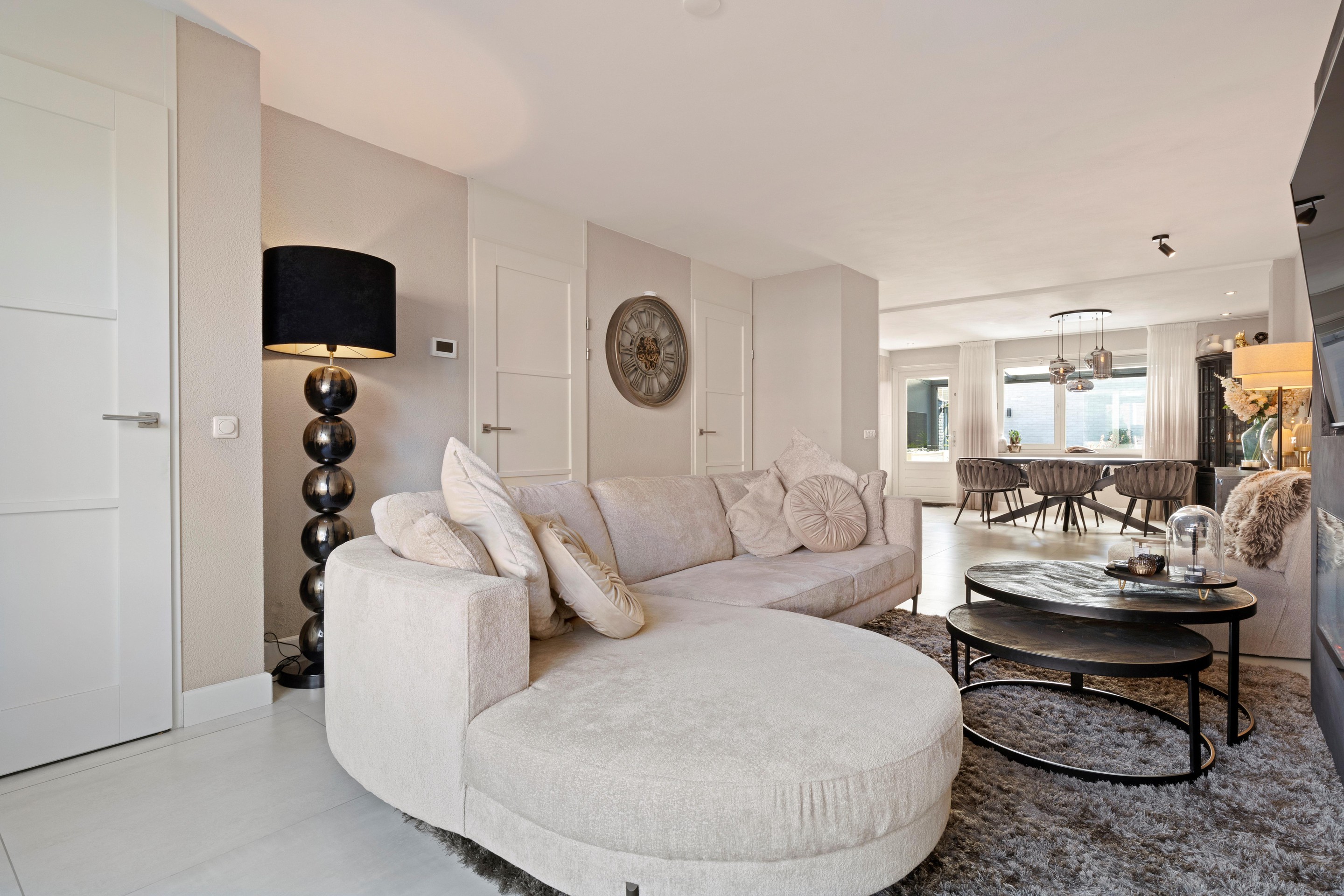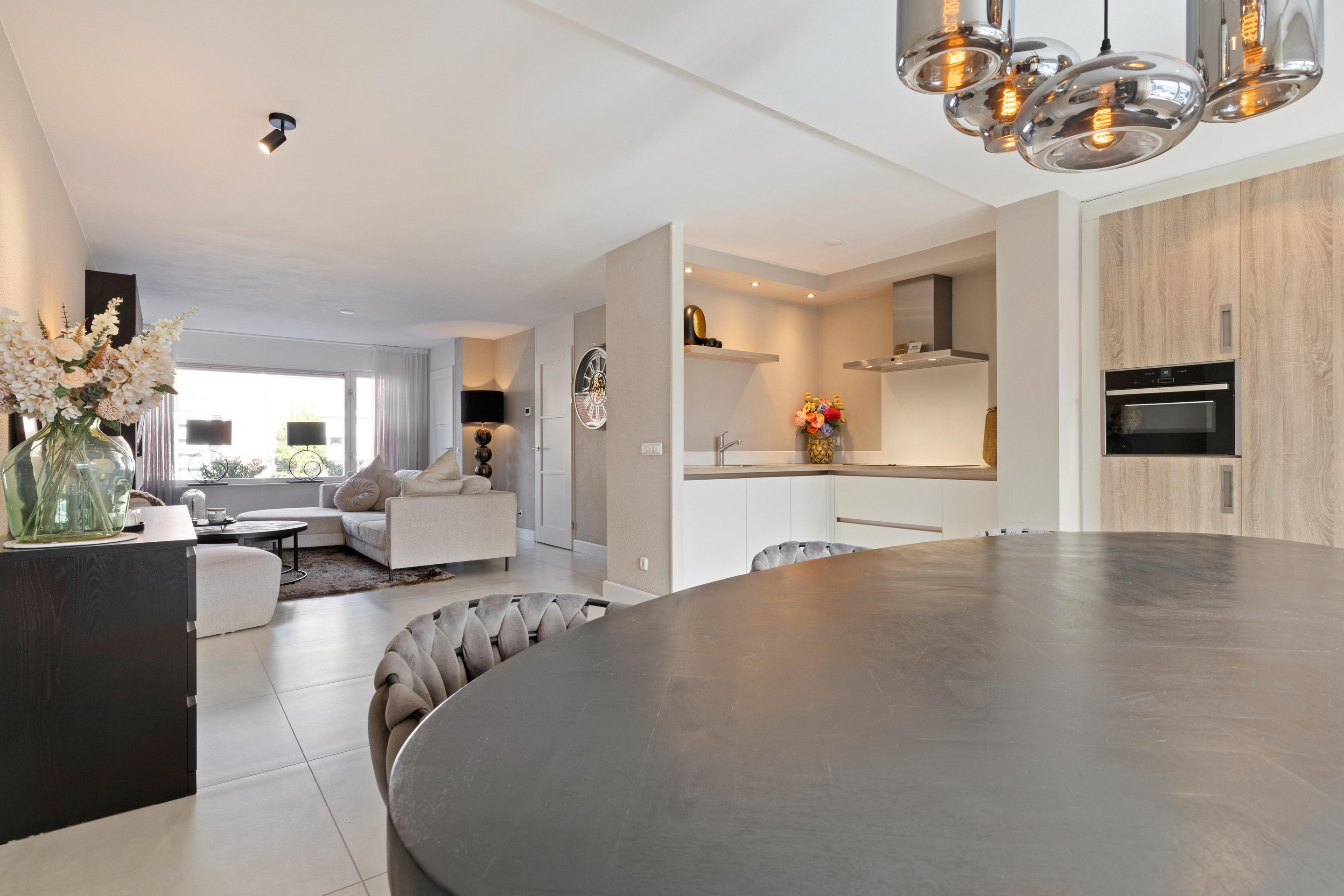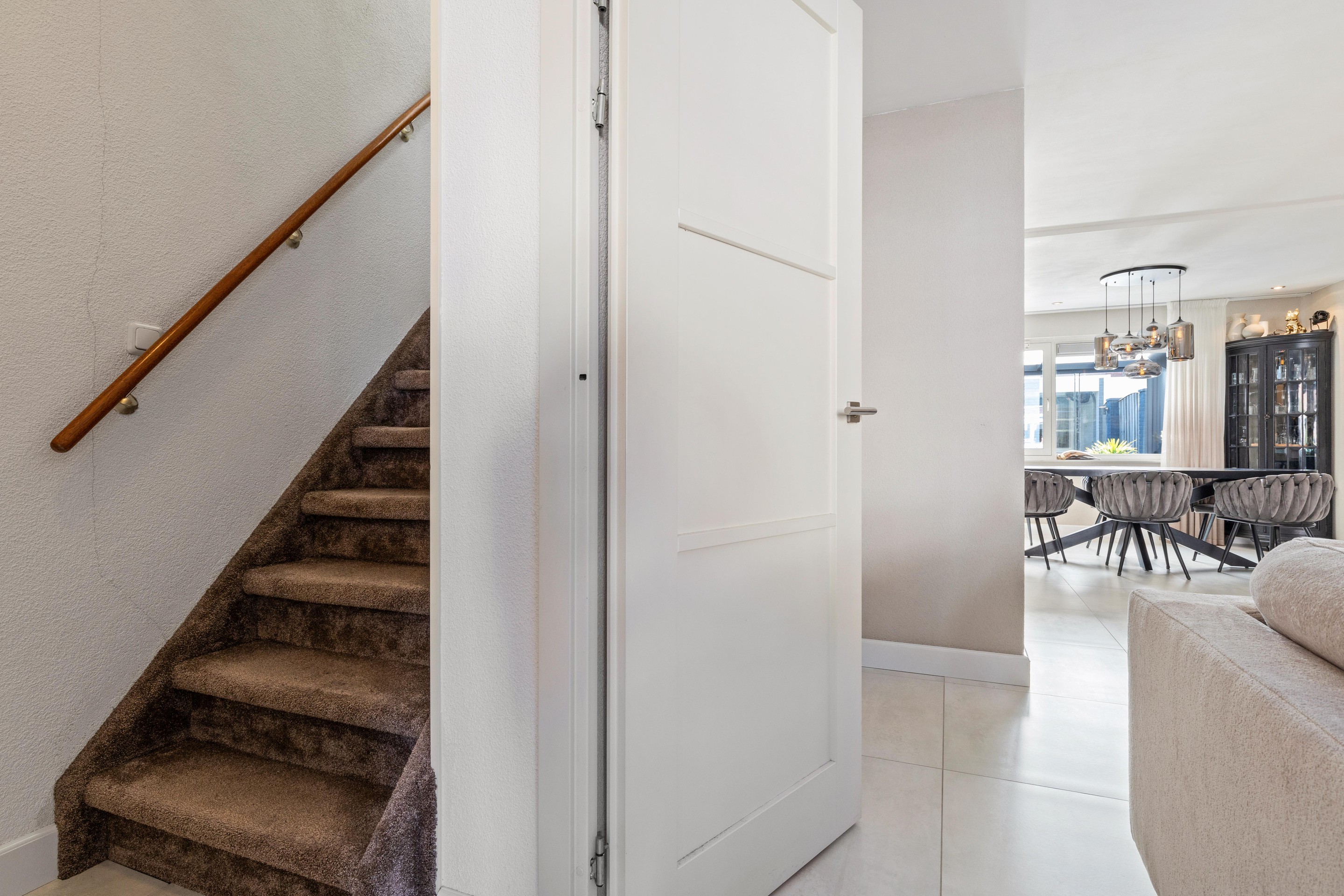 De gehele begane grond is in 2022 vernieuwd en voorzien van een moderne tegelvloer met vloerverwarming en strak gestucte wanden en plafonds.