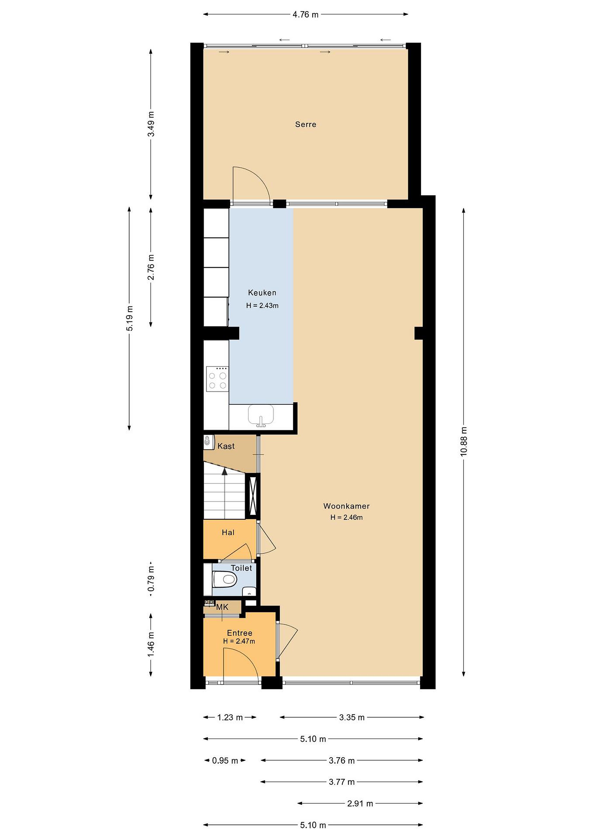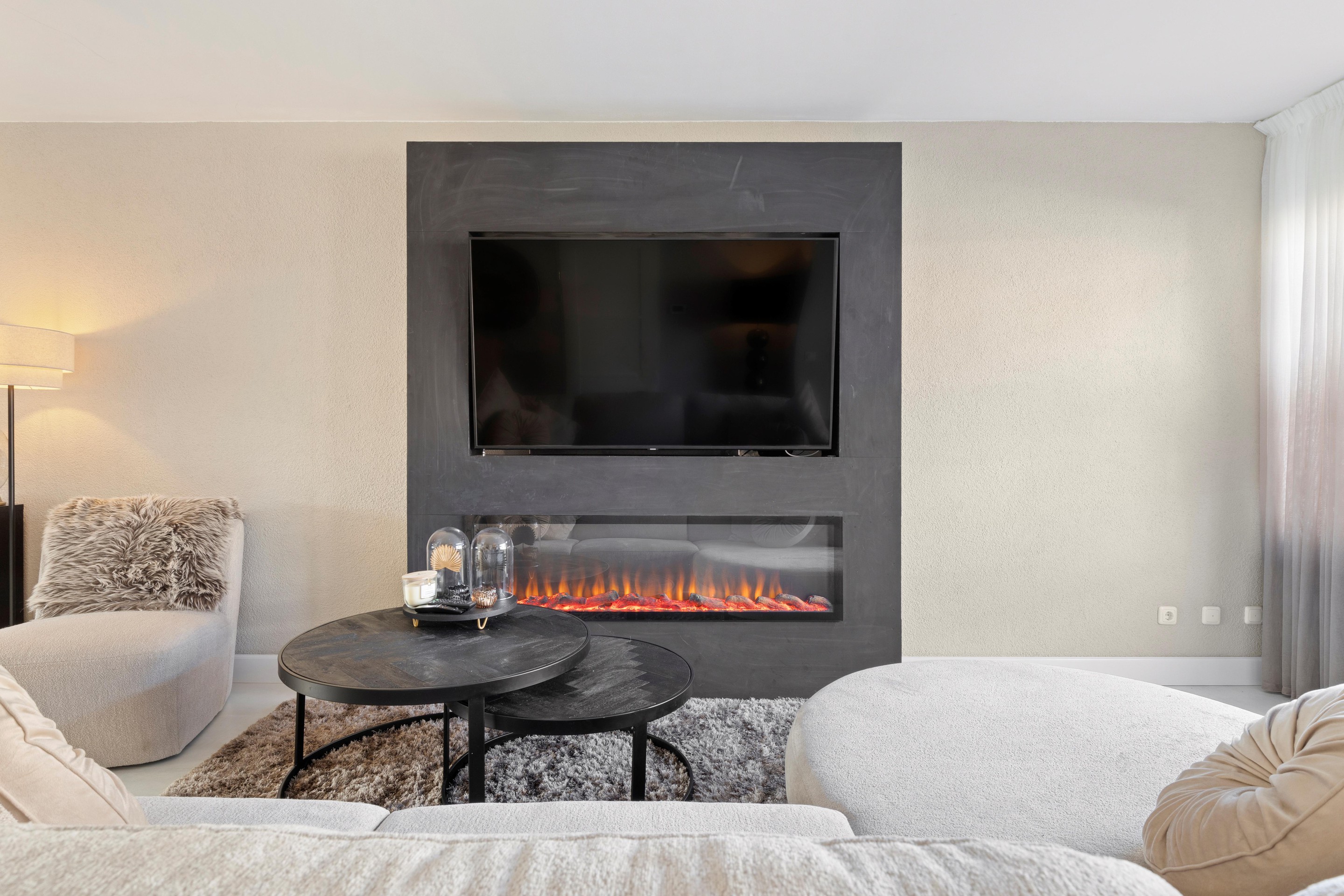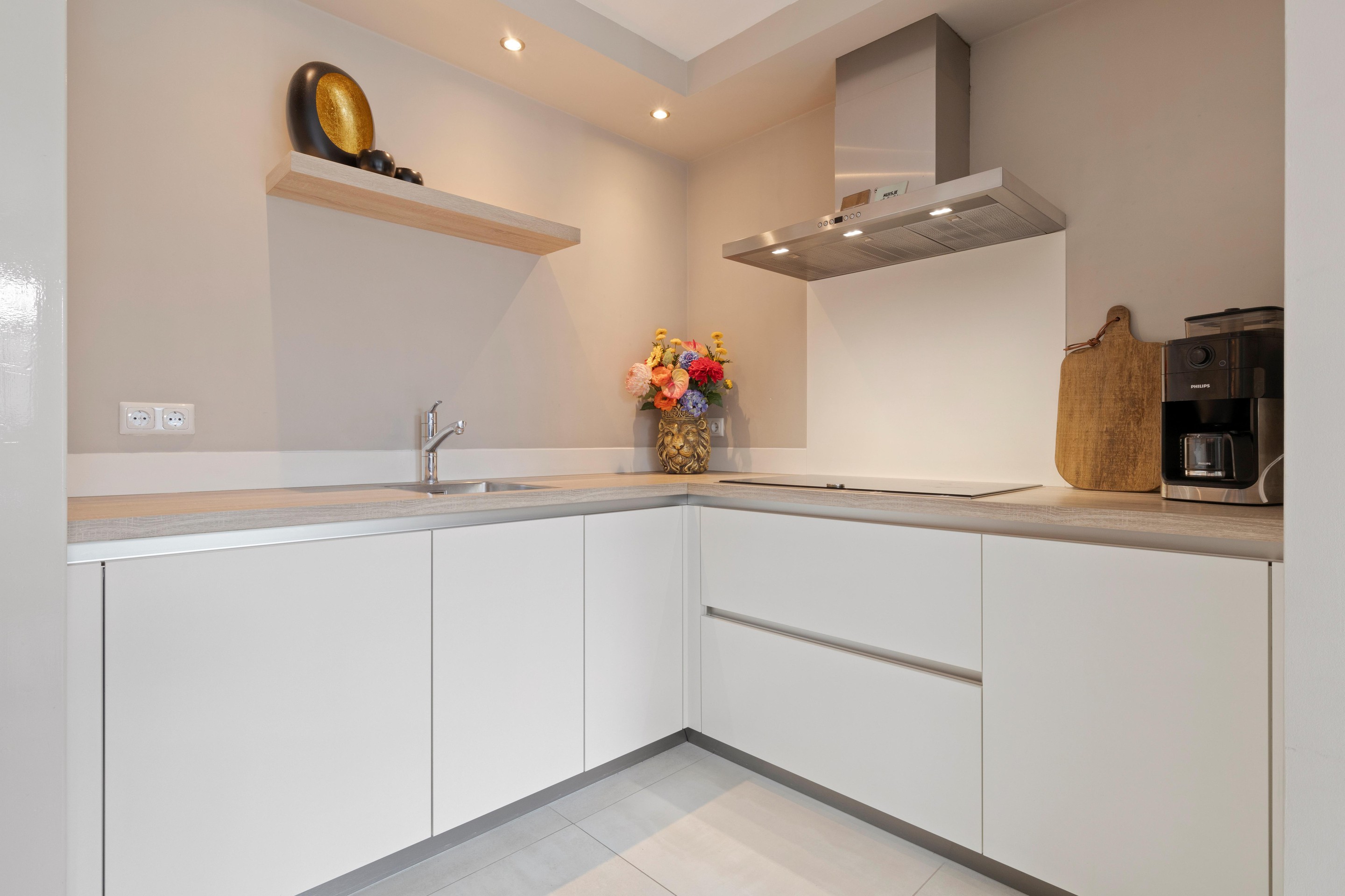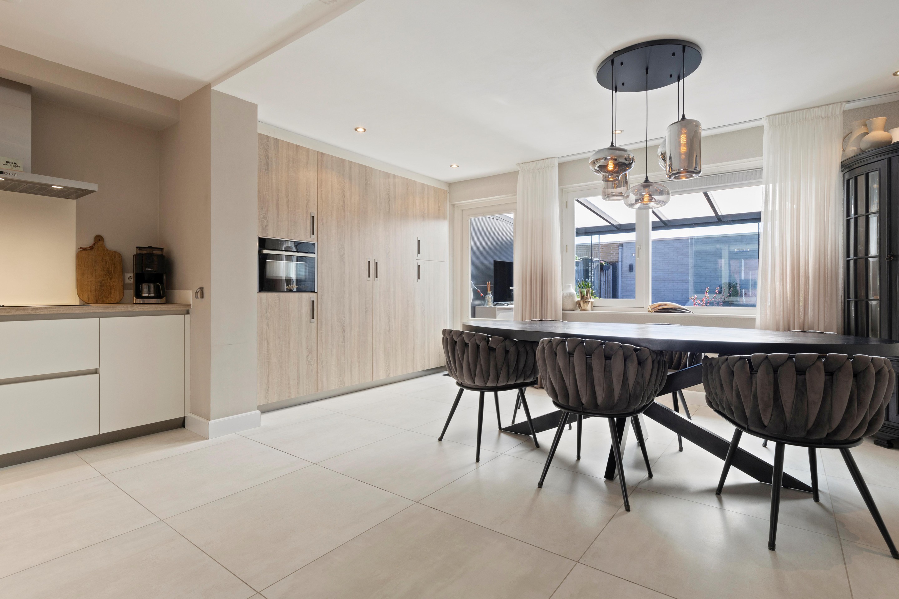 De gehele begane grond is in 2022 vernieuwd en voorzien van een moderne tegelvloer met vloerverwarming en strak gestucte wanden en plafonds.