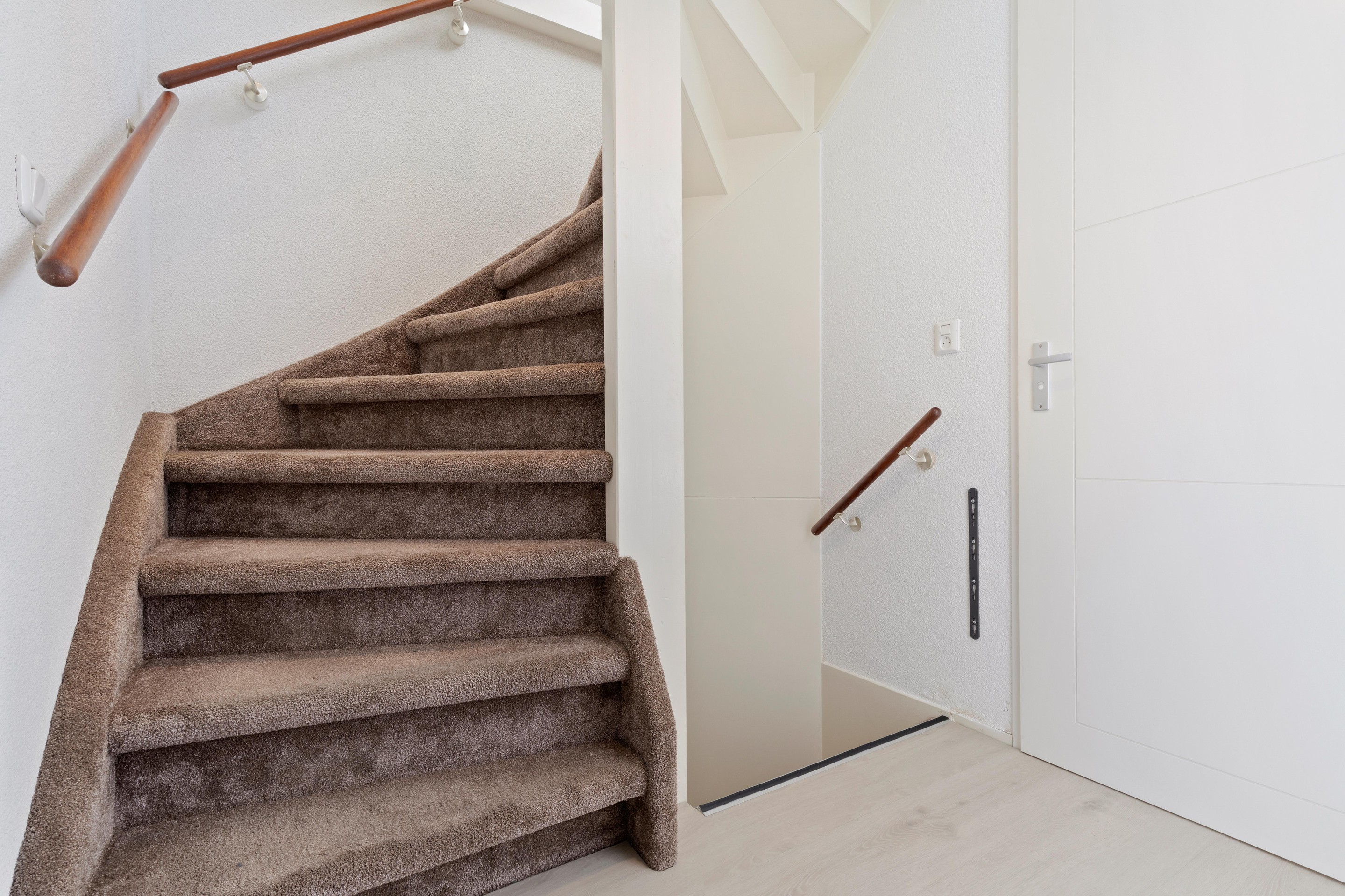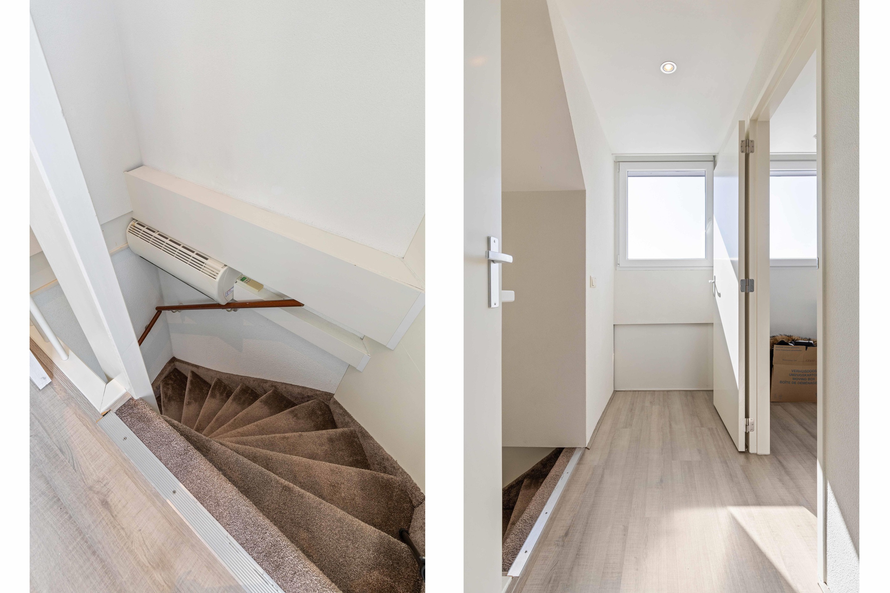 De verdieping is afgewerkt met een moderne PVC-houtlook vloer (2022).