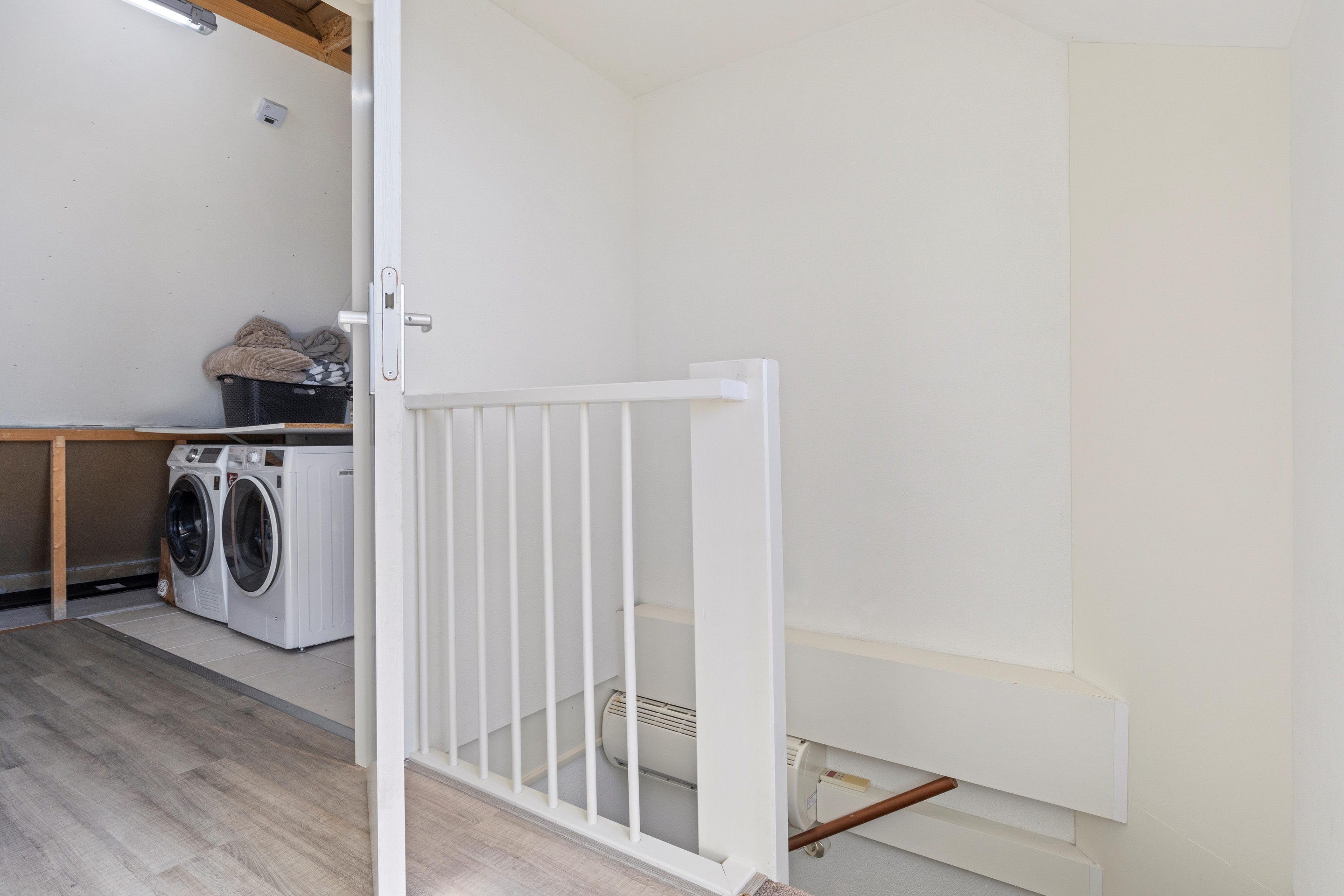Via een vaste trap bereik je de overloop op de zolderverdieping met een ruime 4e slaapkamer (ca. 16,5 m2) en een aparte wasruimte (ca.7m2) met CV-opstelling.