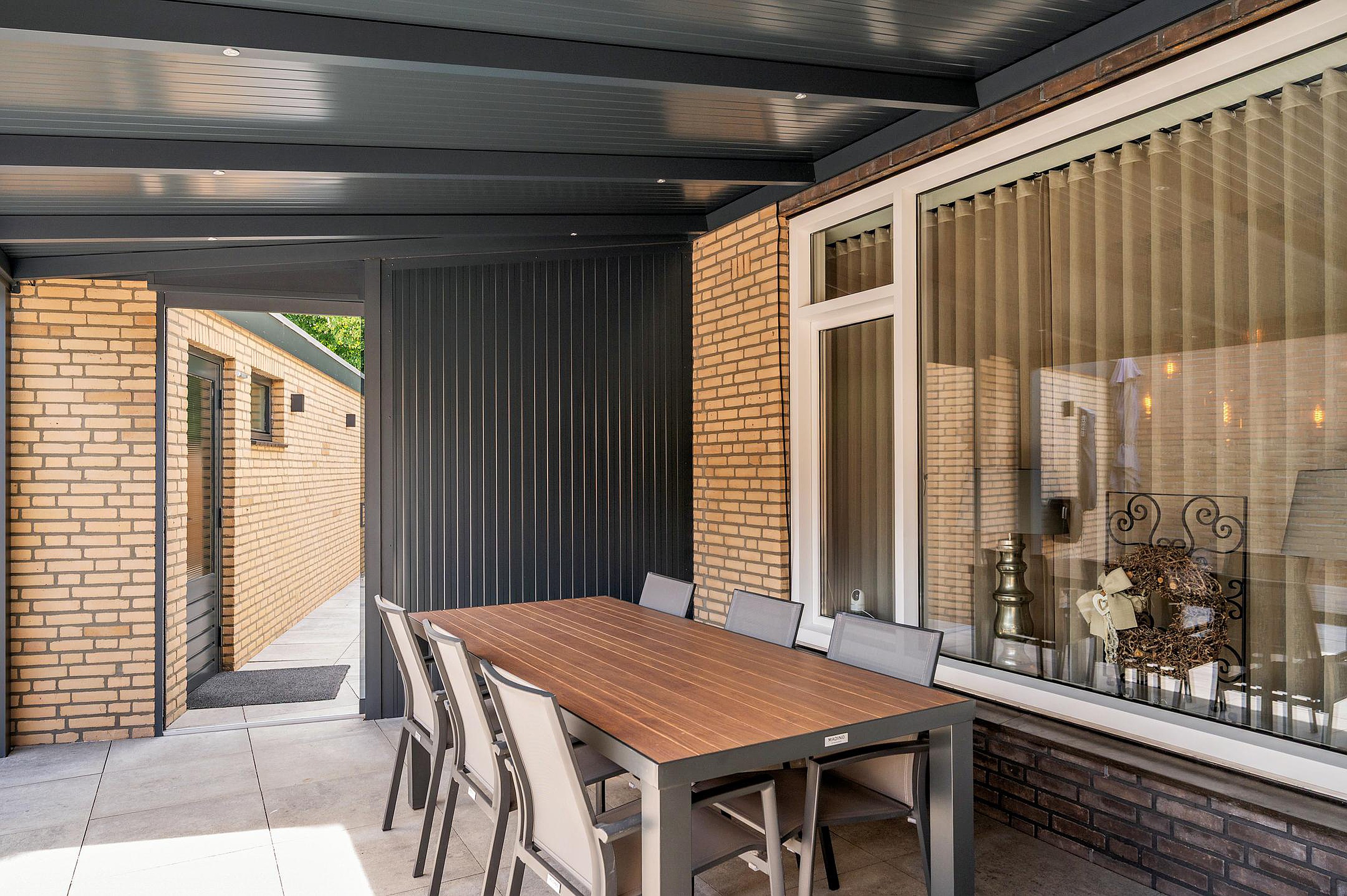 Tuin De woning heeft een onderhoudsvrije zij- en achtertuin met garage; de garage is voorzien van spouwmuren en een elektrisch bedienbare poort. De achtertuin is voorzien van een zeer fraaie overkapping met geïsoleerd dak.