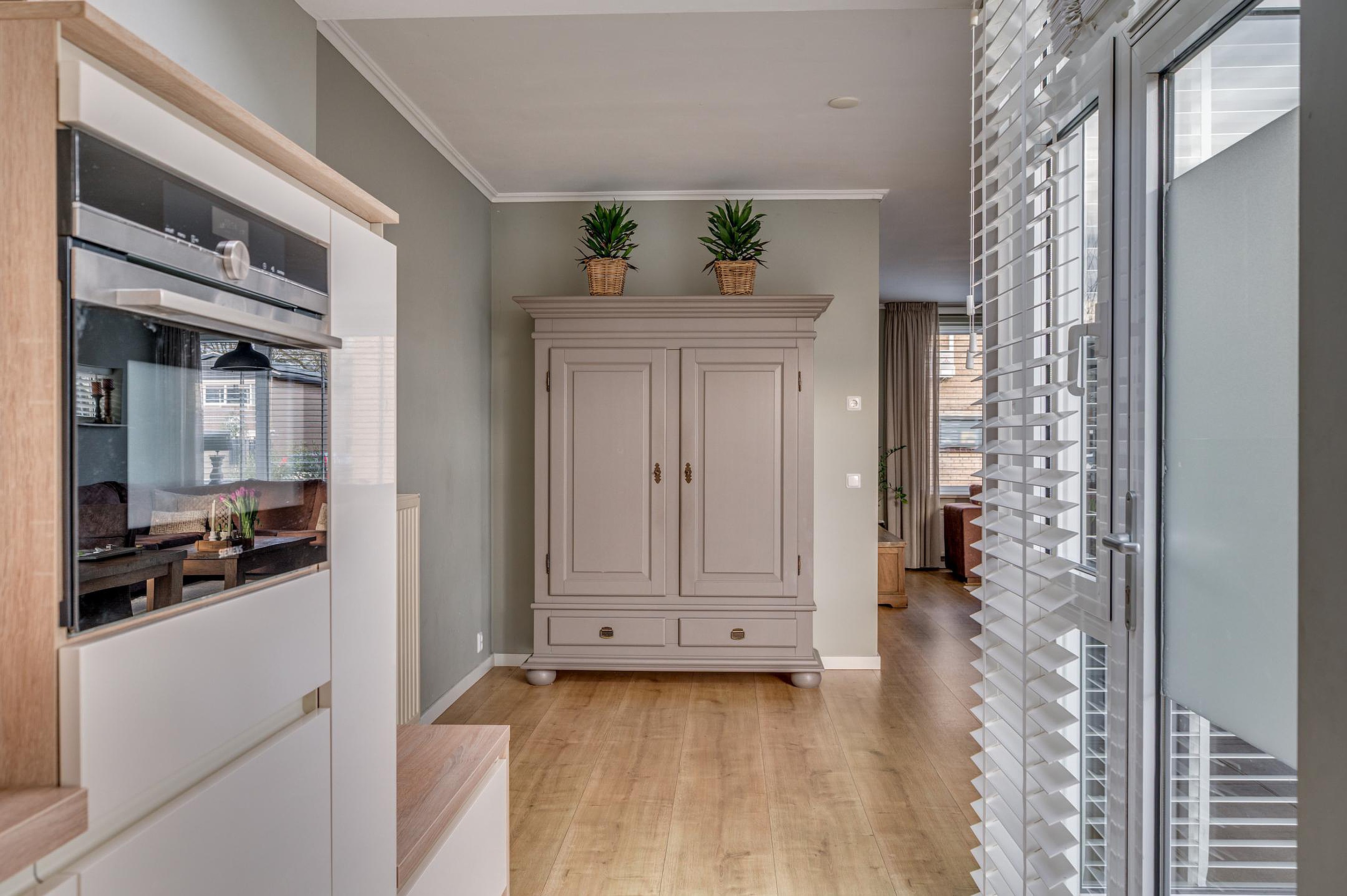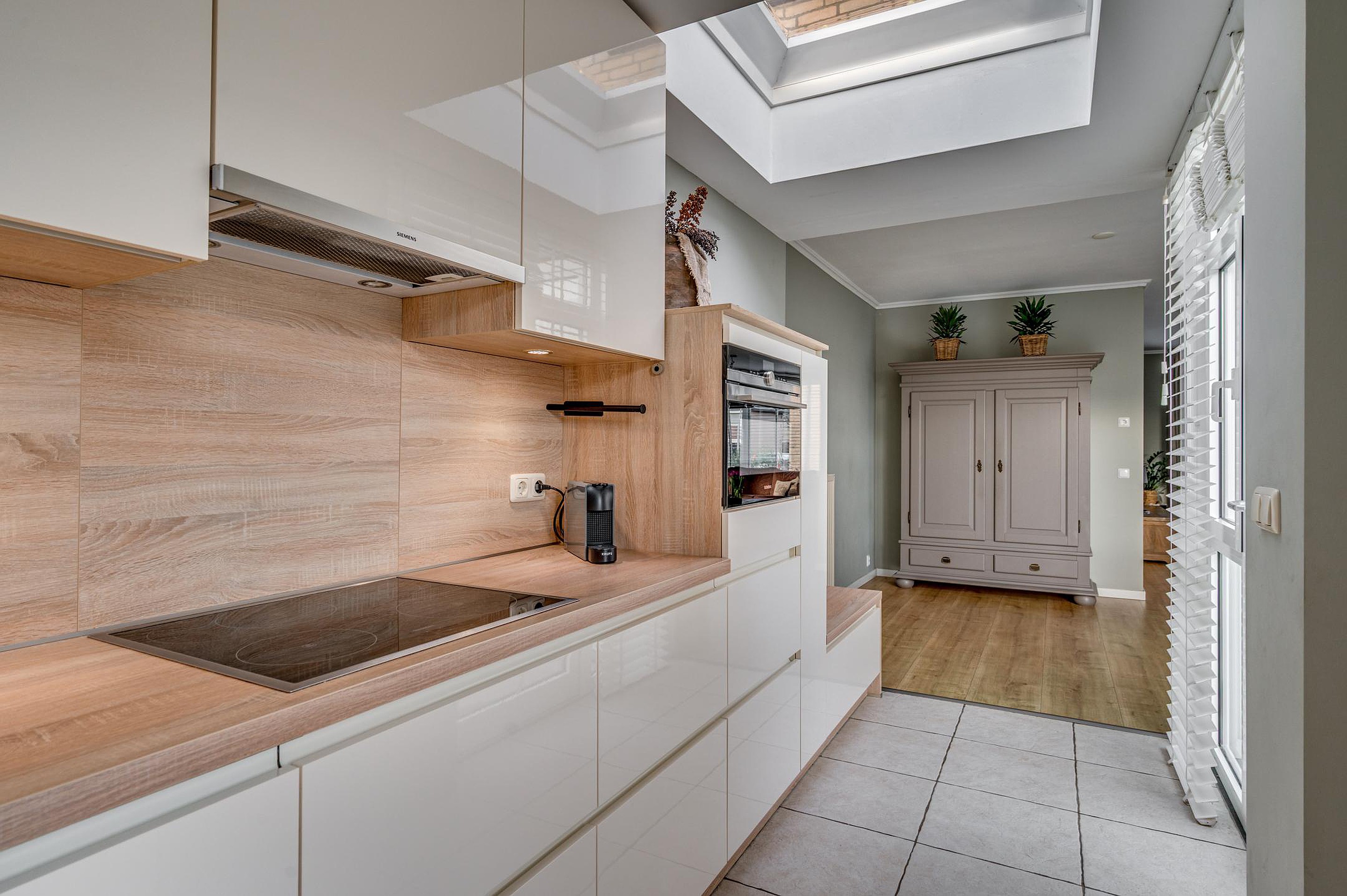 Aansluitend bevindt zich de uitgebouwde keuken, die in 2015 is vernieuwd en modern is ingericht. De keuken beschikt over een inductiekookplaat, afzuigkap, combi-oven, koelkast, vrieskast en vaatwasser.