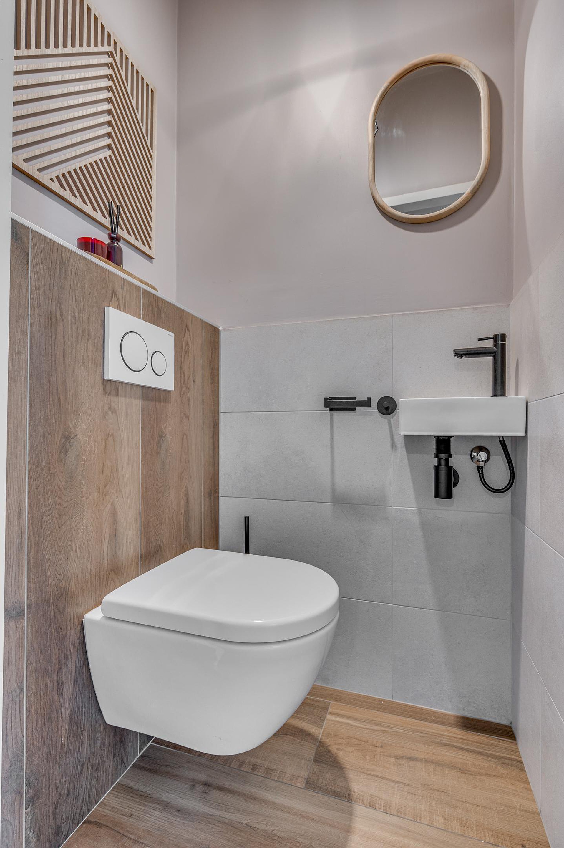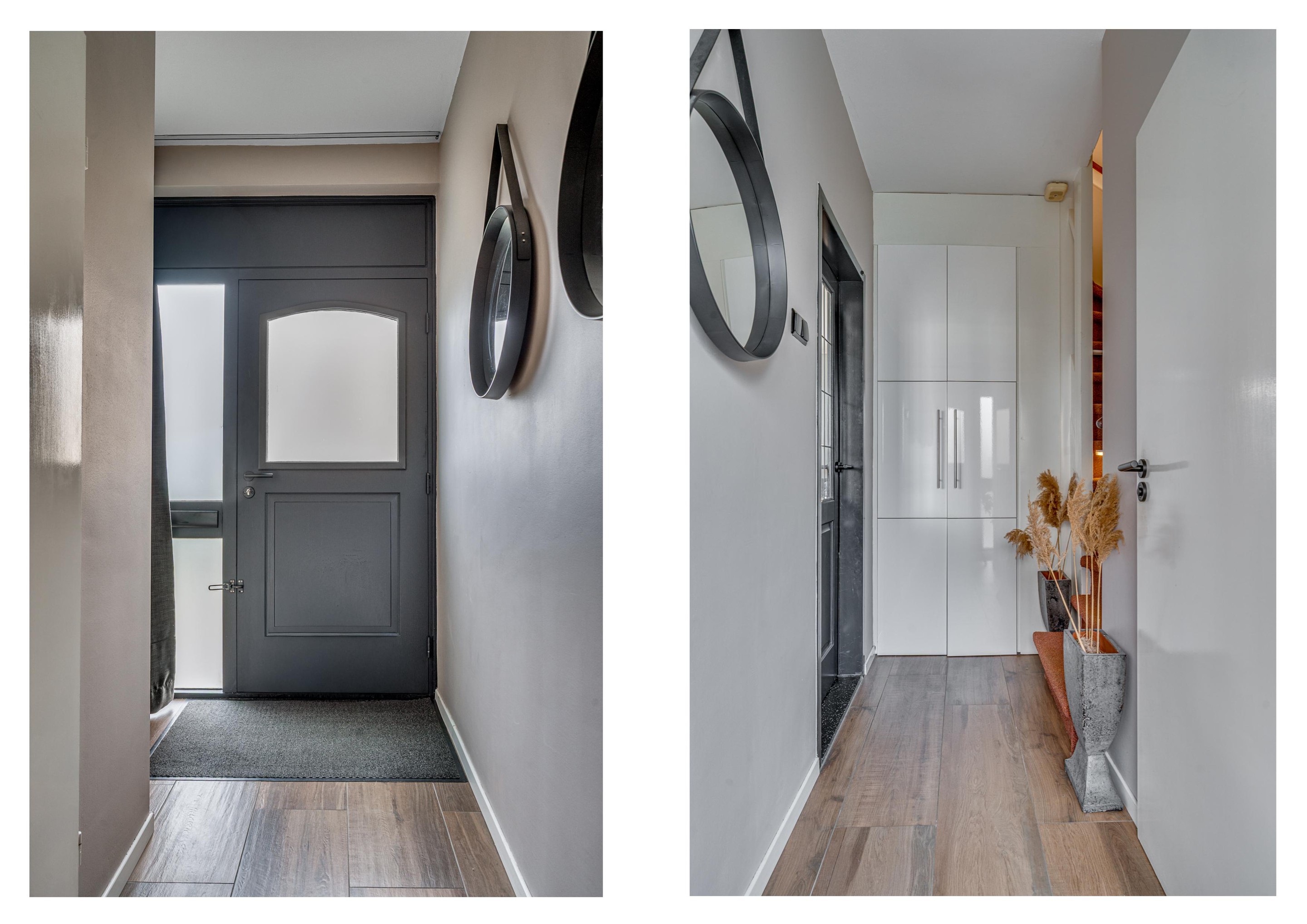 Via de entree kom je in de hal met bergkast, modern toilet en toegang tot de leefruimtes.