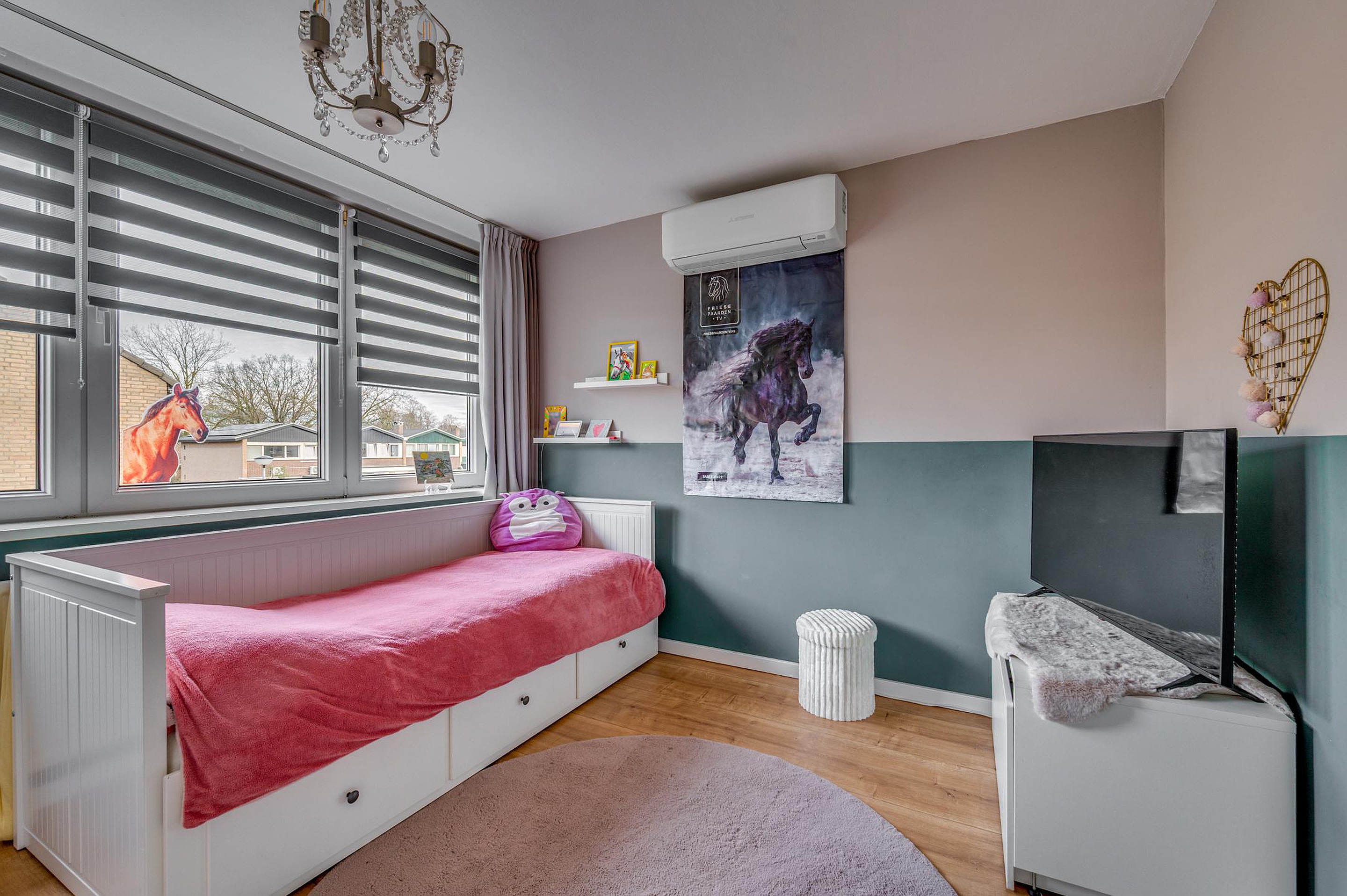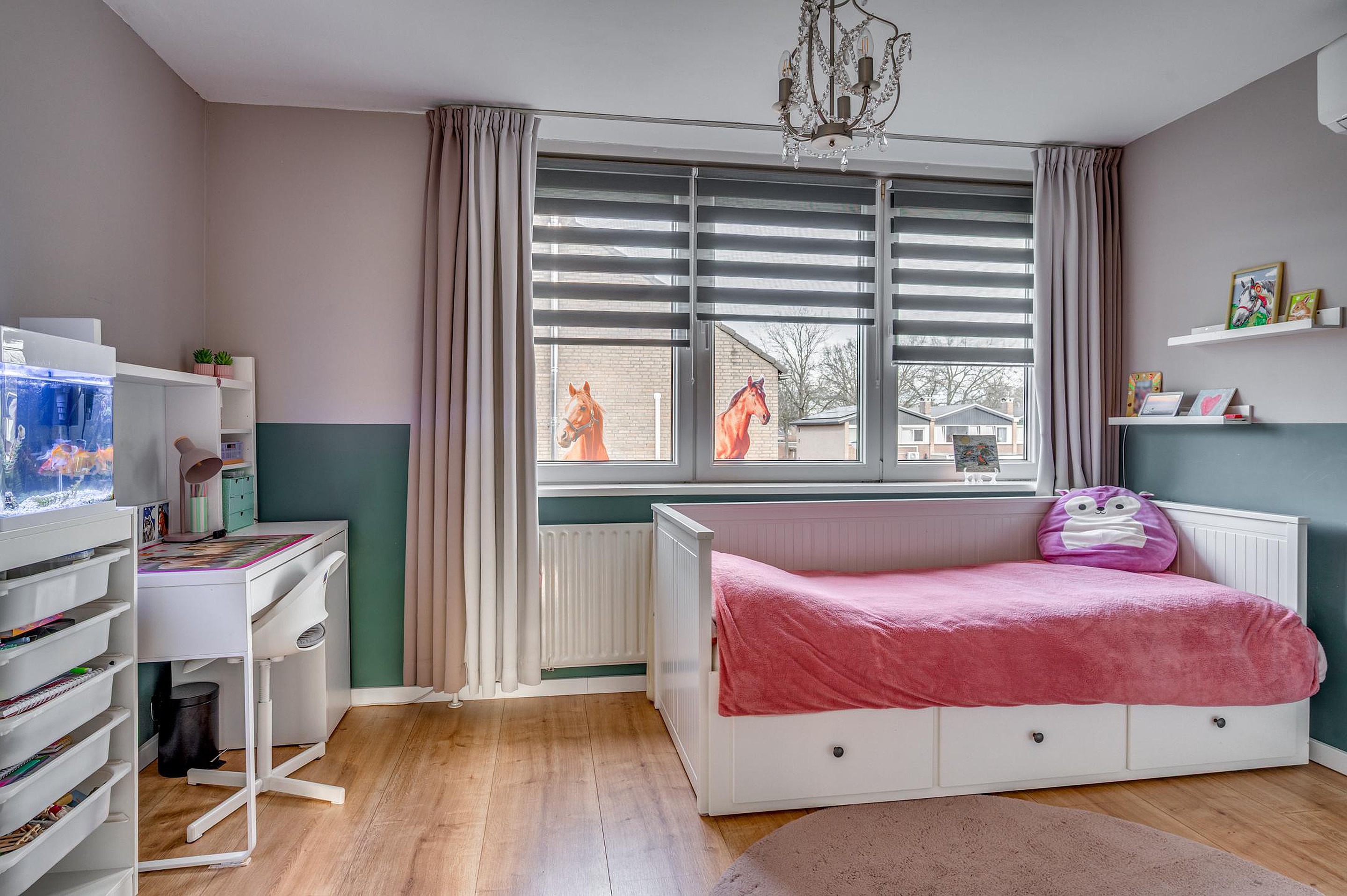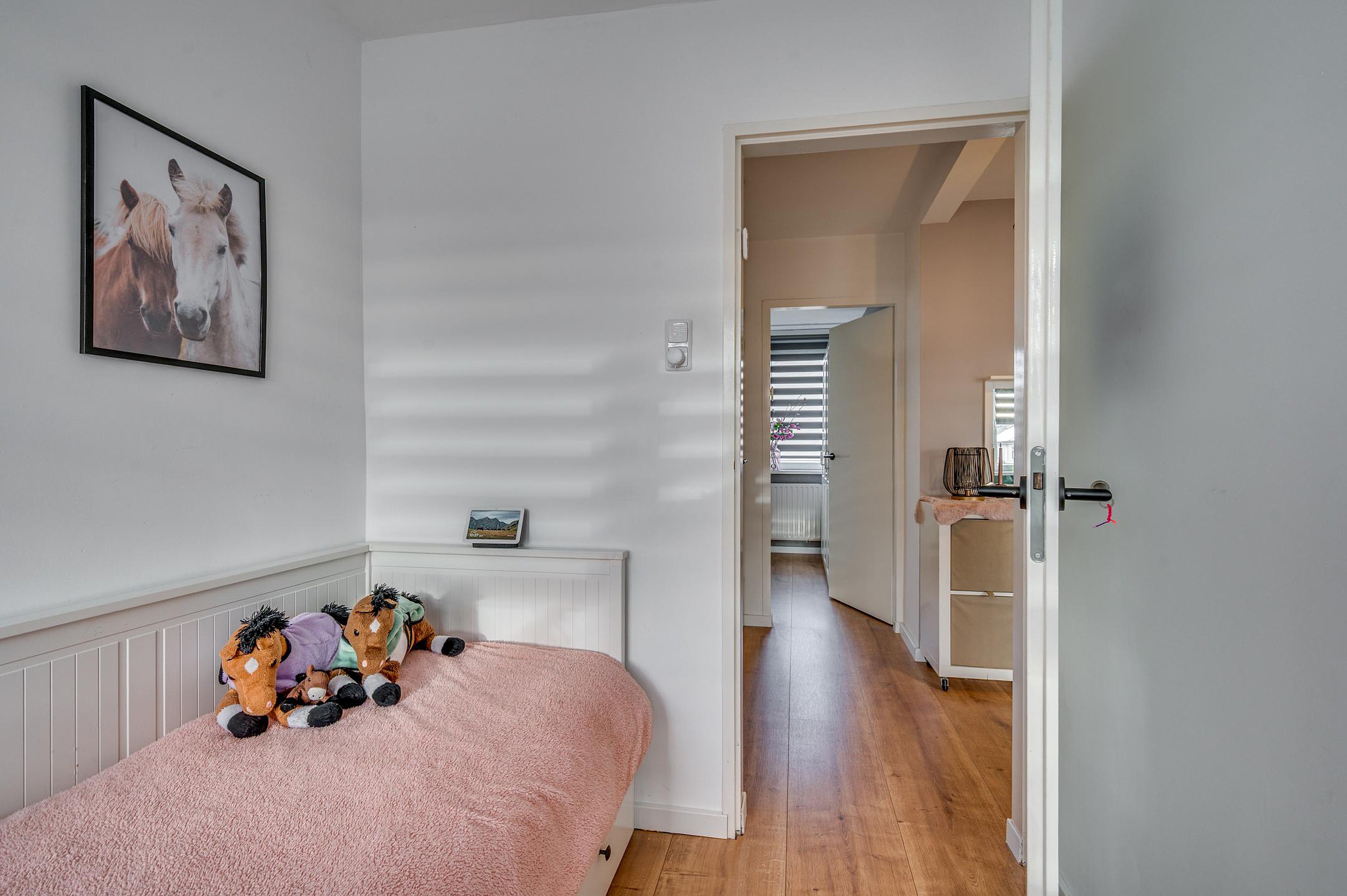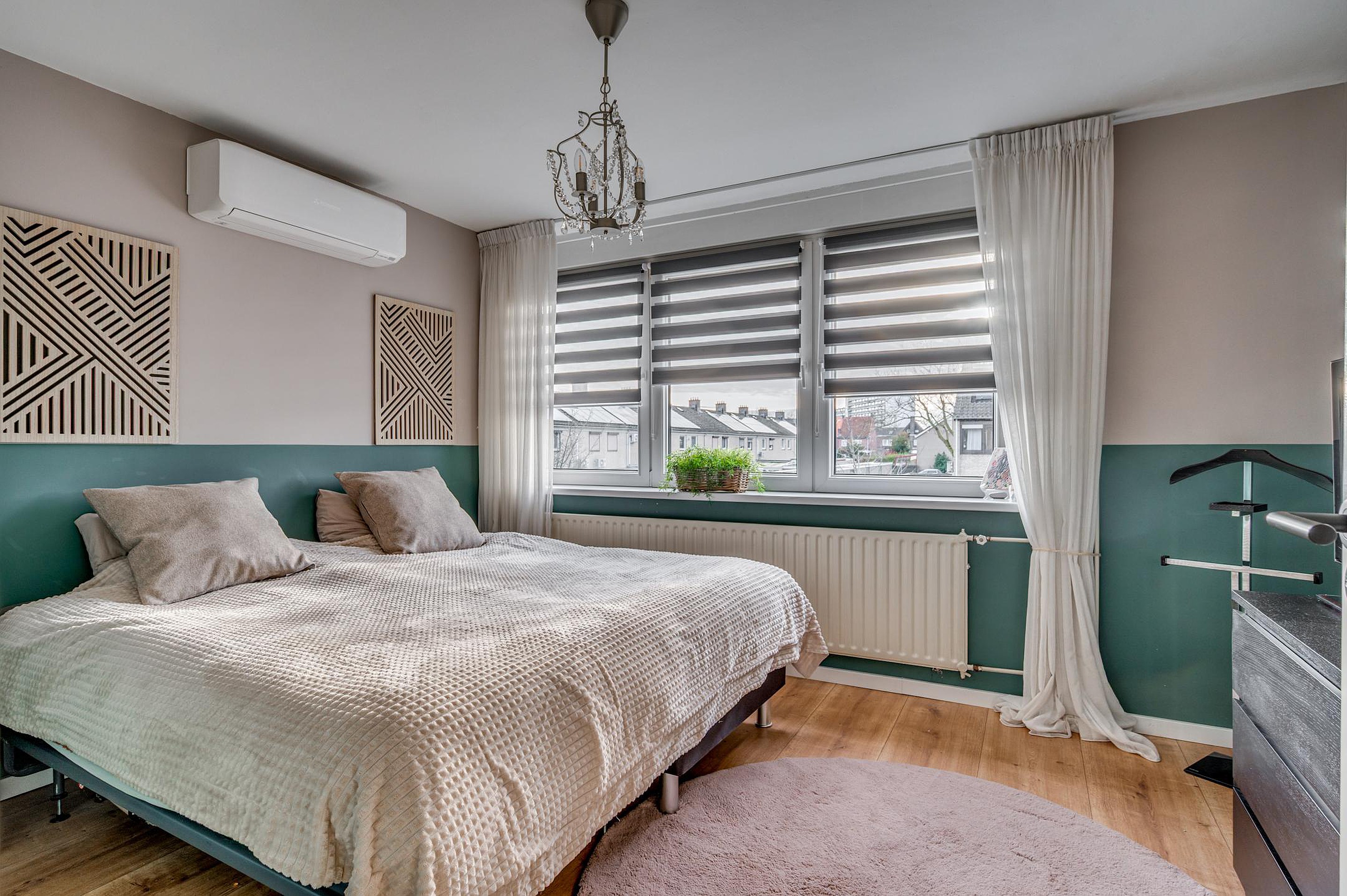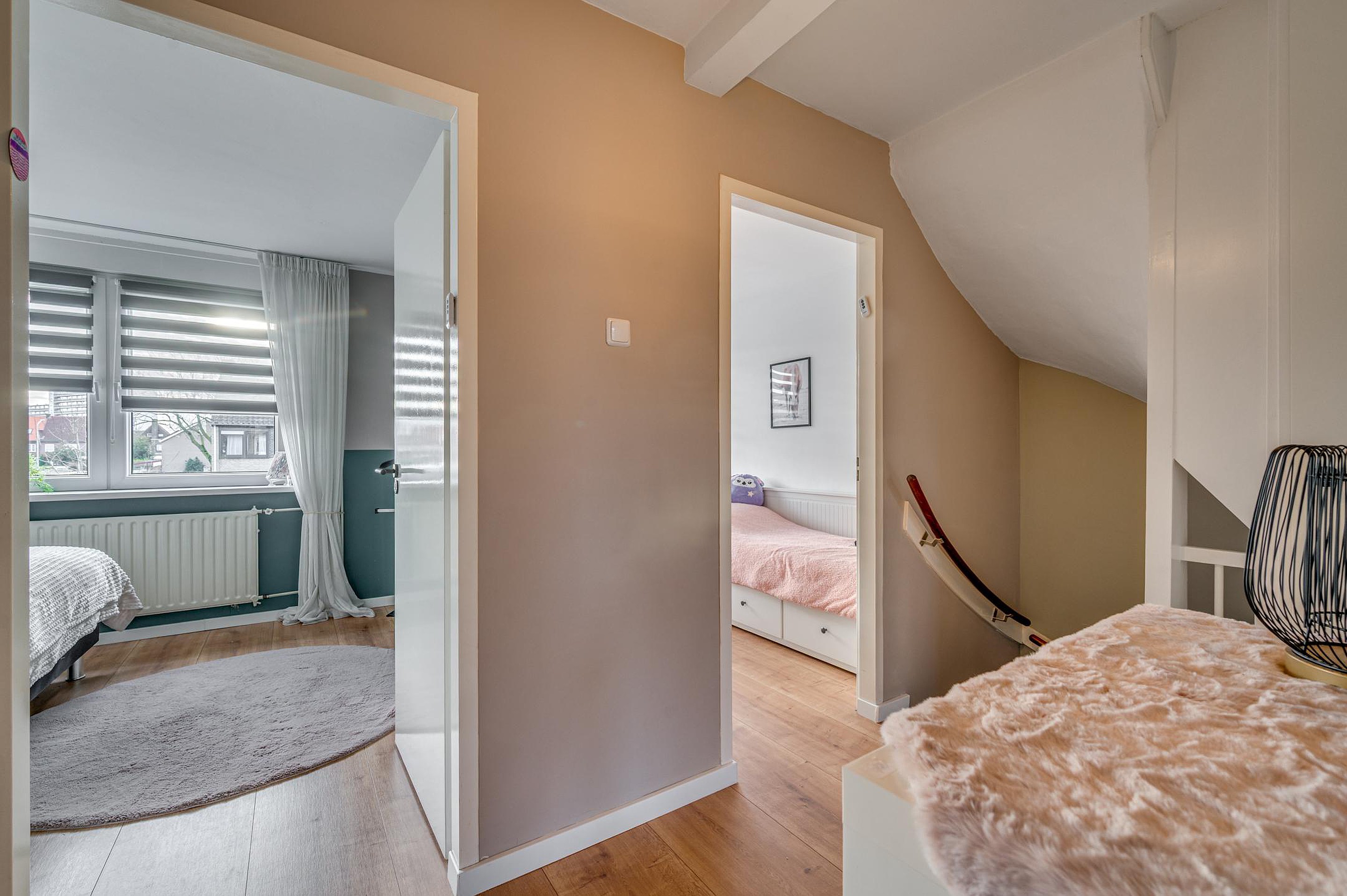 De overloop geeft toegang tot vier slaapkamers, stuk voor stuk praktisch ingedeeld en voorzien van moderne laminaatvloeren. Twee slaapkamers zijn uitgerust met airconditioning, wat zorgt voor extra comfort tijdens warme zomerdagen.
