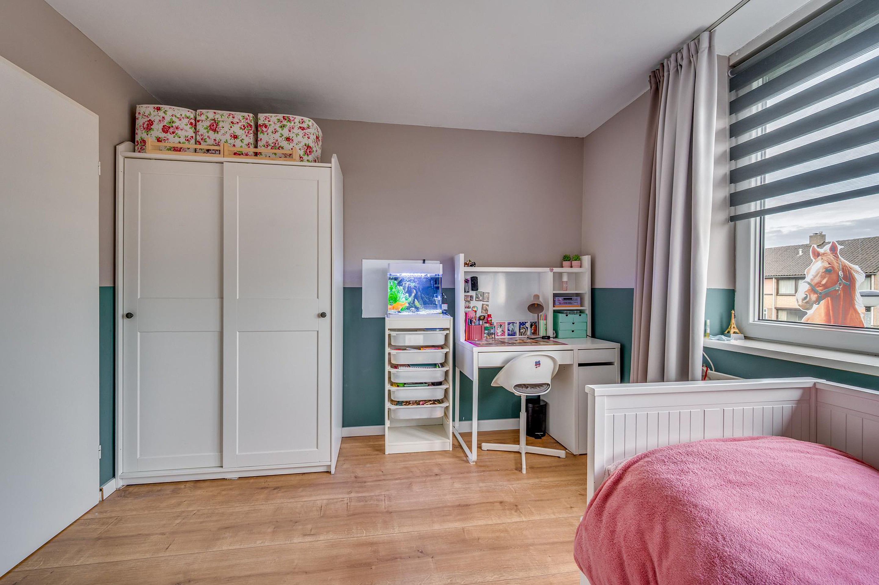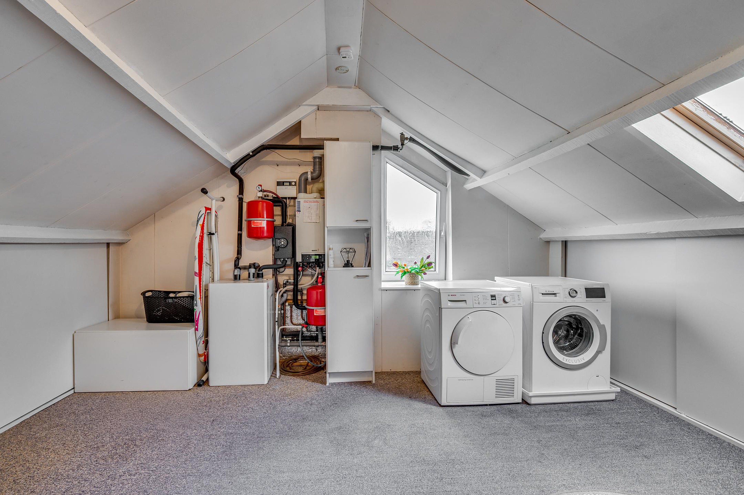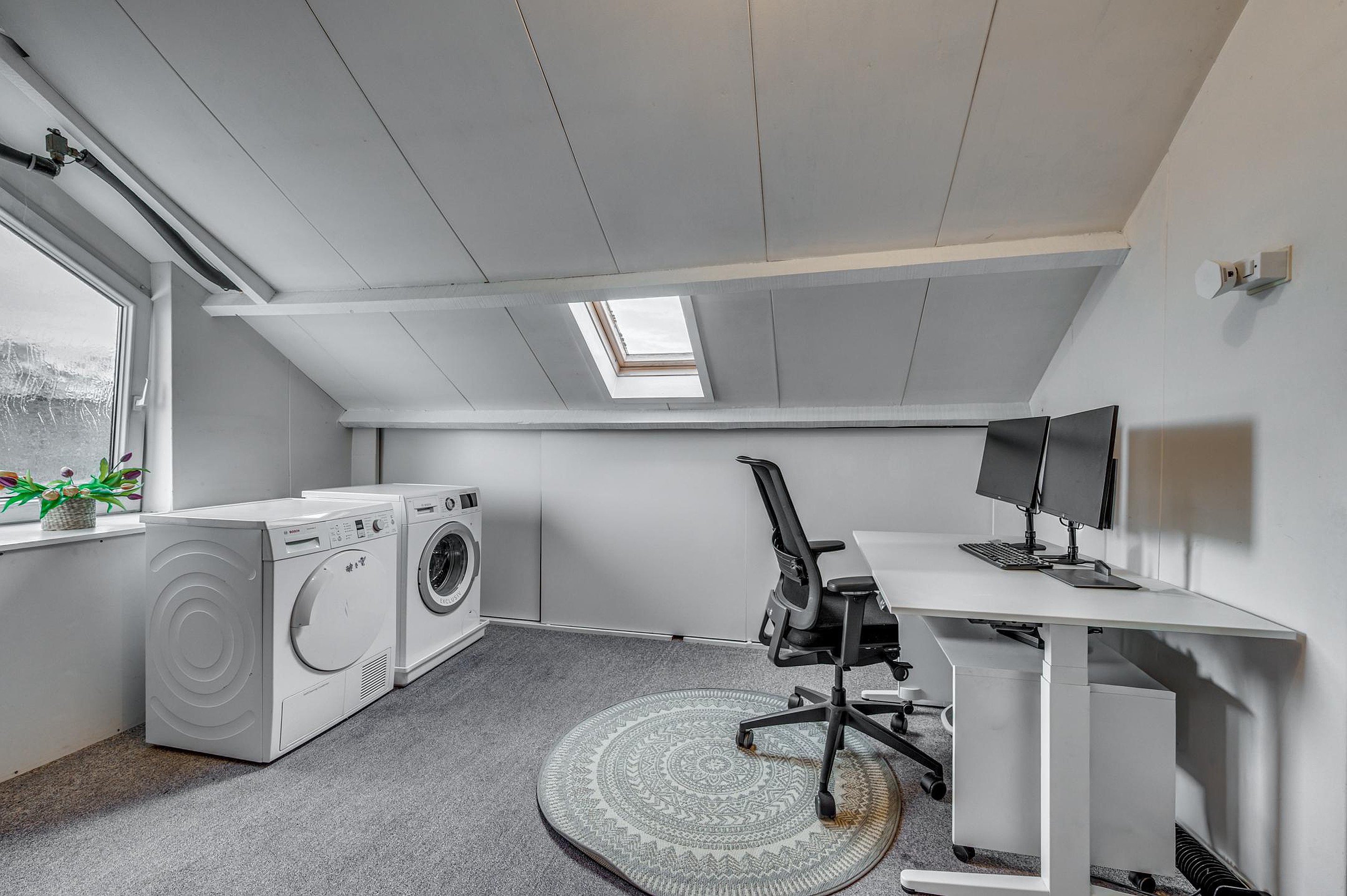 Op de tweede verdieping bevindt zich een overloop met bergruimte, een extra slaap-/werkkamer met dakraam en een C.V.-/wasruimte. Deze verdieping is ideaal als thuiswerkplek, hobbyruimte of logeerkamer.