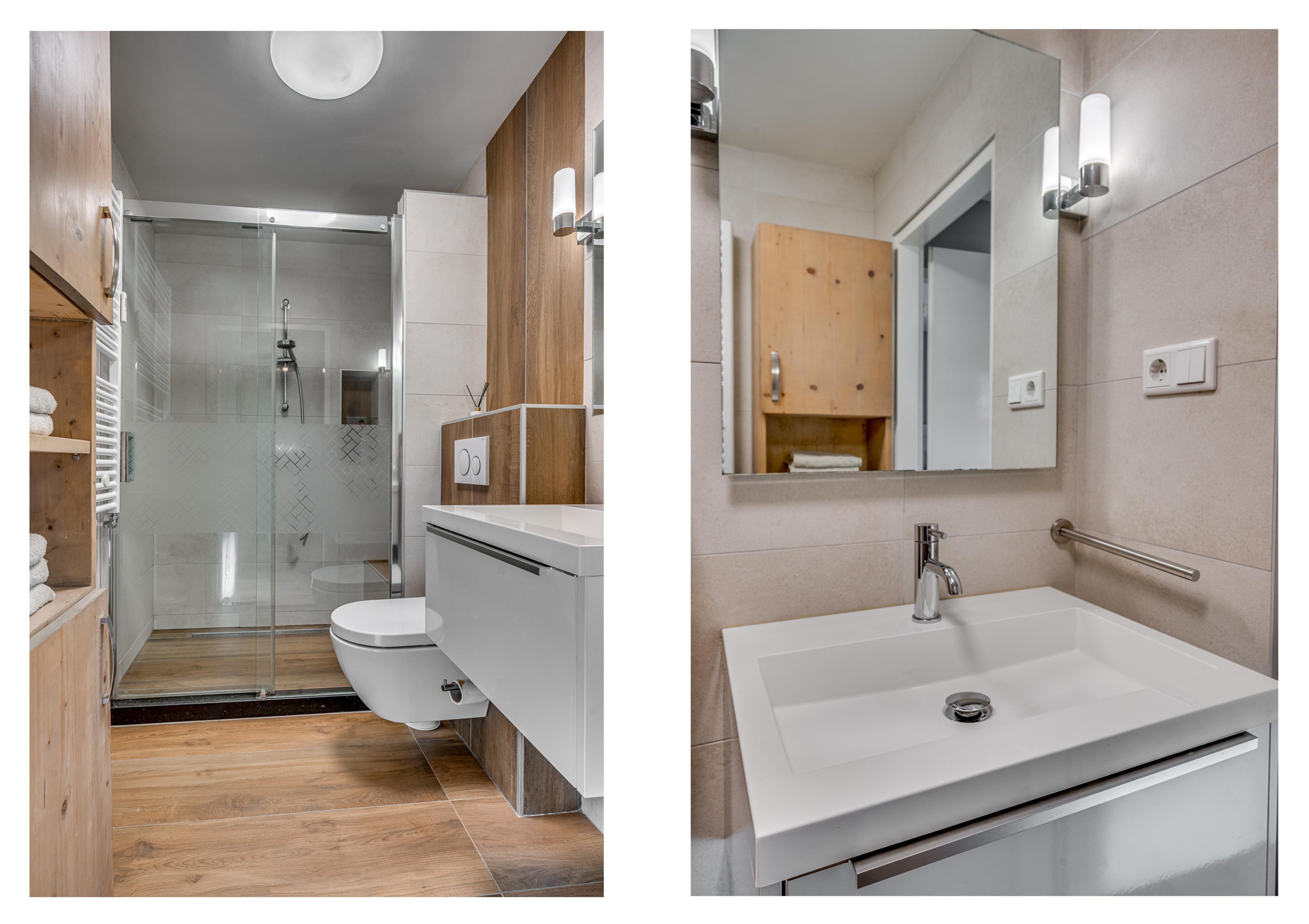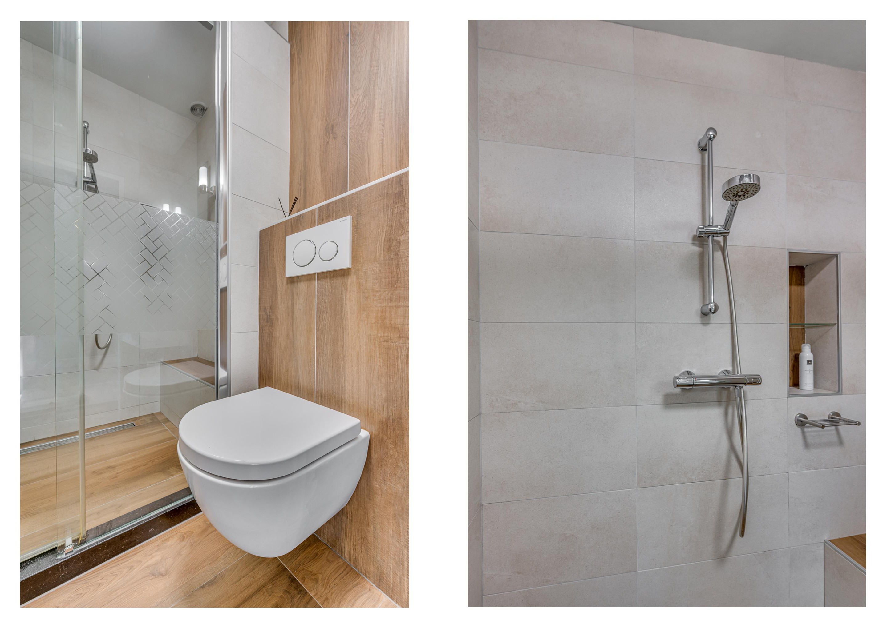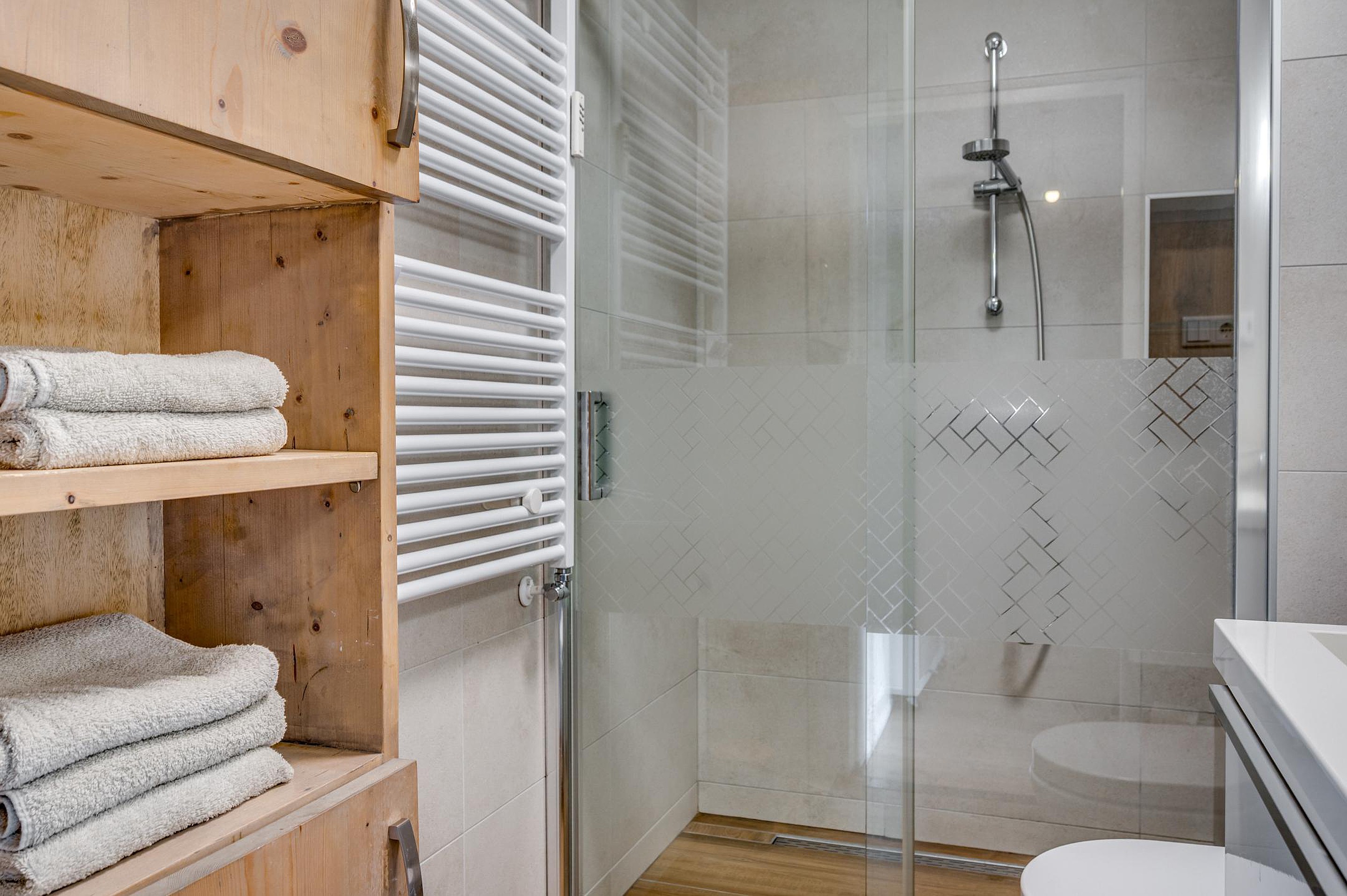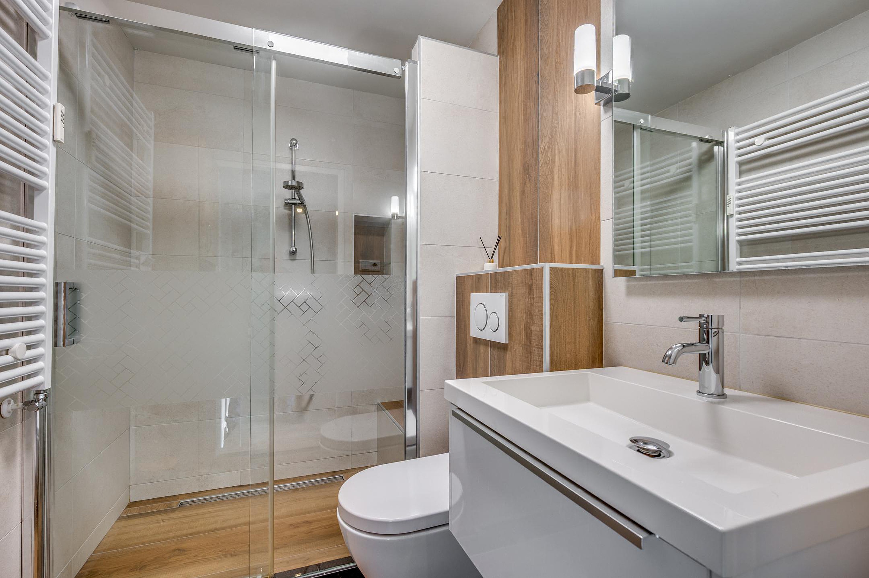 De moderne badkamer (2016) is compleet uitgevoerd met een inloopdouche, wastafelmeubel en een tweede toilet.