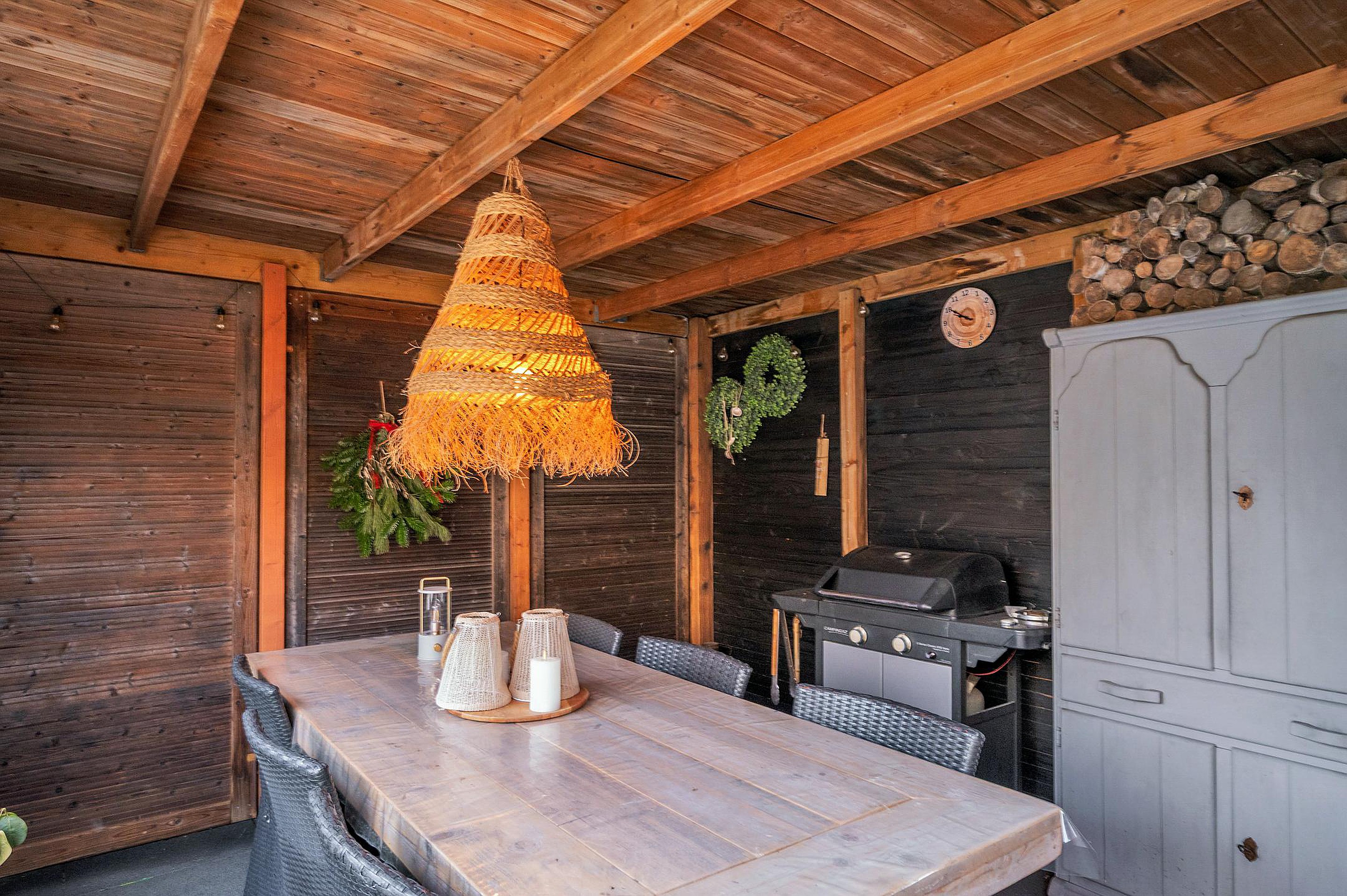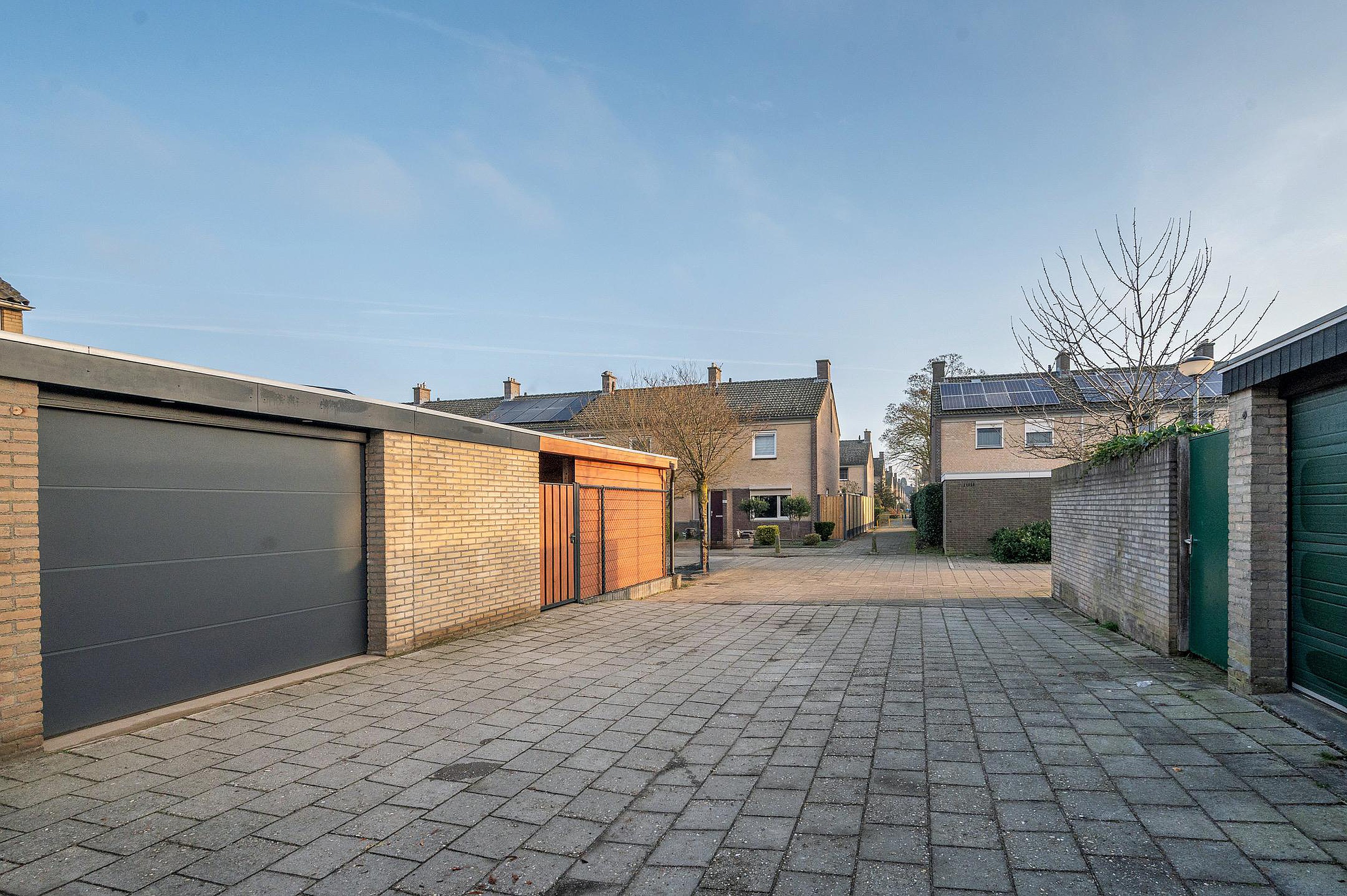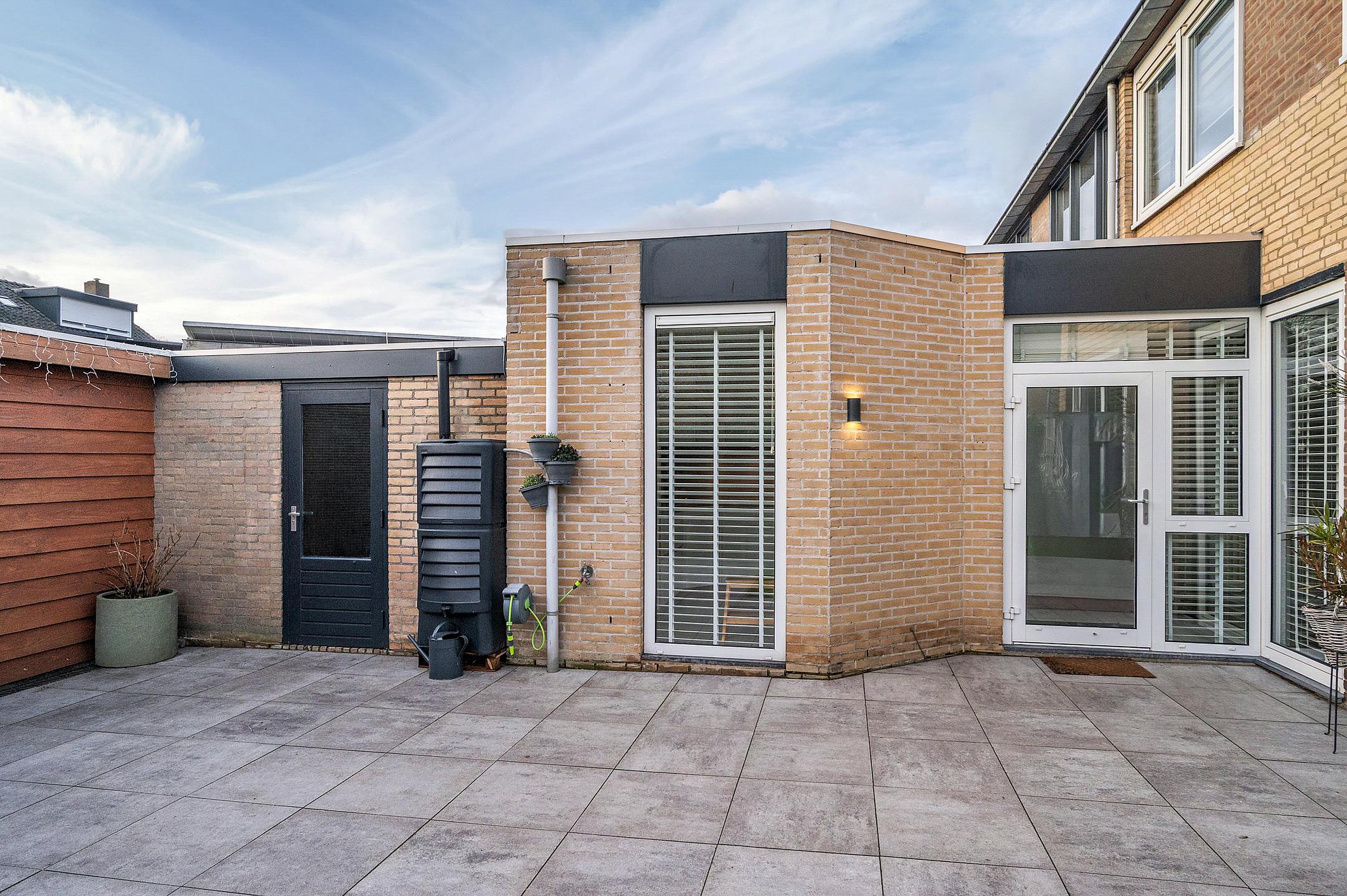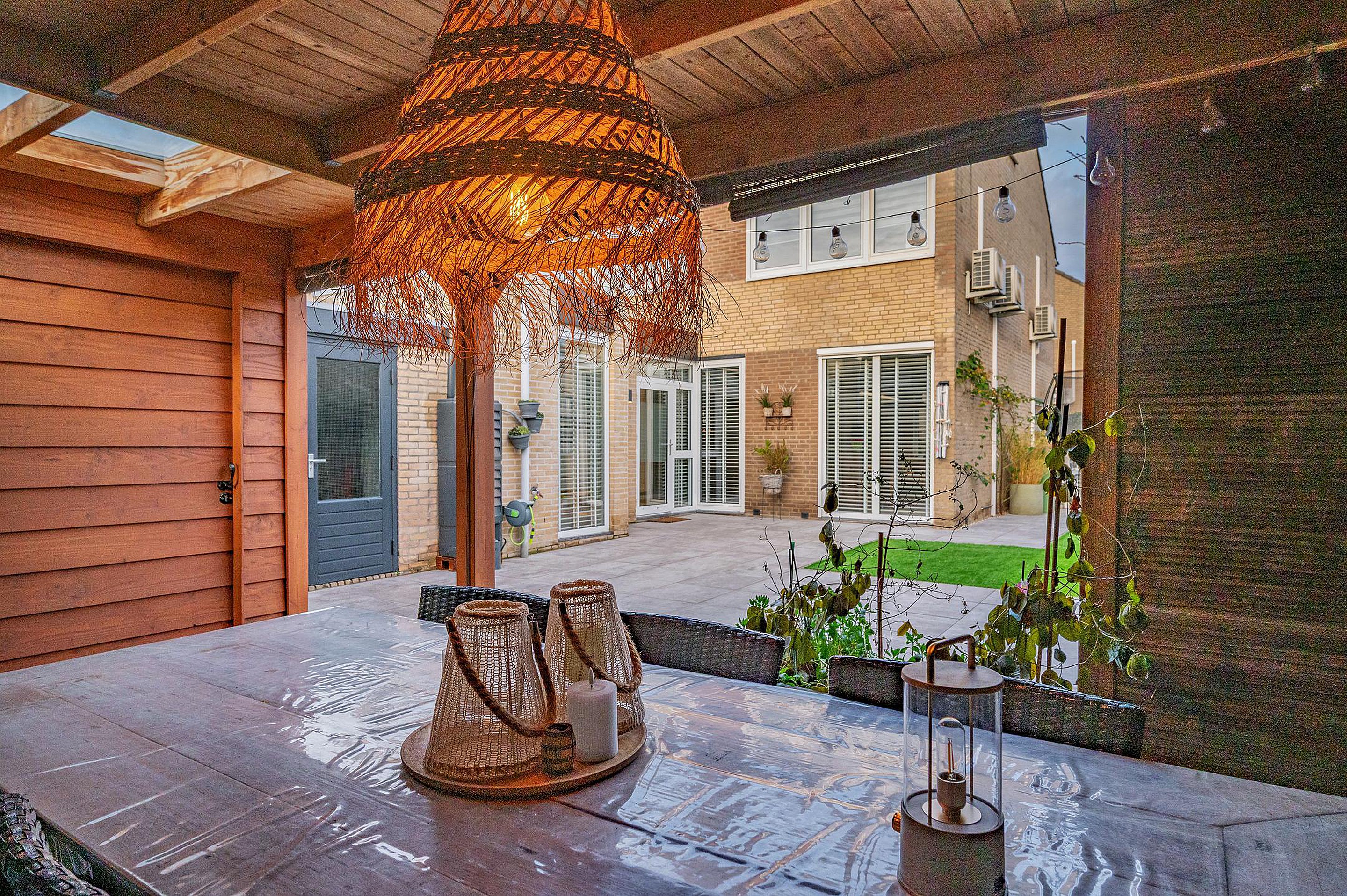 De recent aangelegde achtertuin, gelegen op het zuidoosten, biedt volop zon en privacy. In 2024 is hier een fraaie overkapping geplaatst, waardoor je vrijwel het hele jaar door van het buitenleven kunt genieten. Daarnaast beschikt de woning over een berging en garage met elektrische poort, ideaal voor het stallen van de auto, fietsen of extra opslag.