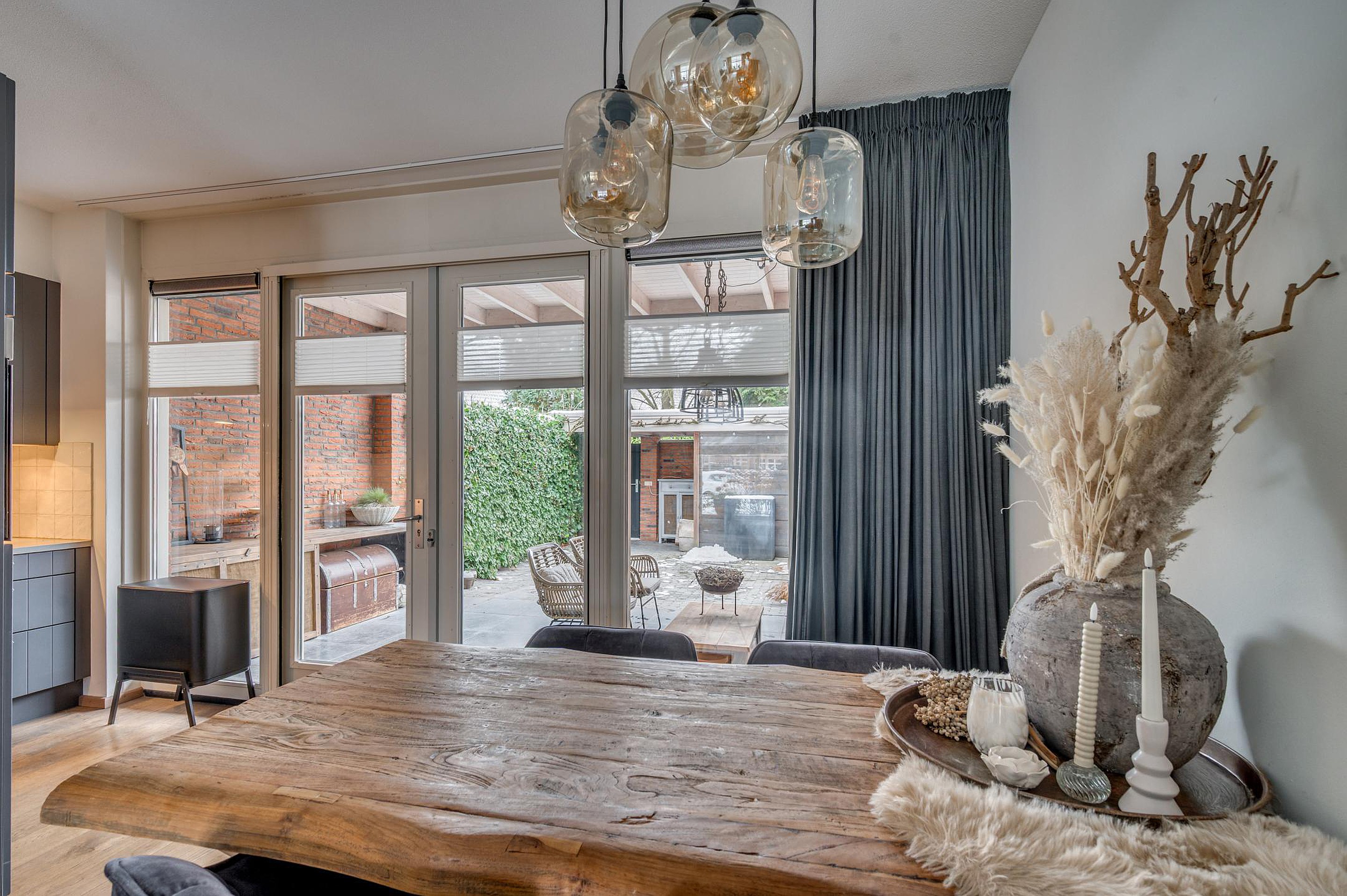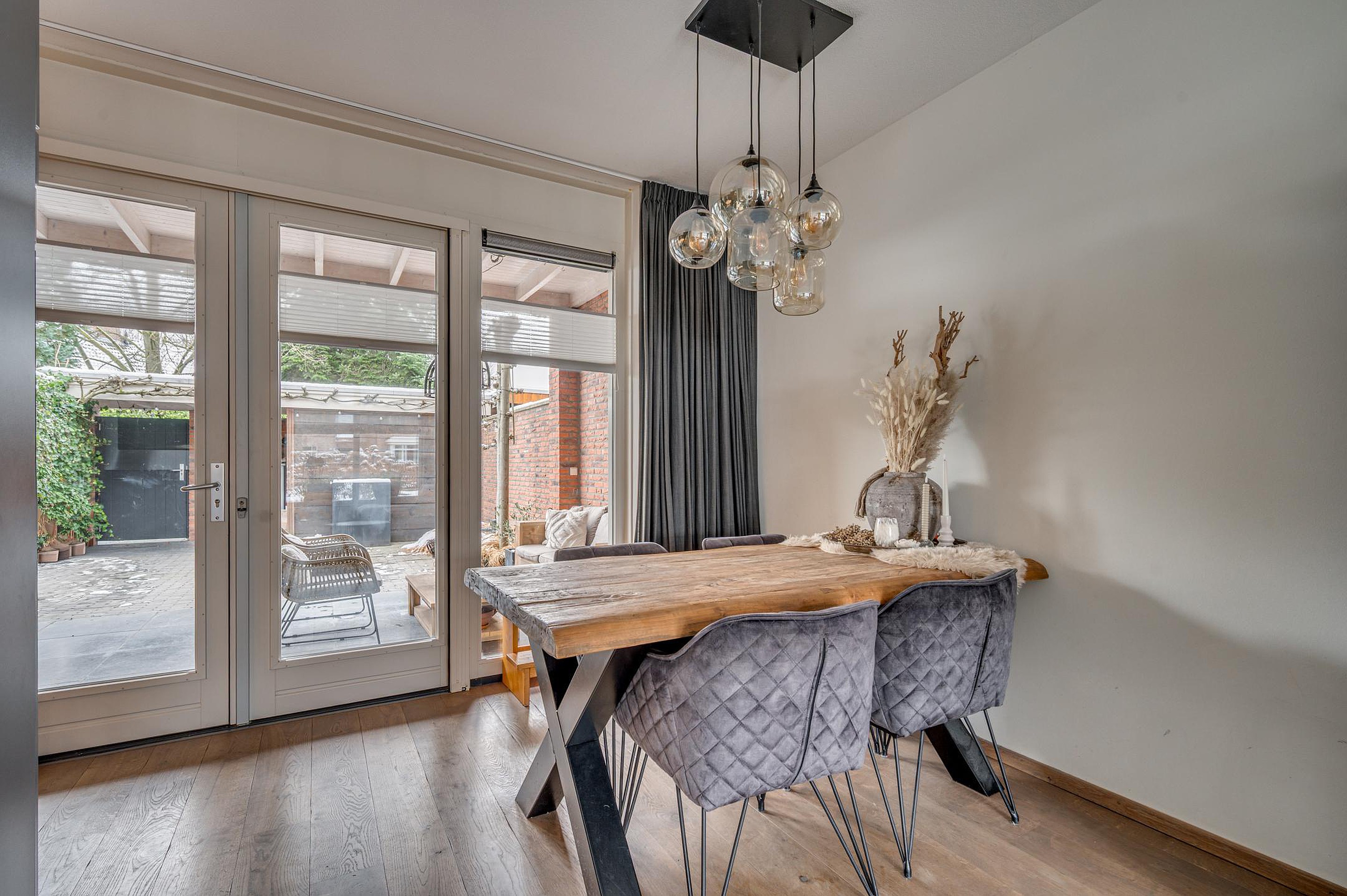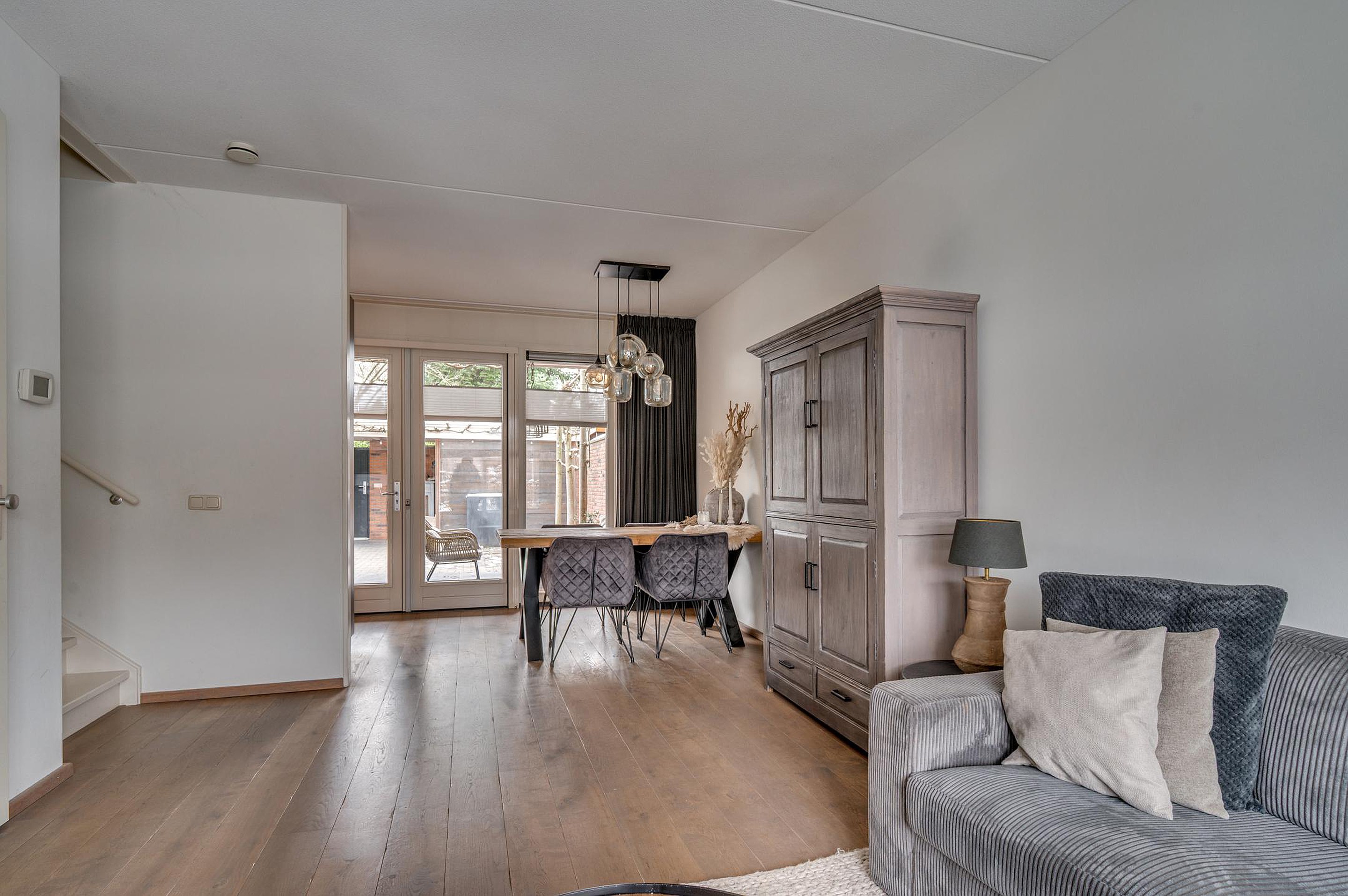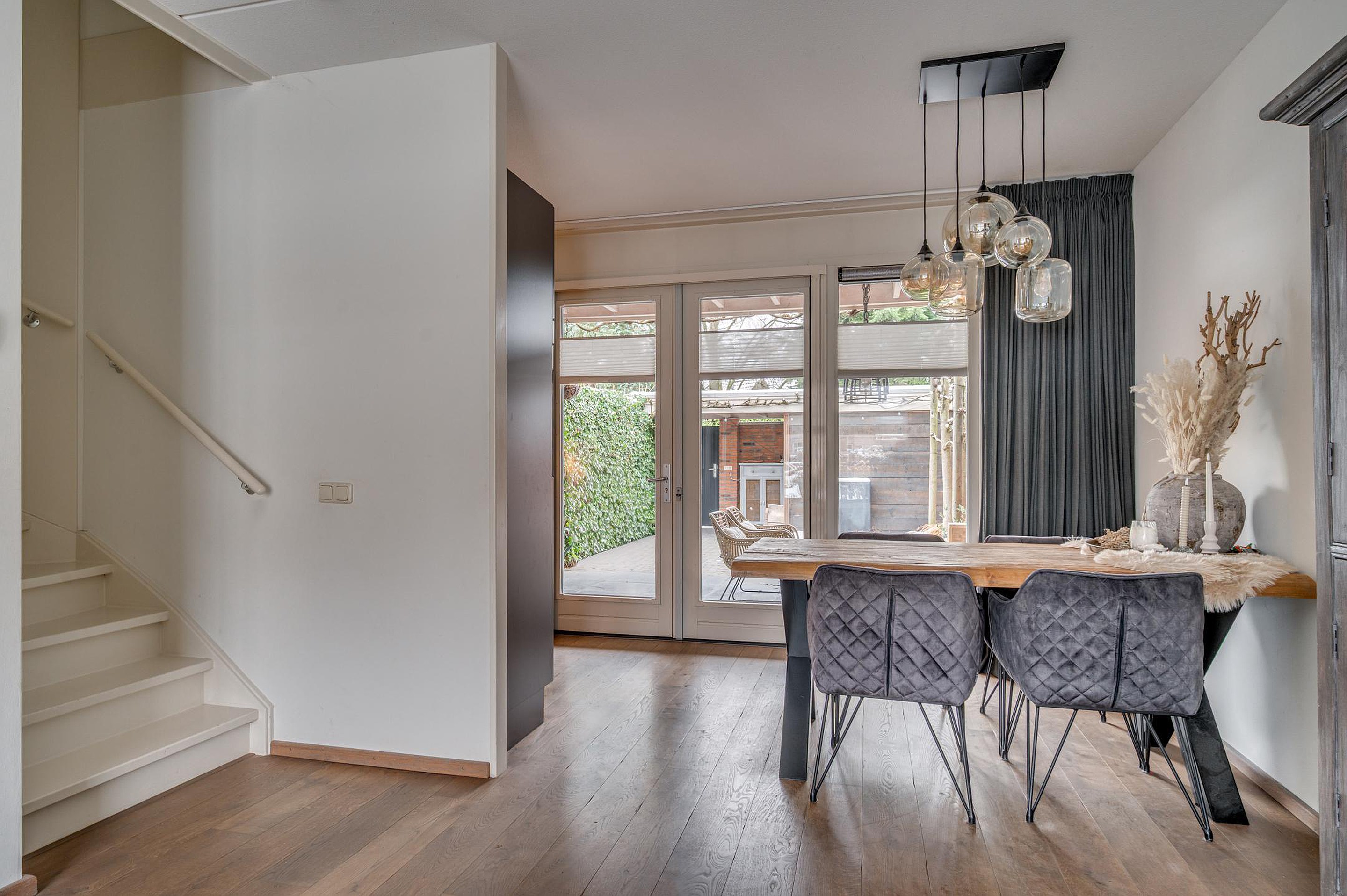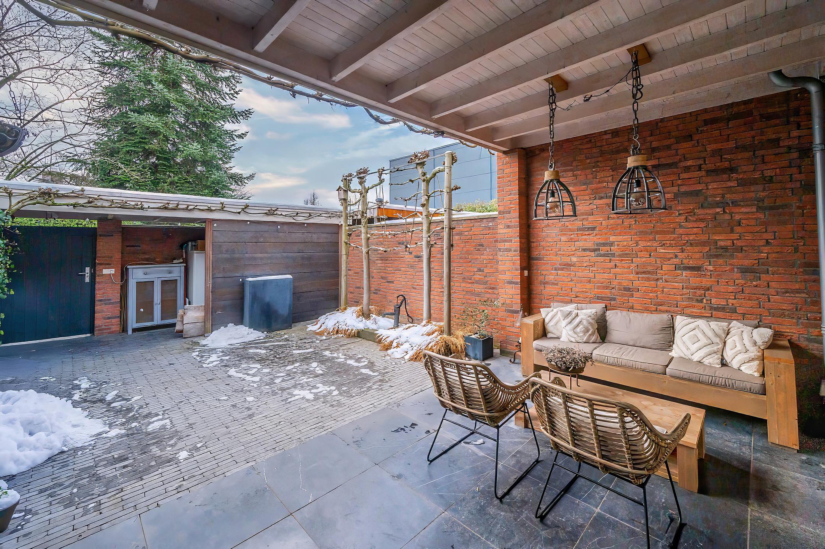 Vanuit de woonkamer is de fraai aangelegde achtertuin bereikbaar. De tuin is gelegen op het zuiden en beschikt over een gezellige en sfeervolle terrasoverkapping, waardoor je het hele jaar door van het buitenleven kunt genieten. Verder is er een berging/stalling aanwezig en een vrije achterom. Aan de voorzijde van de woning zijn diverse openbare parkeerplaatsen beschikbaar.
