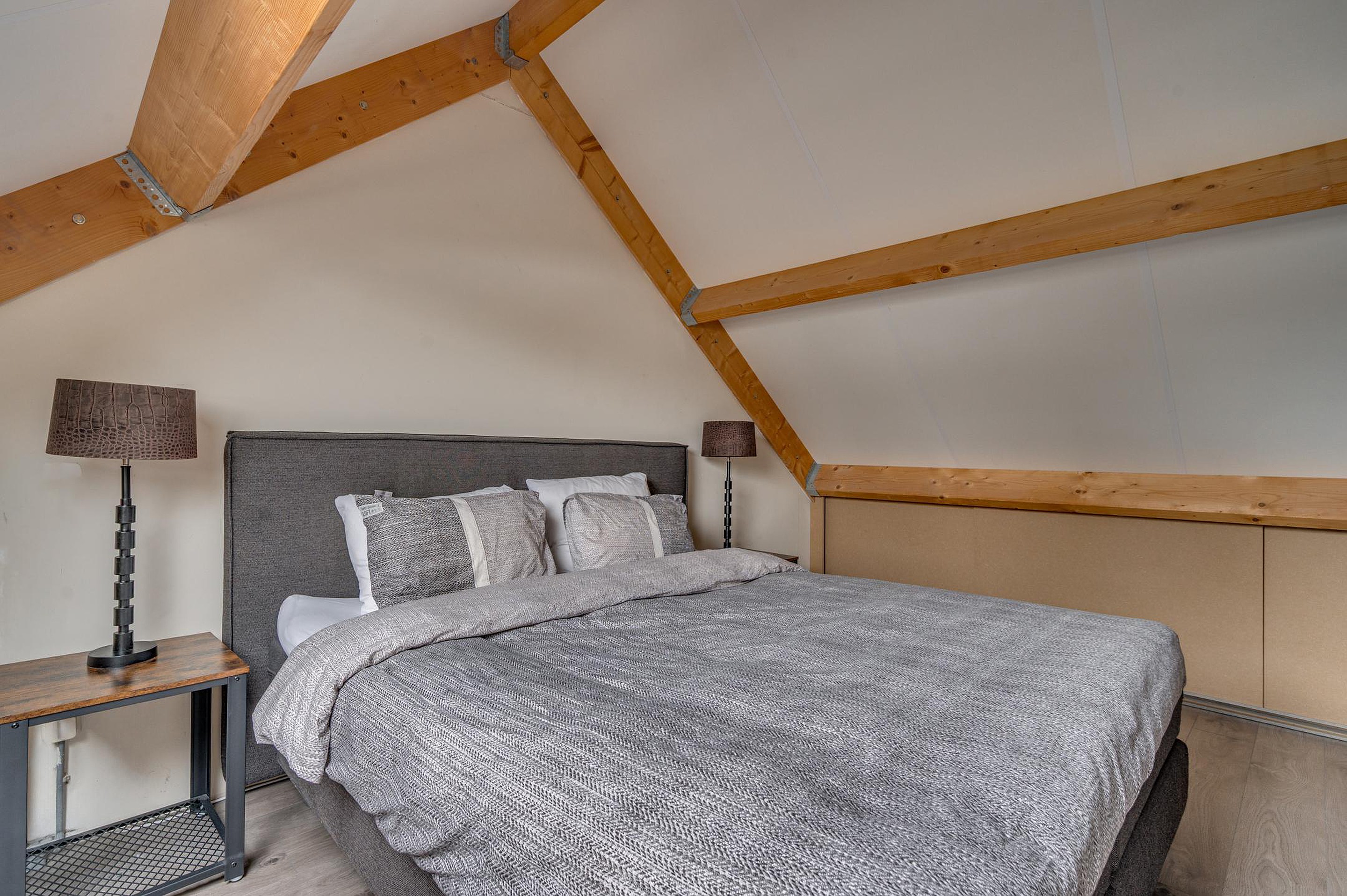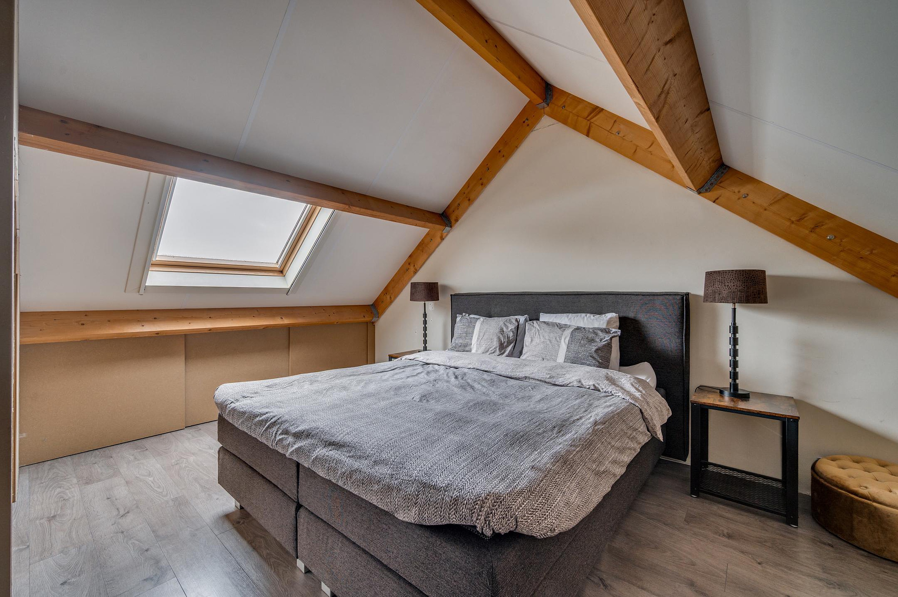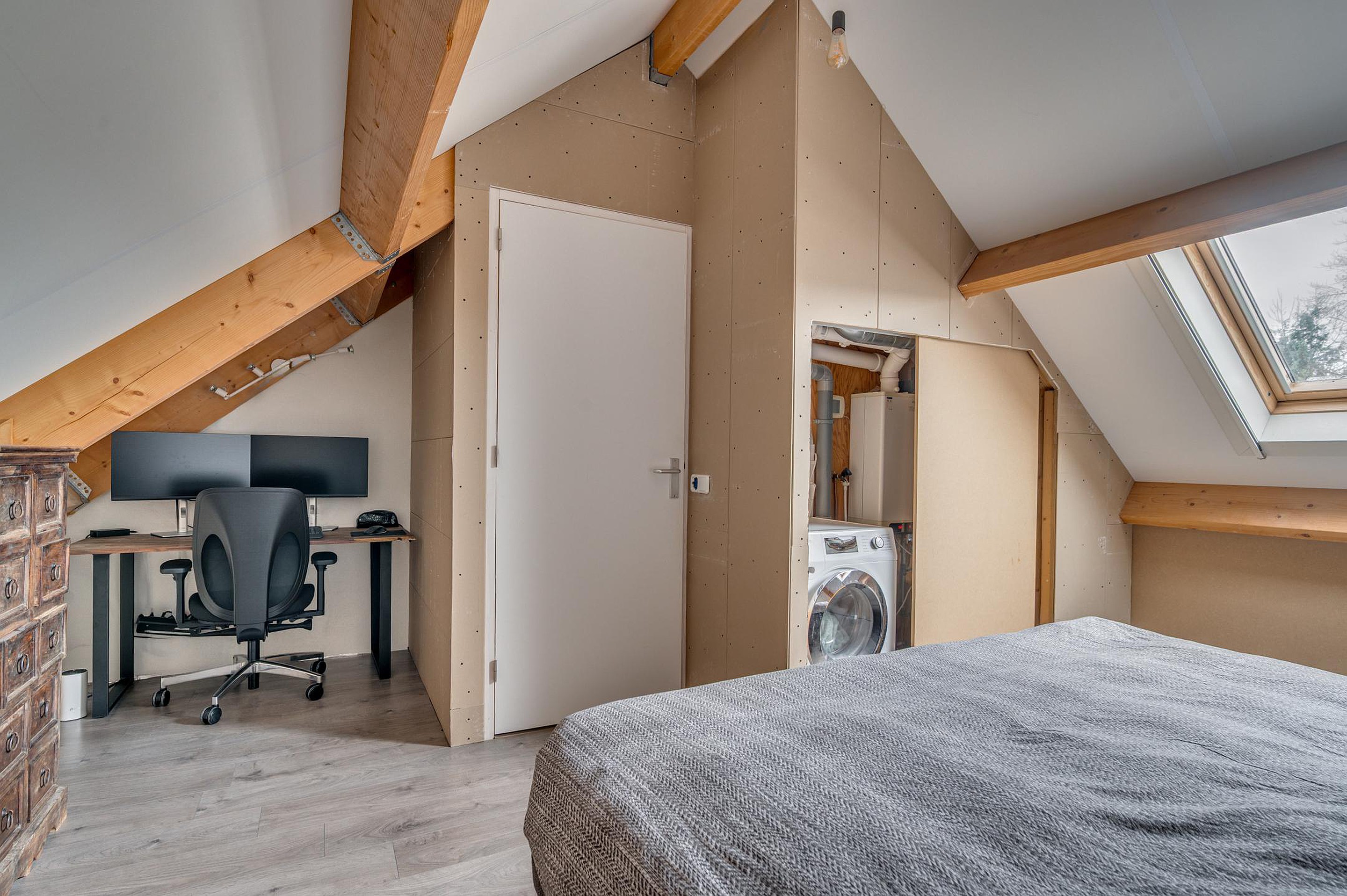 Via een vaste trap is de tweede verdieping bereikbaar. Hier bevindt zich een riante vierde slaapkamer met laminaatvloer en Velux dakraam. Daarnaast is er een separate werkruimte en een C.V.-/wasruimte.