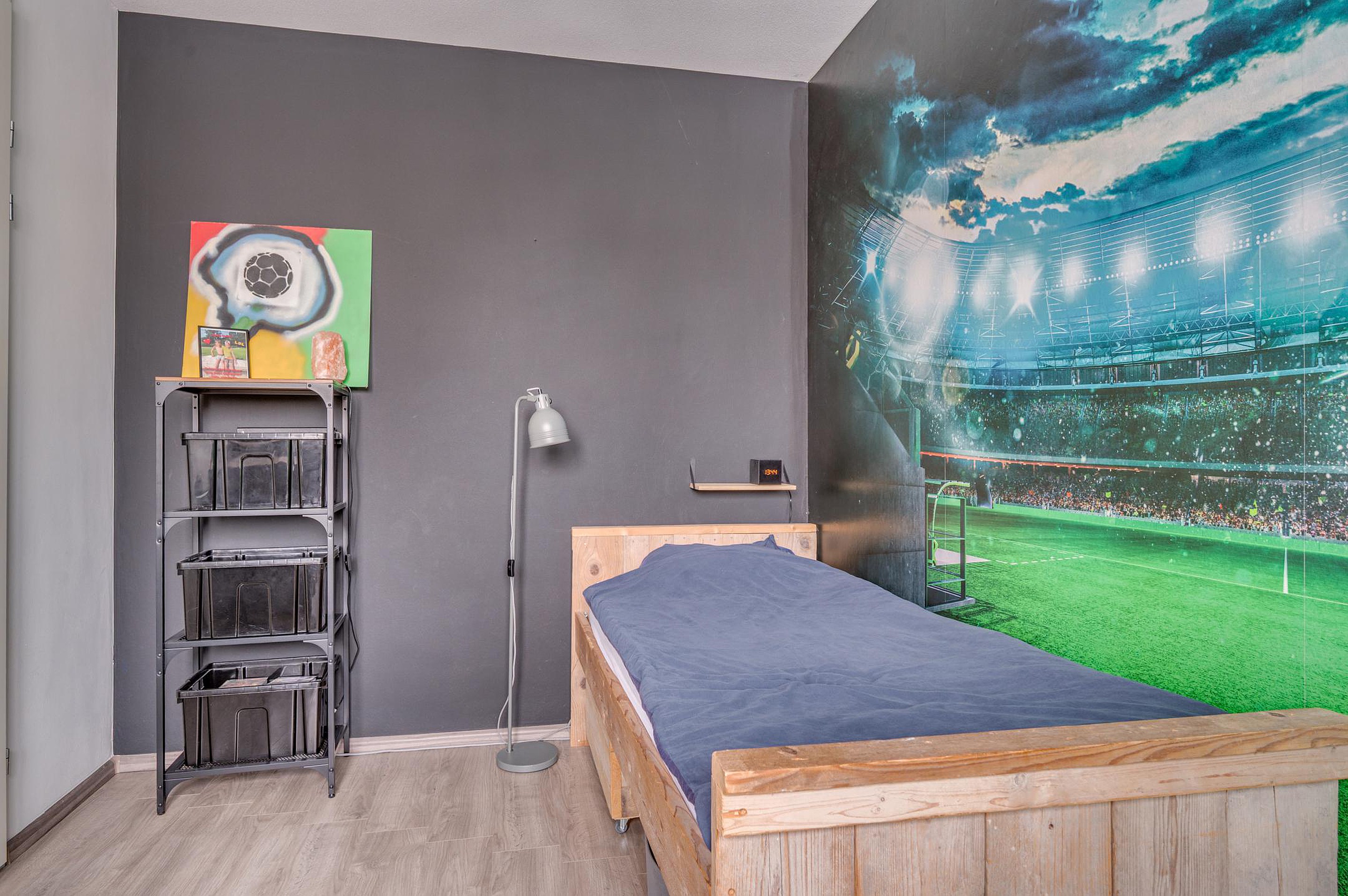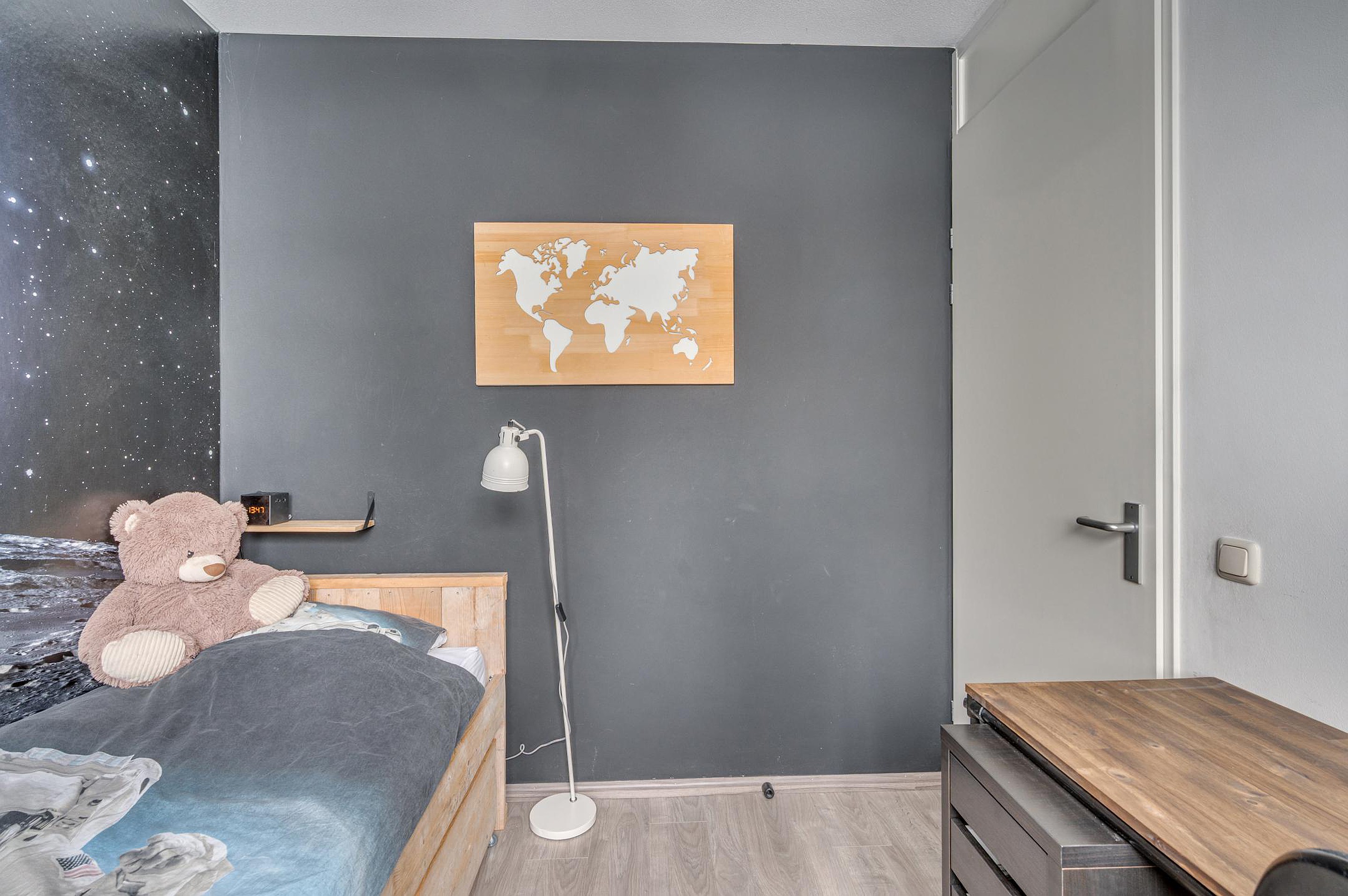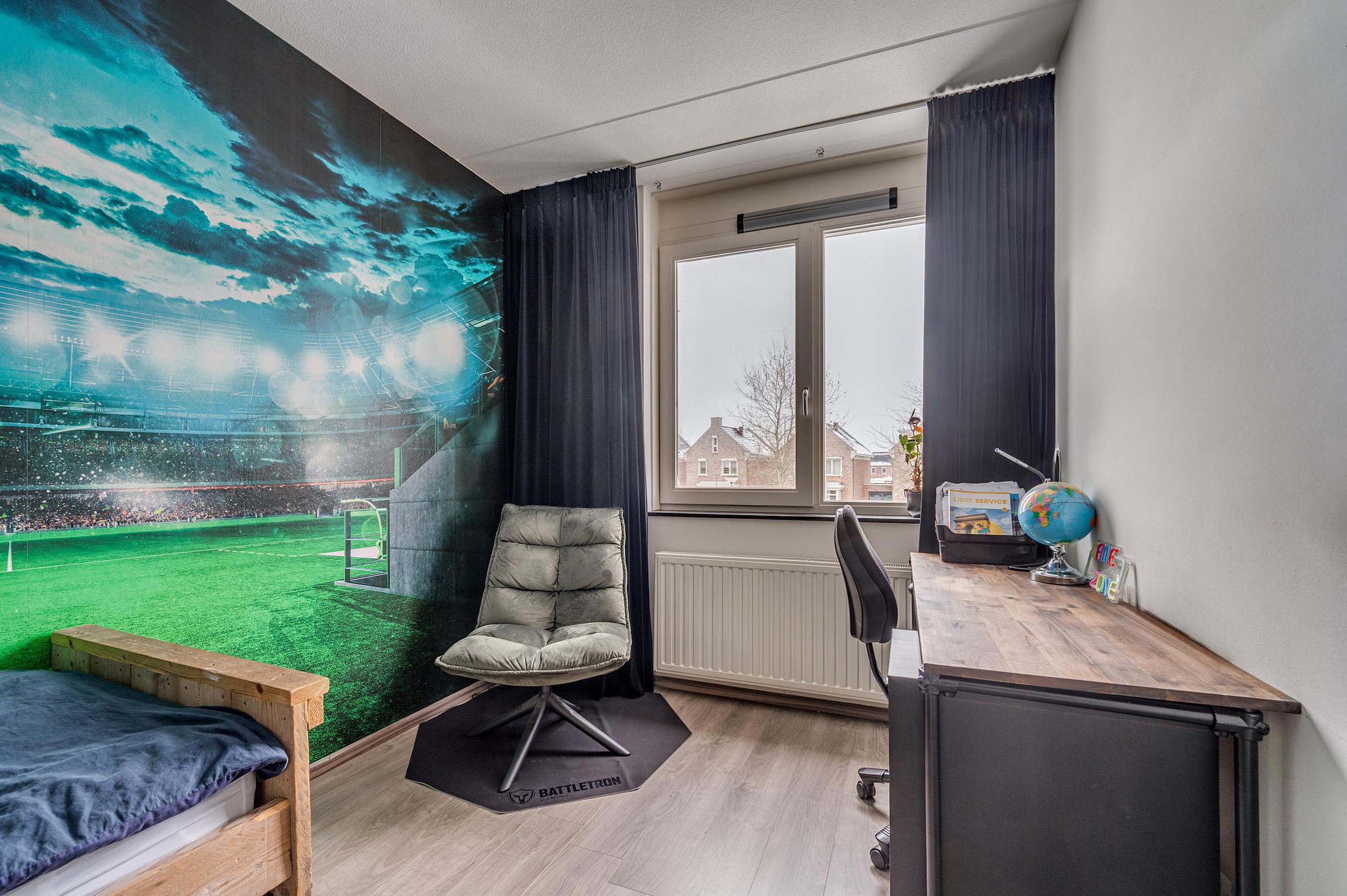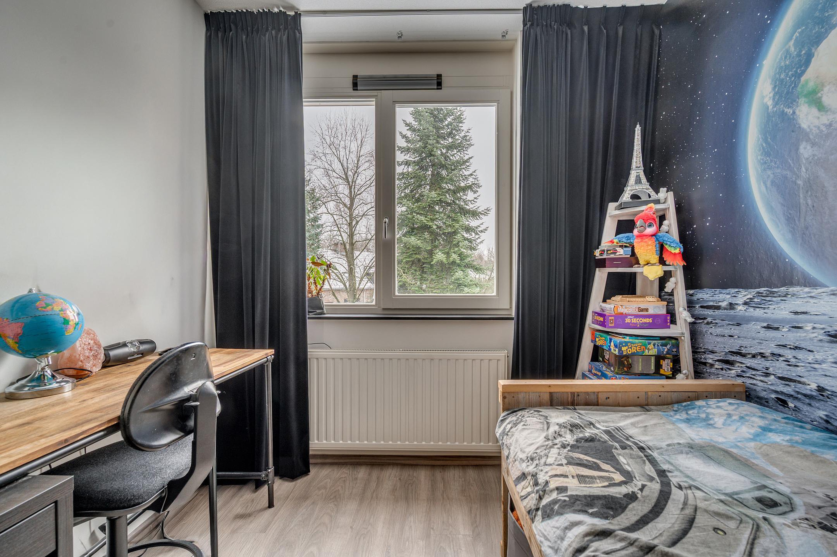 Via een vaste trap is de tweede verdieping bereikbaar. Hier bevindt zich een riante vierde slaapkamer met laminaatvloer en Velux dakraam. Daarnaast is er een separate werkruimte en een C.V.-/wasruimte.