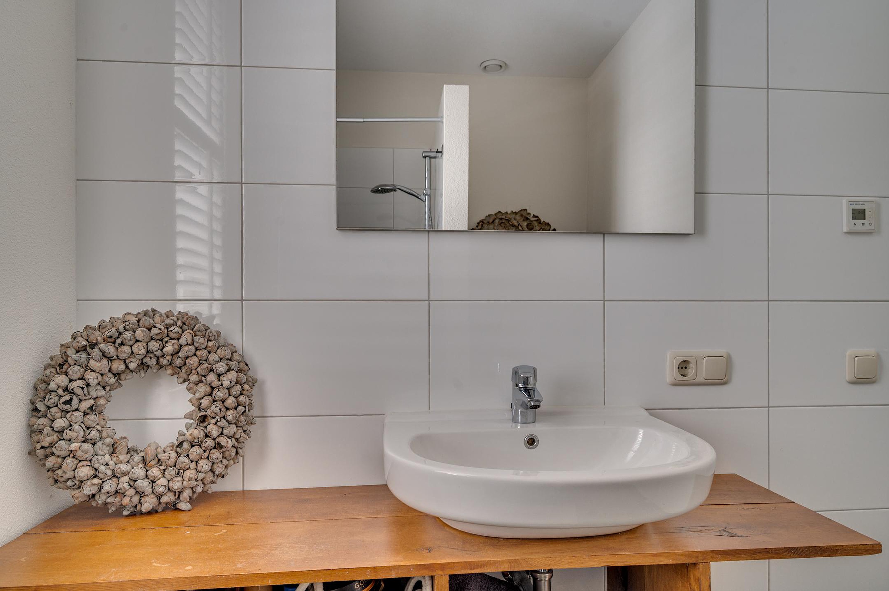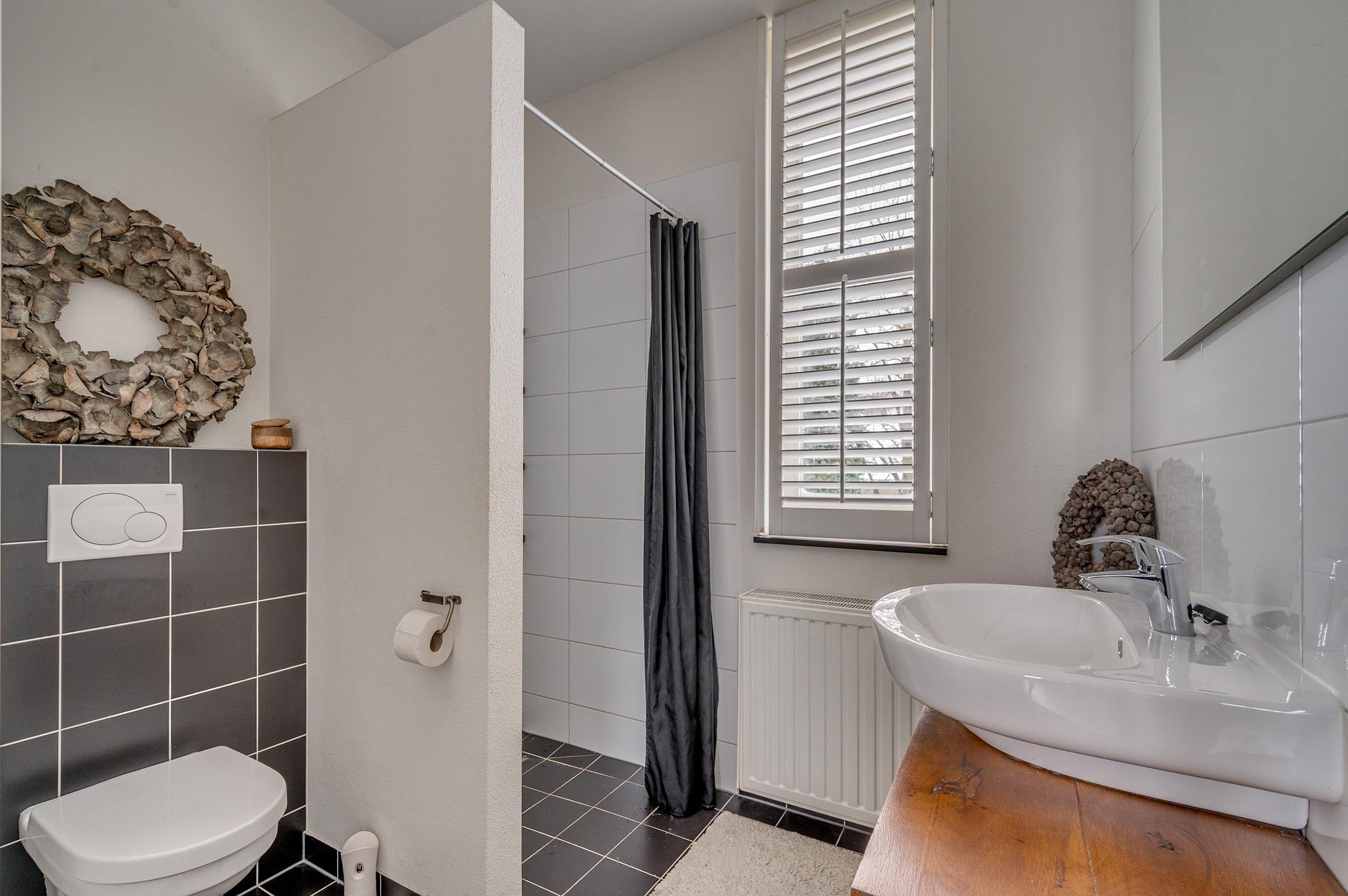 De overloop geeft toegang tot drie slaapkamers en de badkamer. Alle slaapkamers zijn voorzien van laminaatvloeren. De moderne badkamer is ingericht met een inloopdouche, wastafel en een tweede toilet.