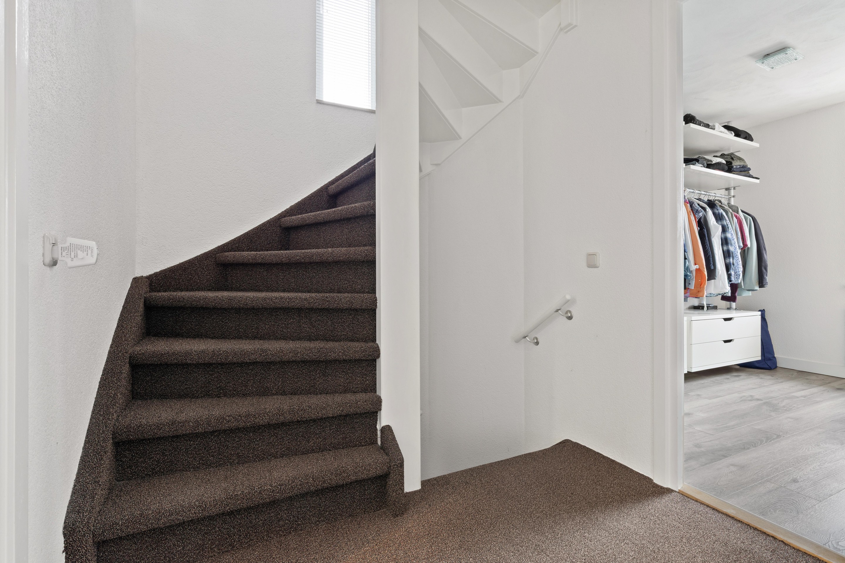 Via een vaste trap is de zolderverdieping bereikbaar. Op de overloop (ca. 6,5m2) bevinden zich de omvormer voor de zonnepanelen, de mechanische ventilatie-unit en extra aansluitingen voor wasapparatuur. In een aparte bergruimte (ca. 2,5m2) zijn de cv-ketel (Remeha, 2017) en de hybride warmtepomp (2023) geplaatst.