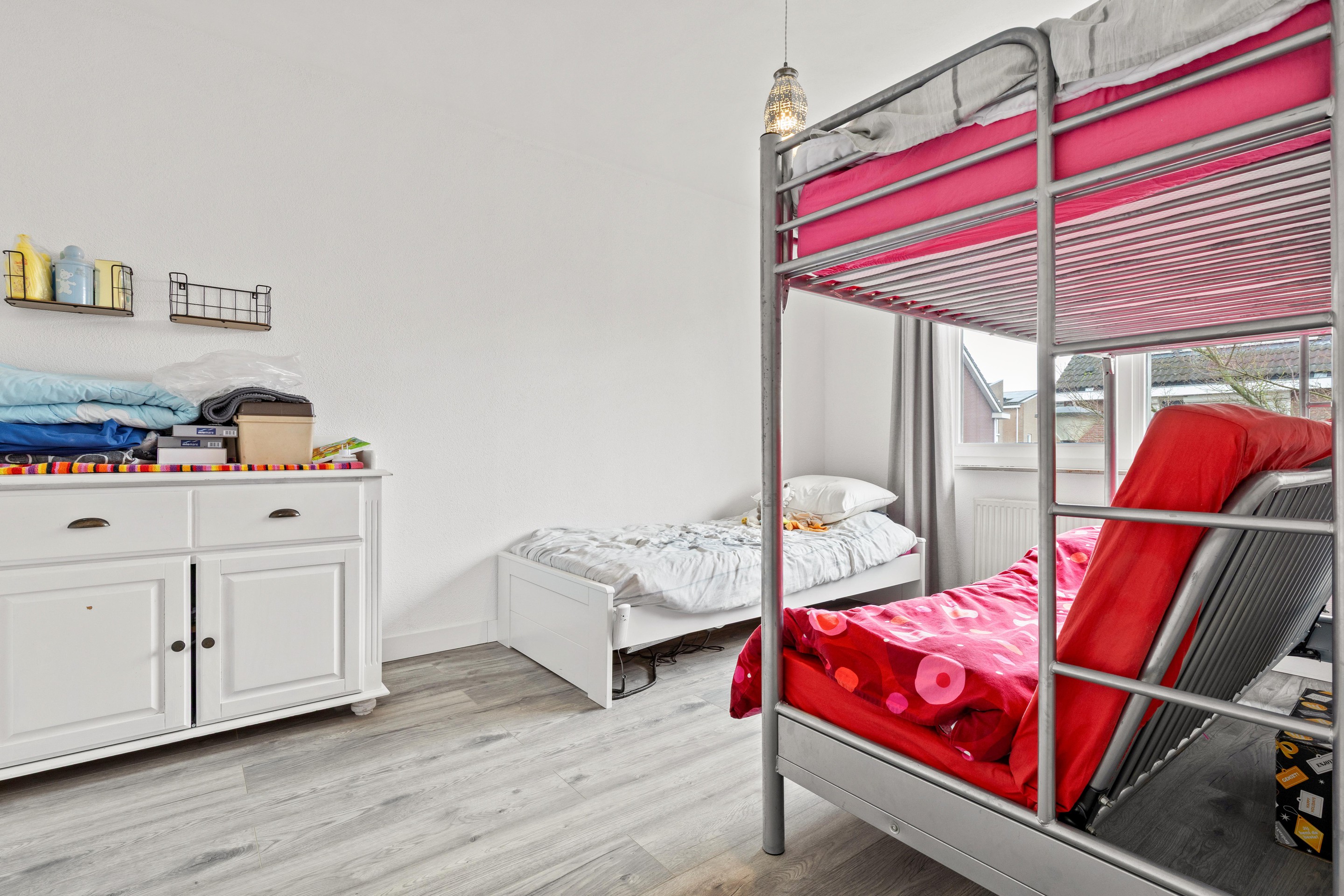 De overloop biedt toegang tot drie ruime en lichte slaapkamers (ca. 7, 12,5 en 12,5m2), allen voorzien van een moderne laminaatvloer. Ook op de overloop is een airco aanwezig voor extra comfort.