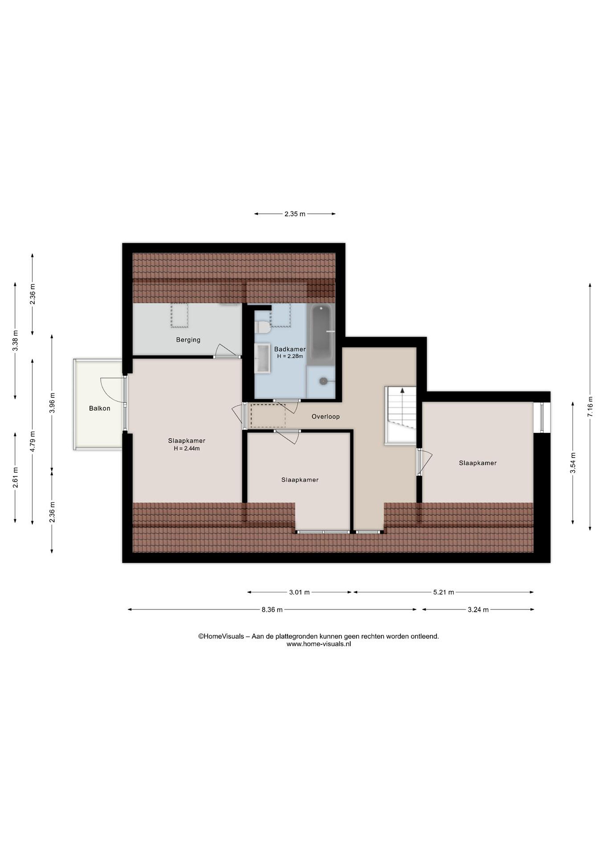 Indeling: 3 slaapkamers, grote inloopkast en royale badkamer.