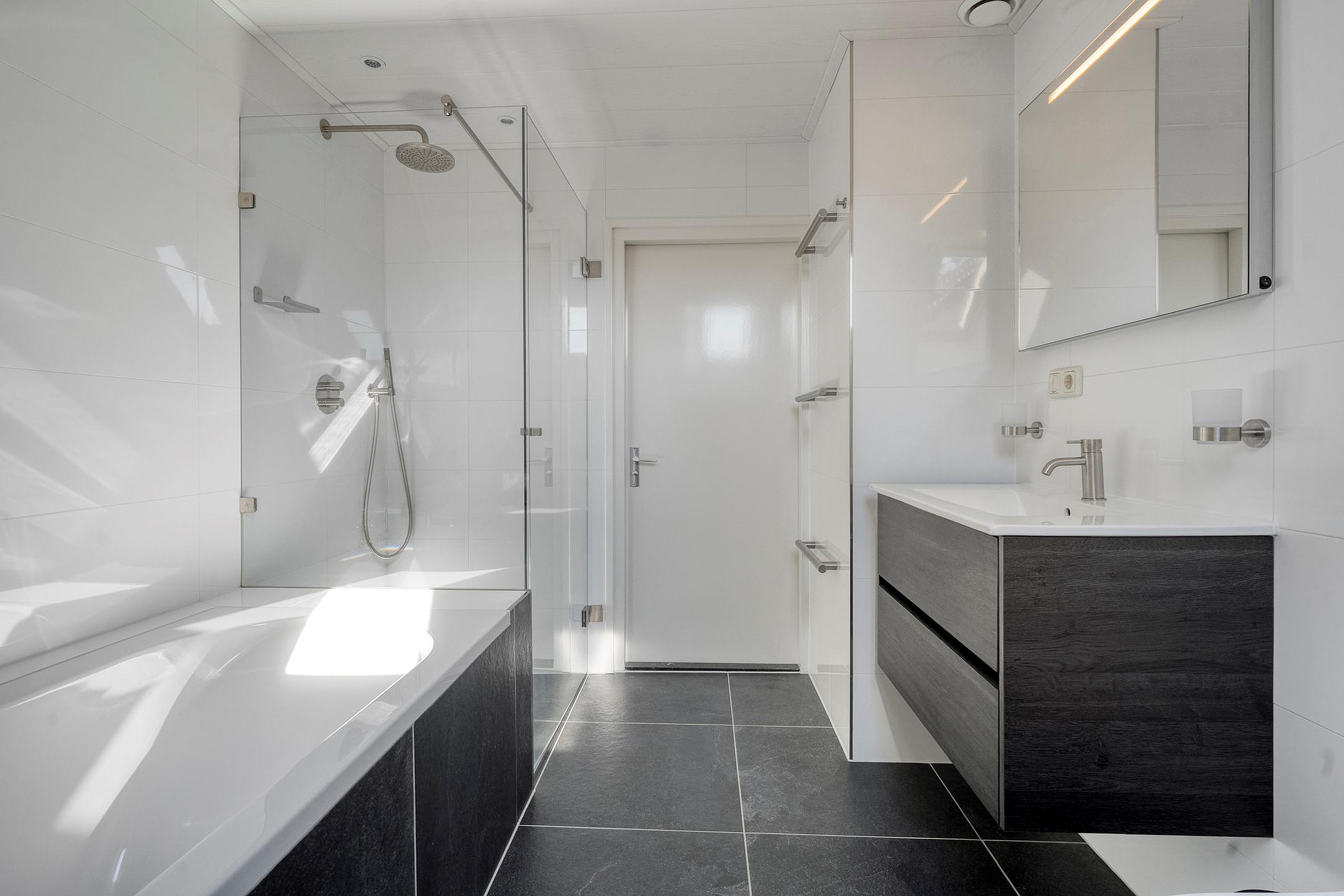 De bovenverdieping zal u positief verrassen. Hier treft u drie goed bemeten slaapkamers aan, waarvan de hoofdslaapkamer is voorzien van een zeer riante inloopkast – een droom voor iedere modeliefhebber. De badkamer is royaal opgezet, modern uitgevoerd en vormt een heerlijke plek om te ontspannen.