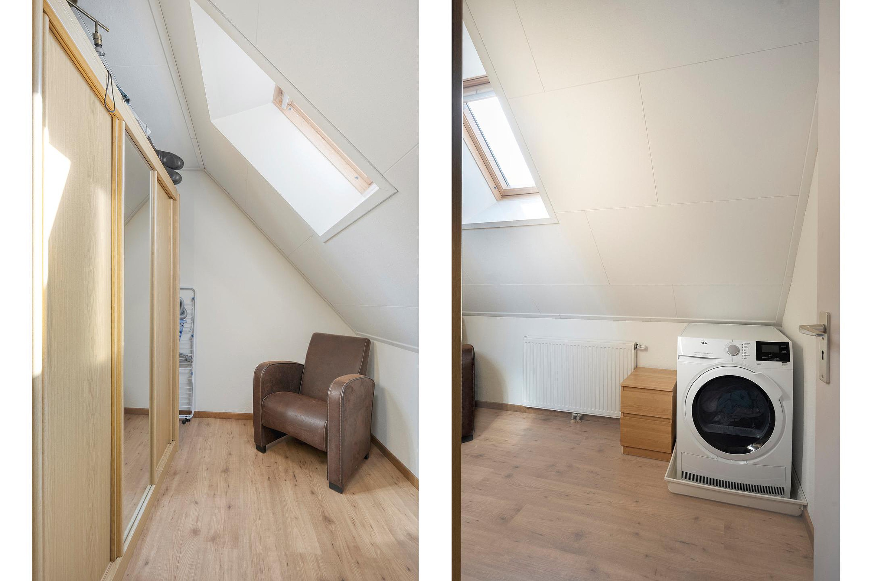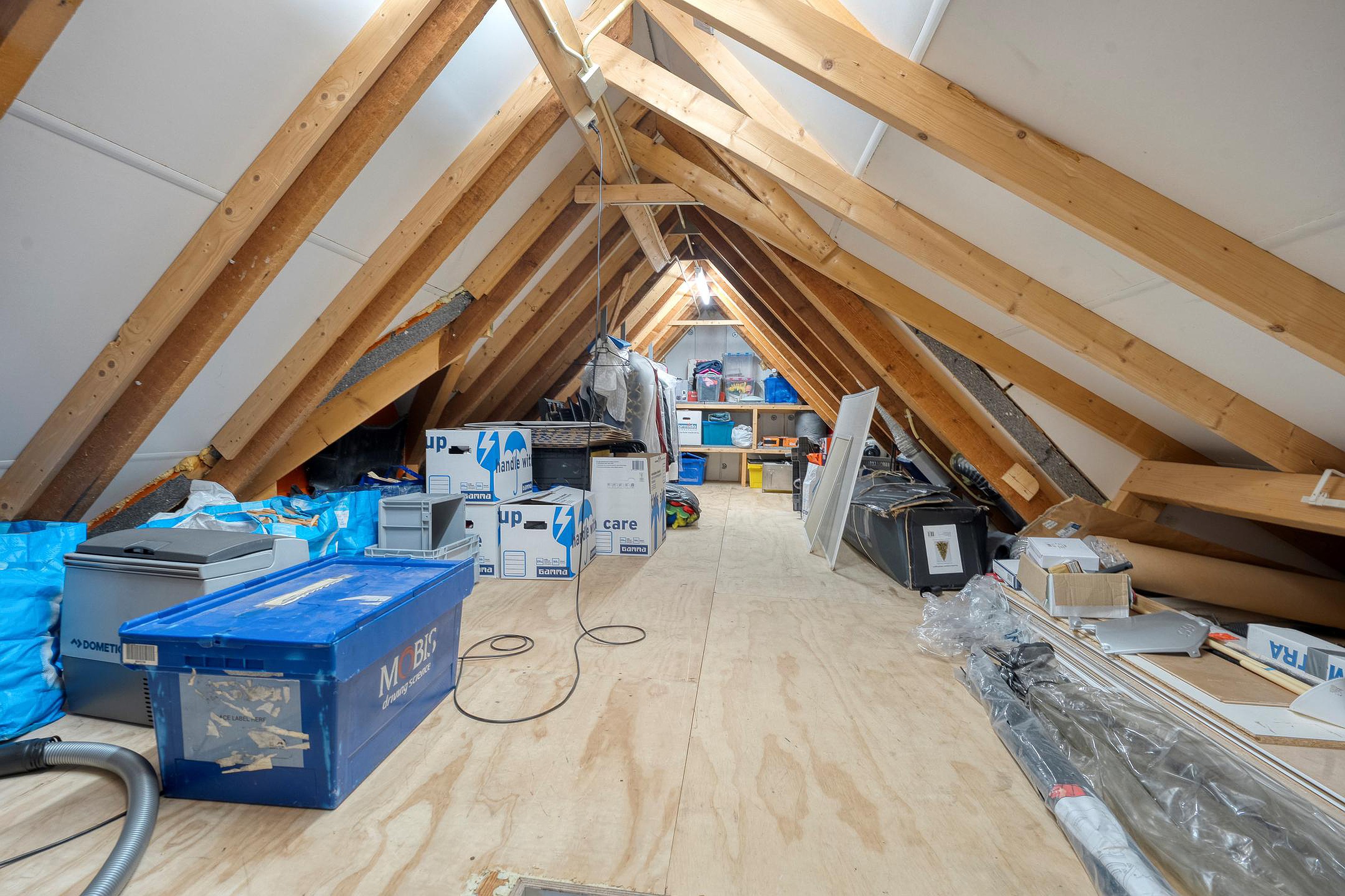 Middels een vlizotrap is de zeer grote bergzolder bereikbaar. Met volledige stahoogte biedt deze verdieping een schat aan extra ruimte. Denk hierbij aan het realiseren van een vaste trap, waardoor er eenvoudig een extra hobby- of speelruimte gecreëerd kan worden.