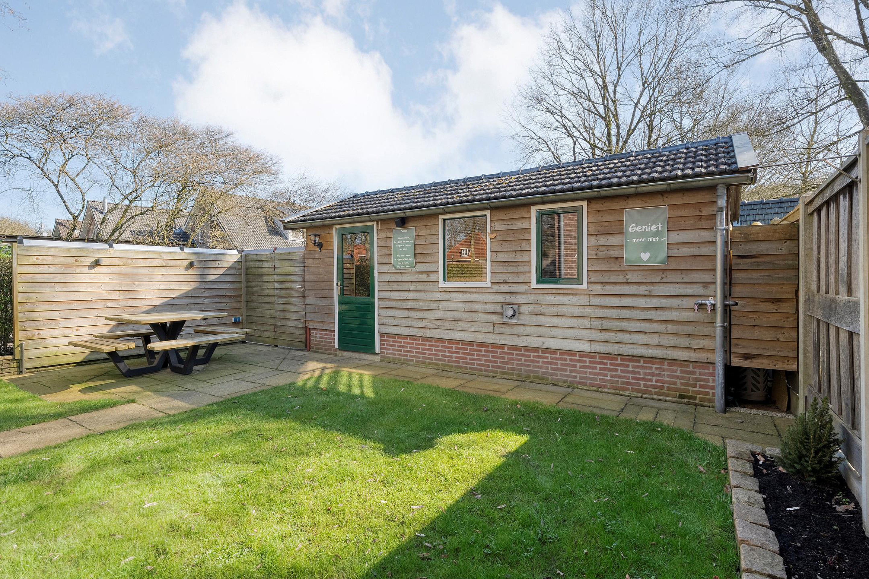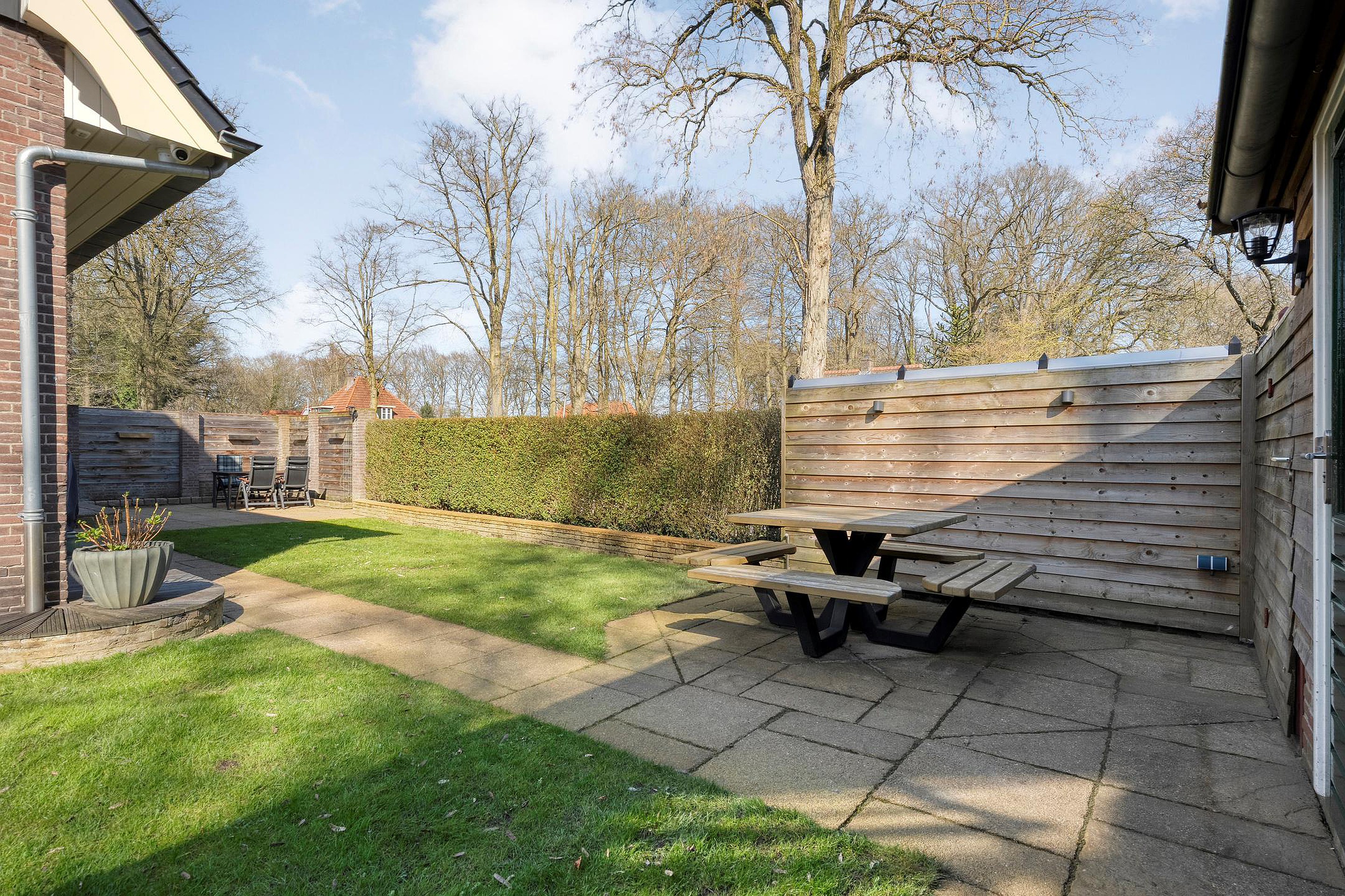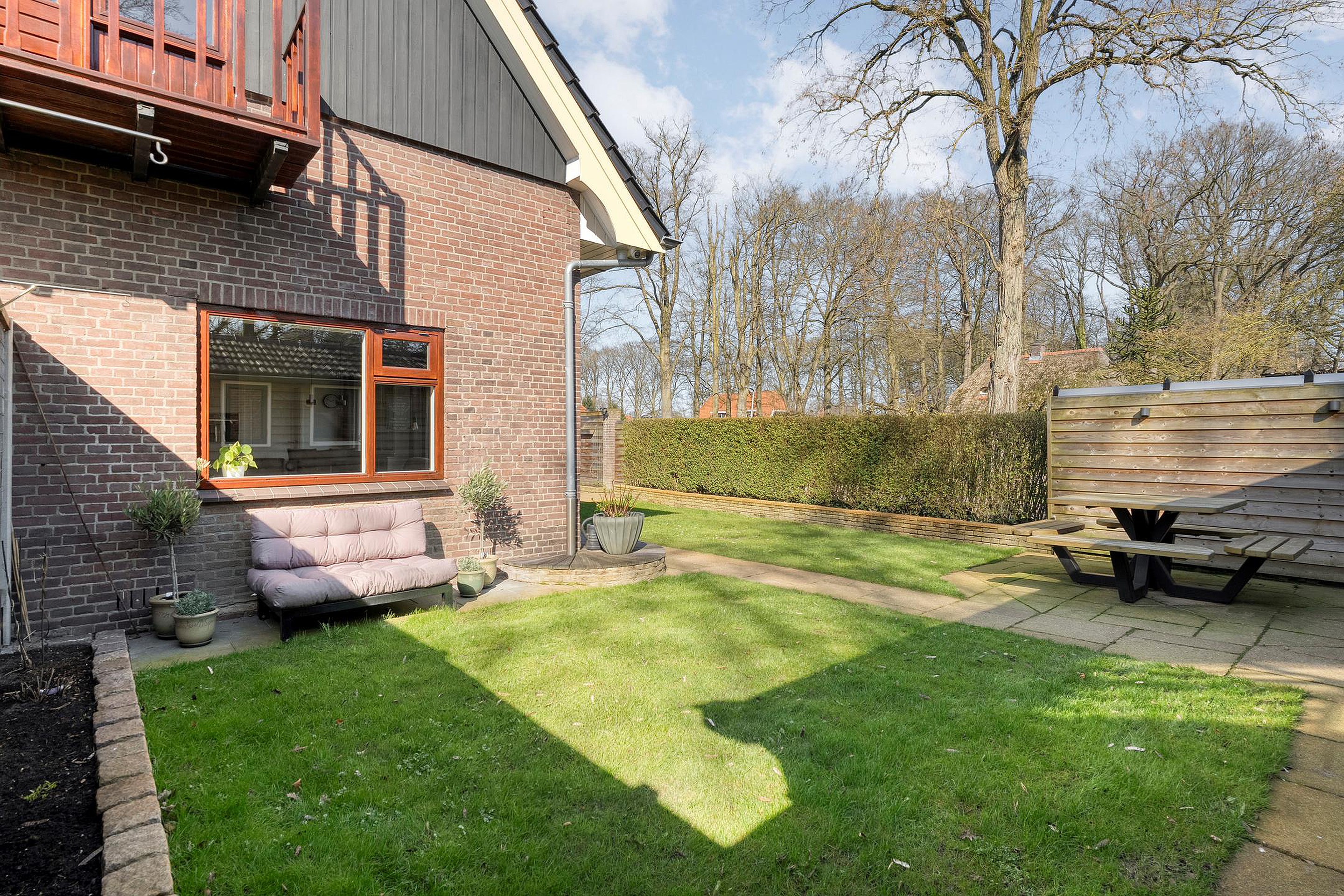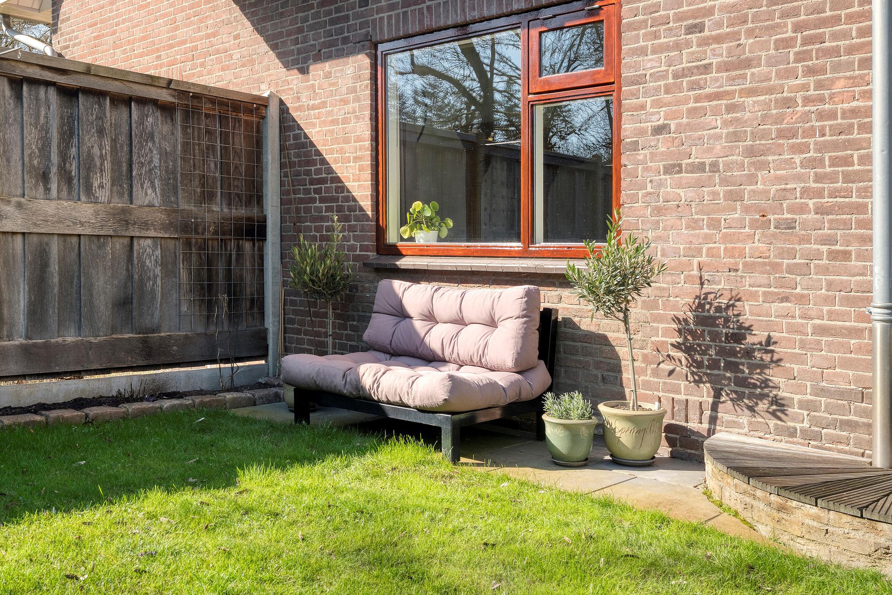 De tuin is een heerlijke plek om tot rust te komen. Dankzij de ligging op het zuidoosten geniet u hier gedurende de dag altijd van een zonnig plekje. De tuin is goed afgeschermd, wat zorgt voor een optimaal gevoel van vrijheid. Direct achter het perceel ligt een kindvriendelijk speelveld met een speeltuintje, waardoor kinderen hier veilig en naar hartenlust kunnen spelen.