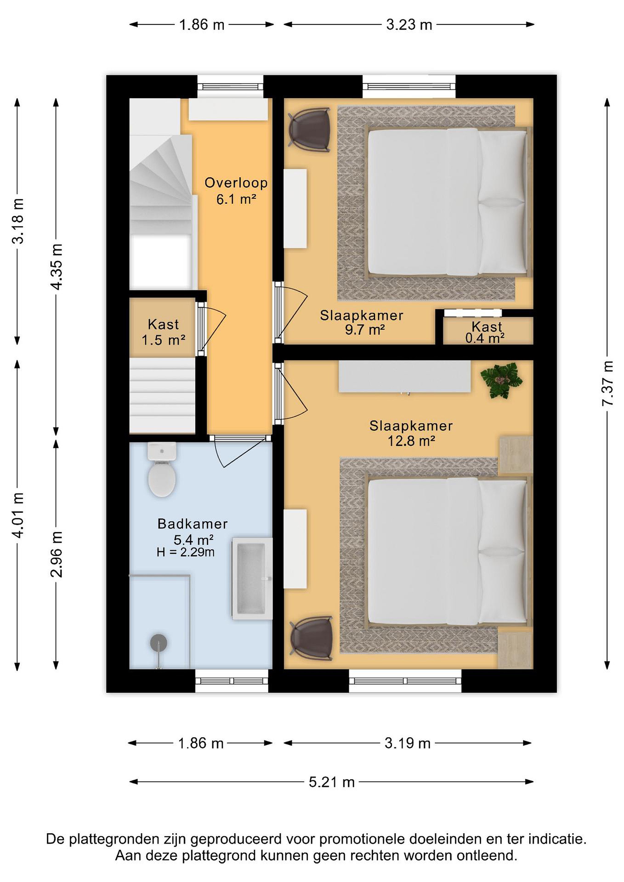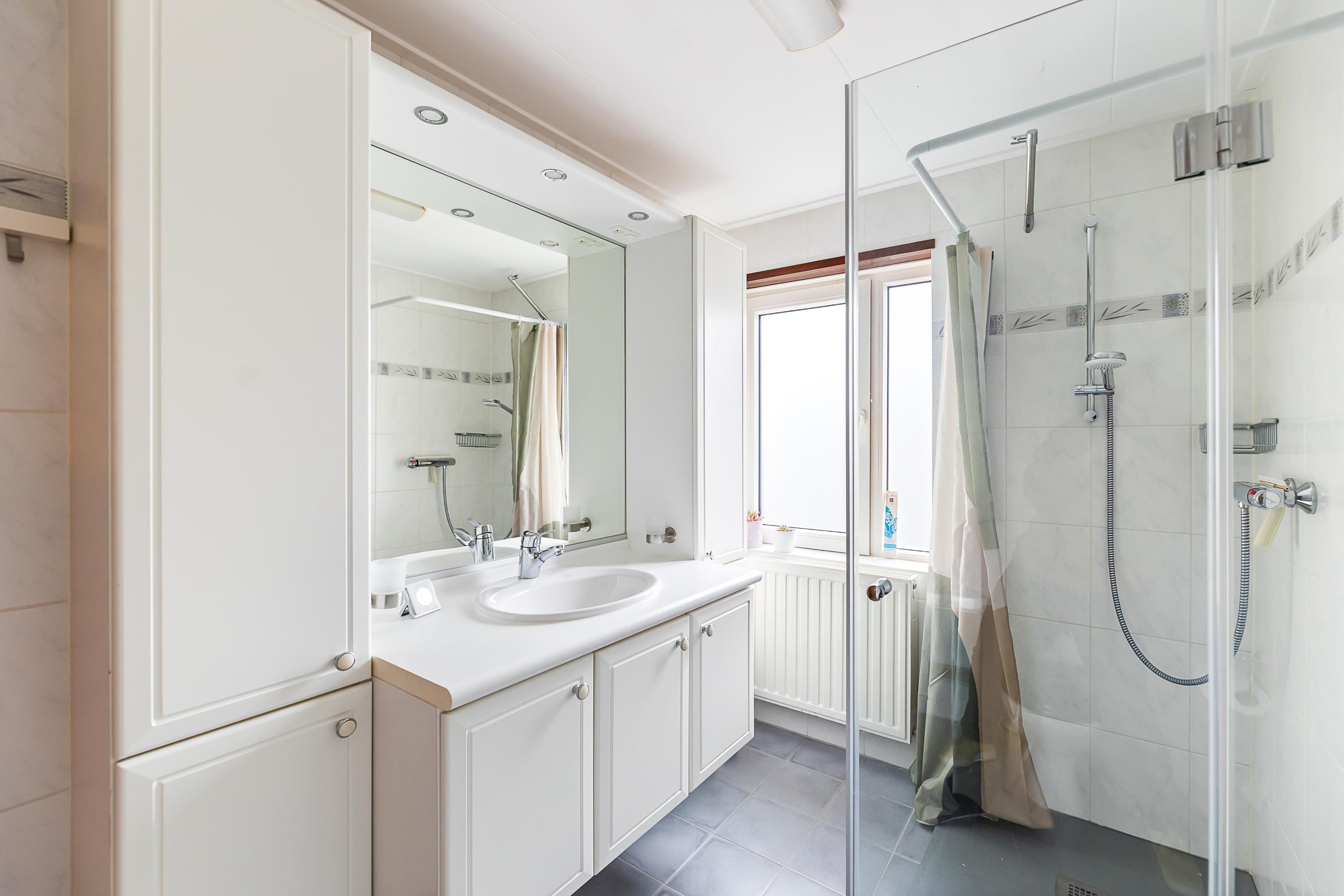Eerste verdieping Overloop met kastruimte en twee royale slaapkamers. De badkamer is netjes en voorzien van toilet, douche en wastafelmeubel.