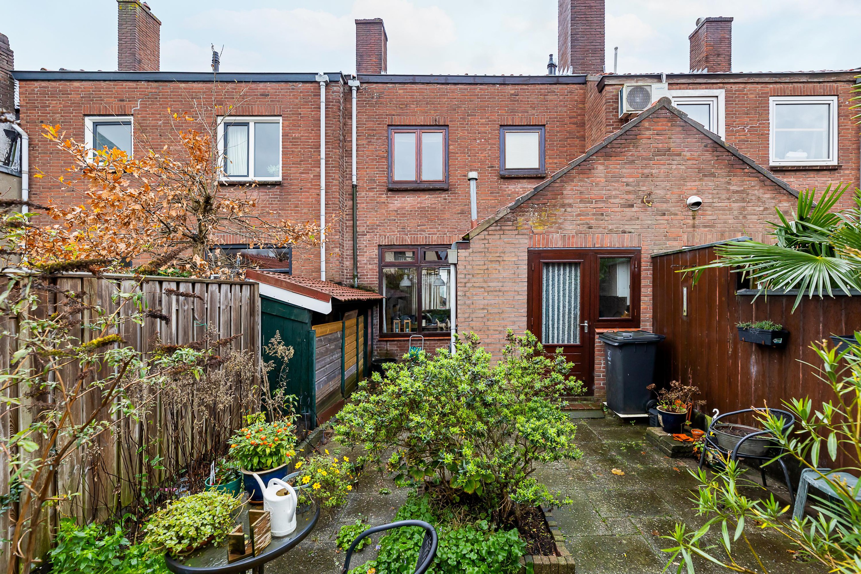 De stadstuin gelegen op het noordwesten is deels betegeld en voorzien van een berging en borders met vaste planten.