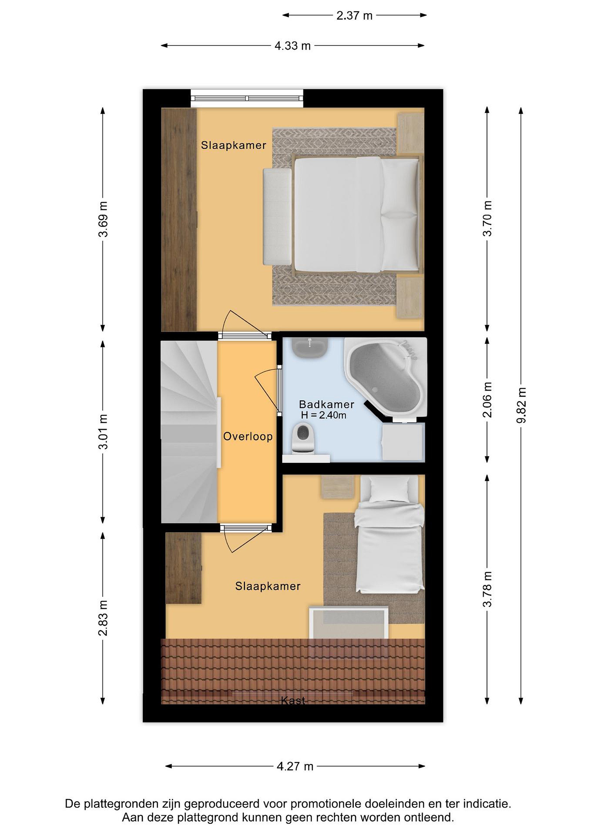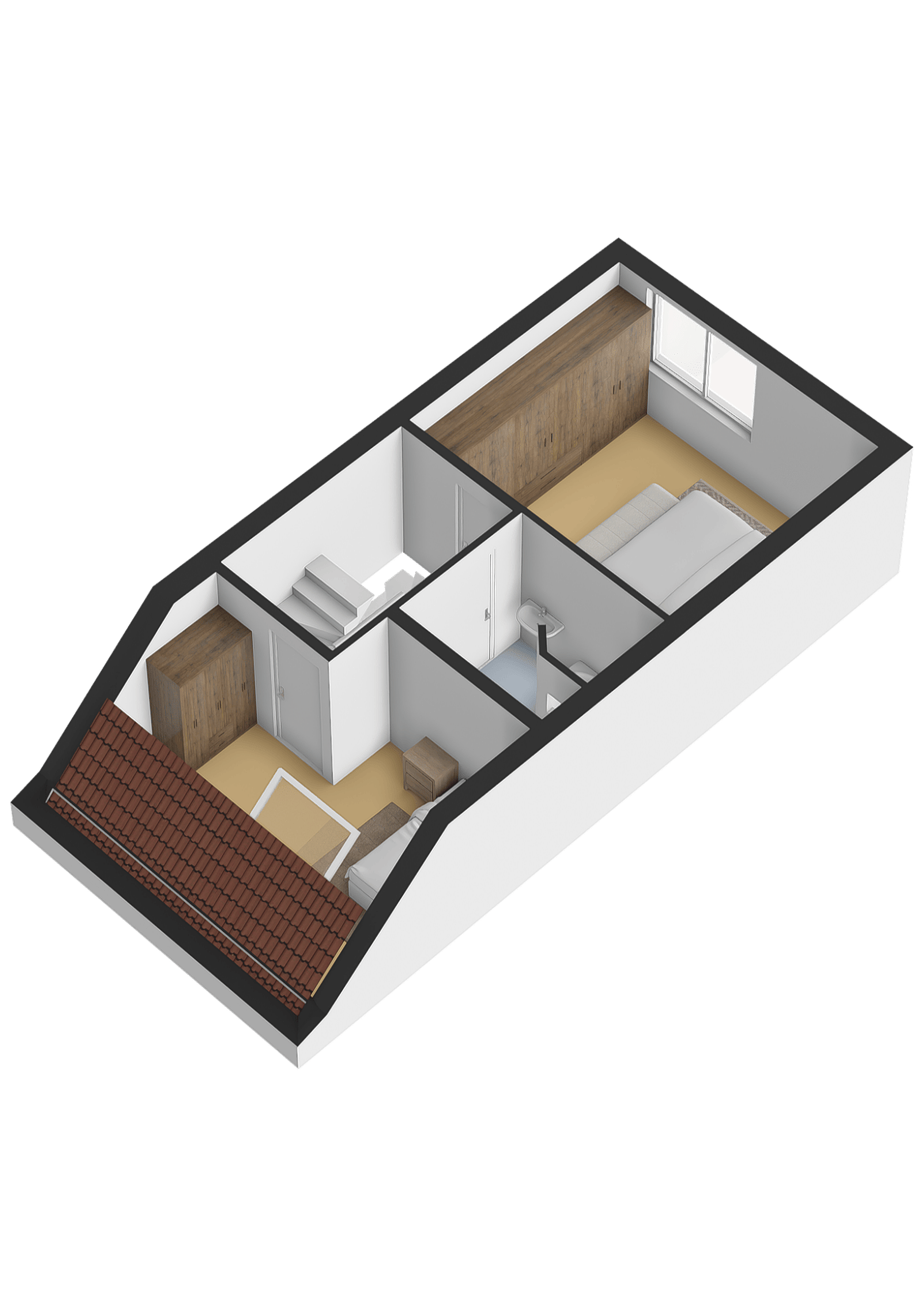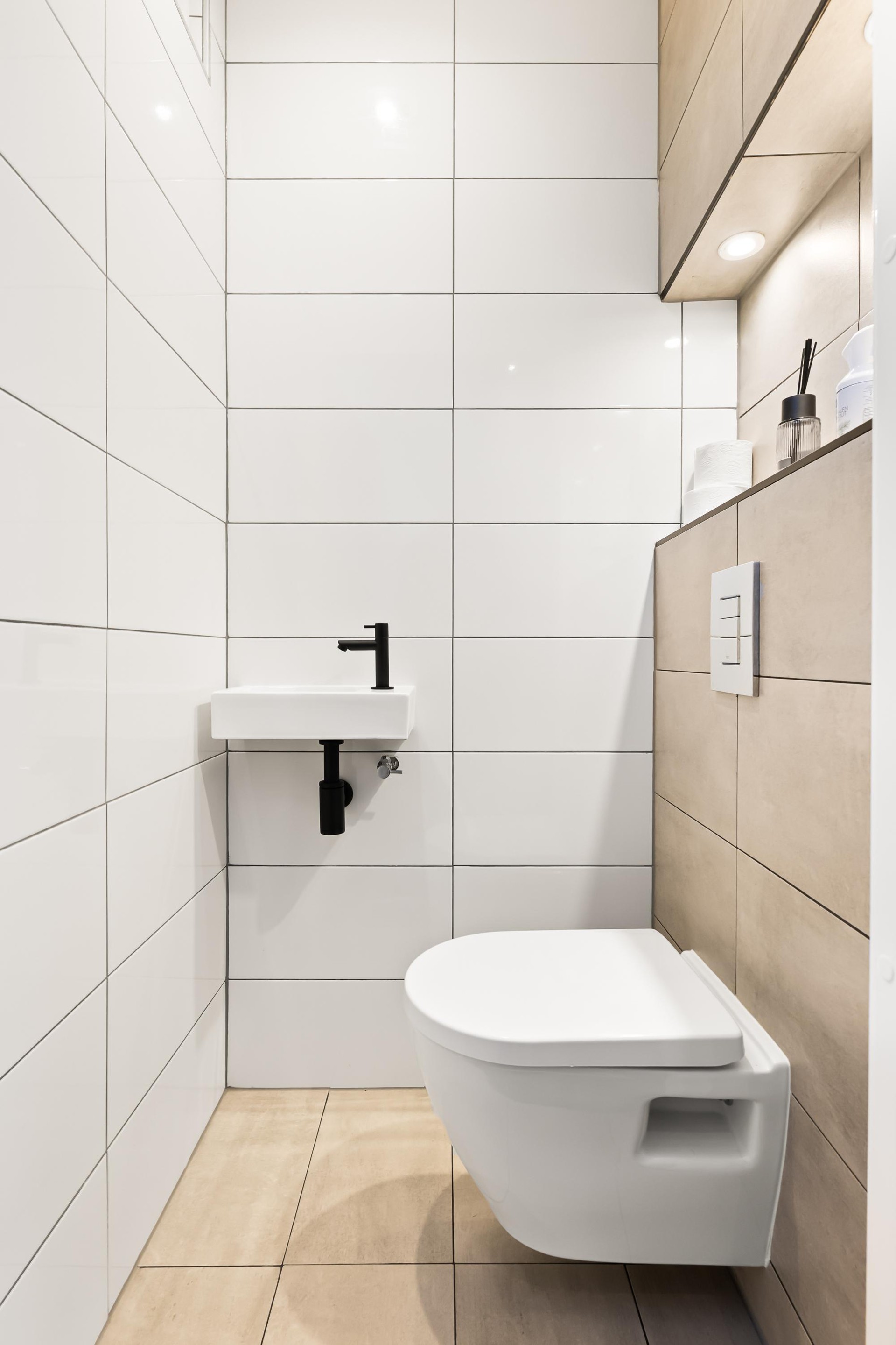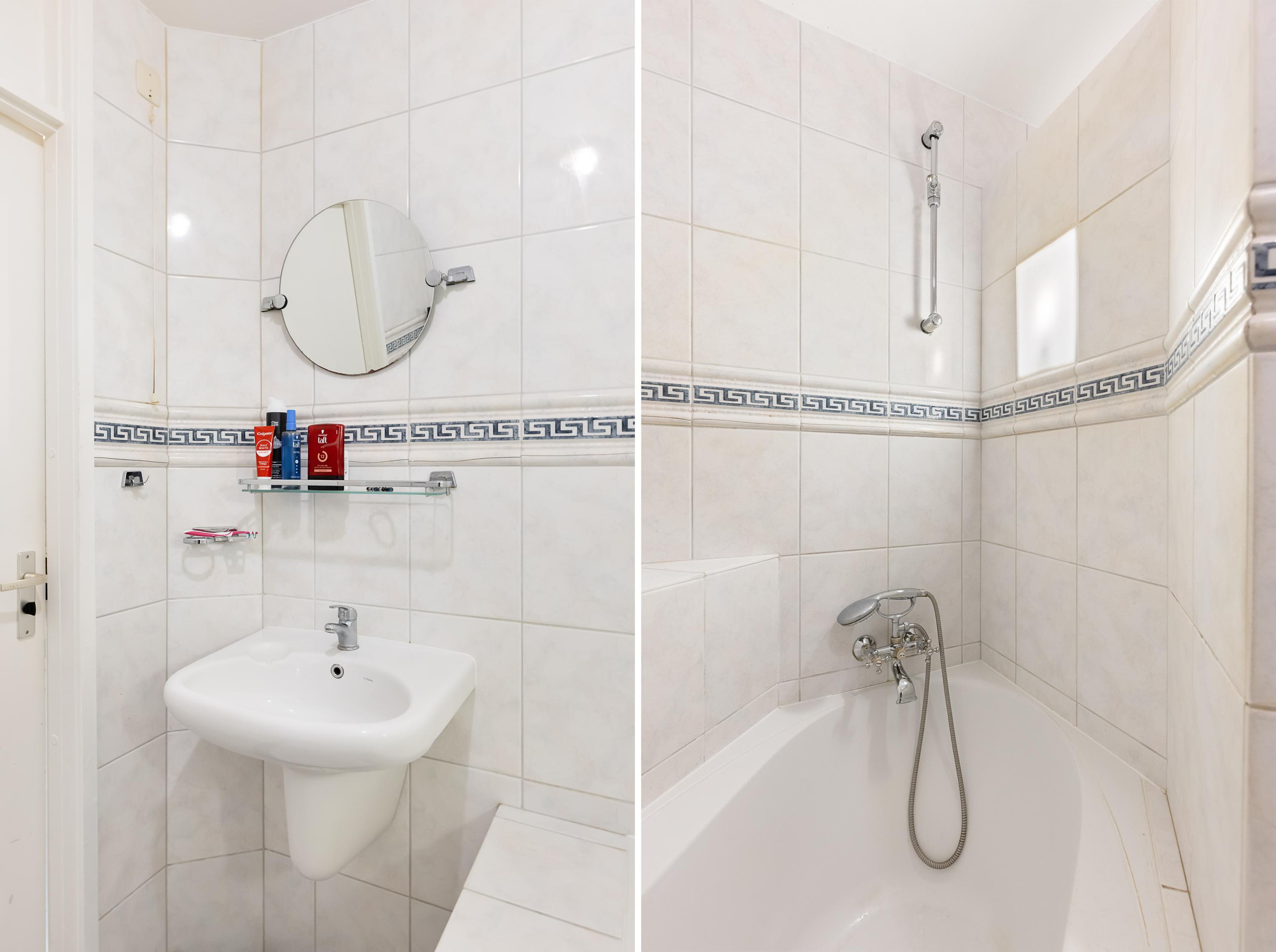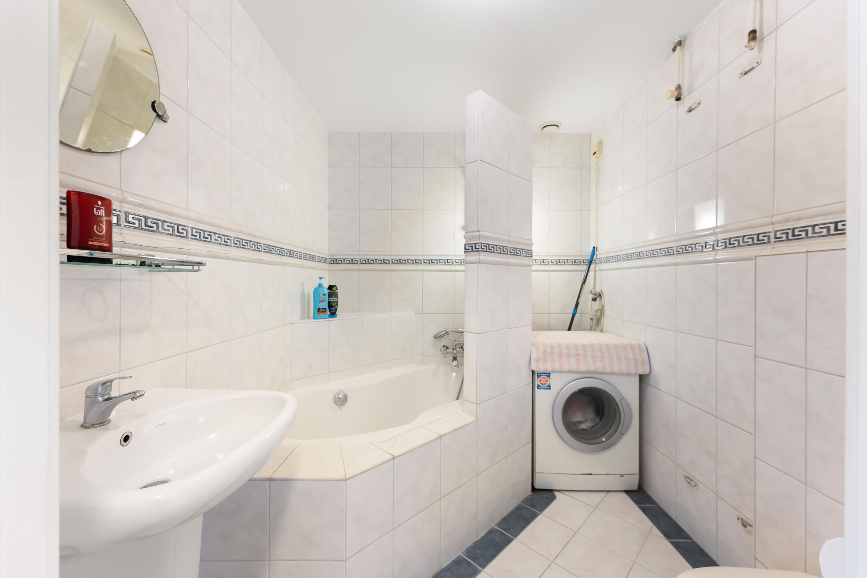 Via de ruime overloop bereiken we de twee slaapkamers. Deze zijn beide goed van formaat. De badkamer is voorzien van een ligbad, wastafel, toilet en de witgoedaansluiting.