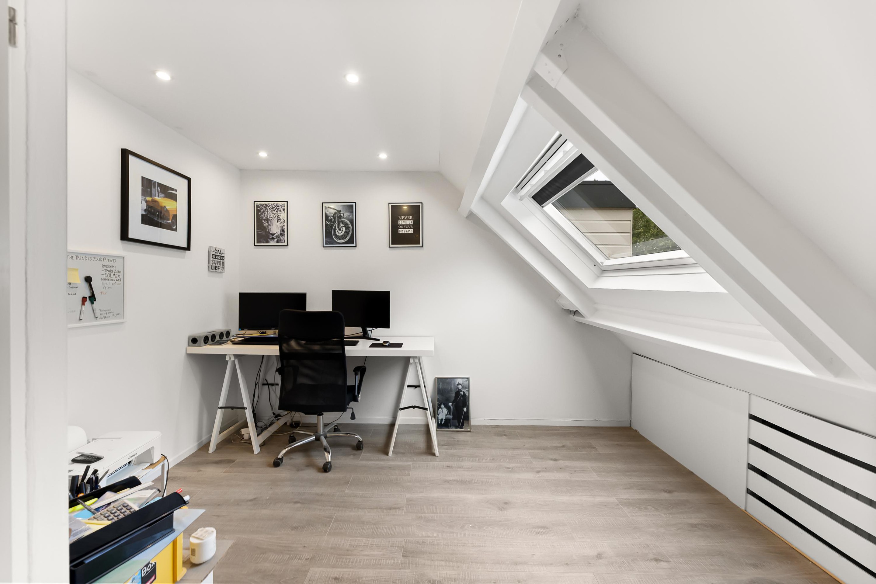 Overloop met aparte ruimte voor de CV-opstelling. De derde slaapkamer is royaal te noemen.