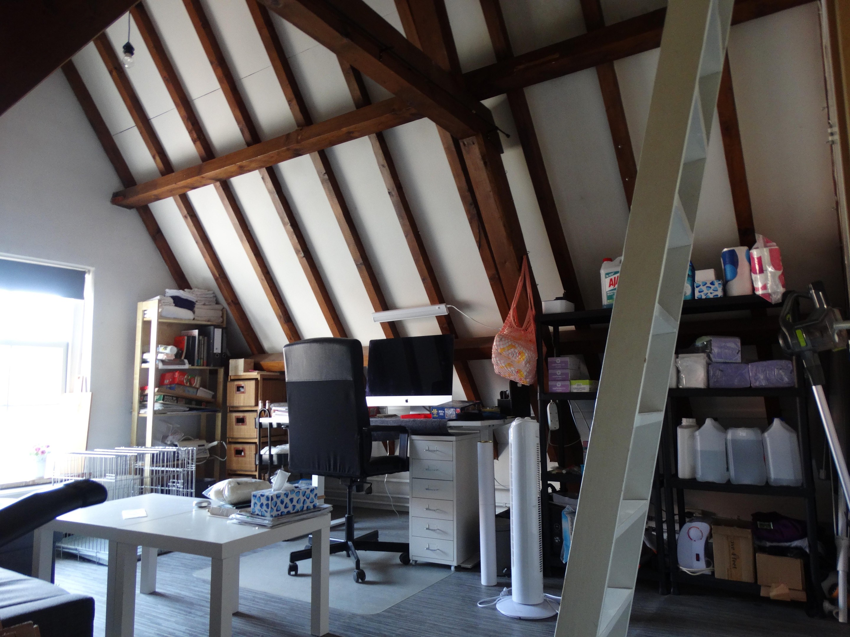 De tweede verdieping is een open zolderruimte met opstelling c.v.combiketel. Deze ruimte, wordt momenteel gebruikt als opslag, maar kan ook gebruikt worden als slaapkamer of een andere creatieve invulling. Hier bevindt zich ook de eenvoudige, nette badkamer met douche, wastafel en toilet.