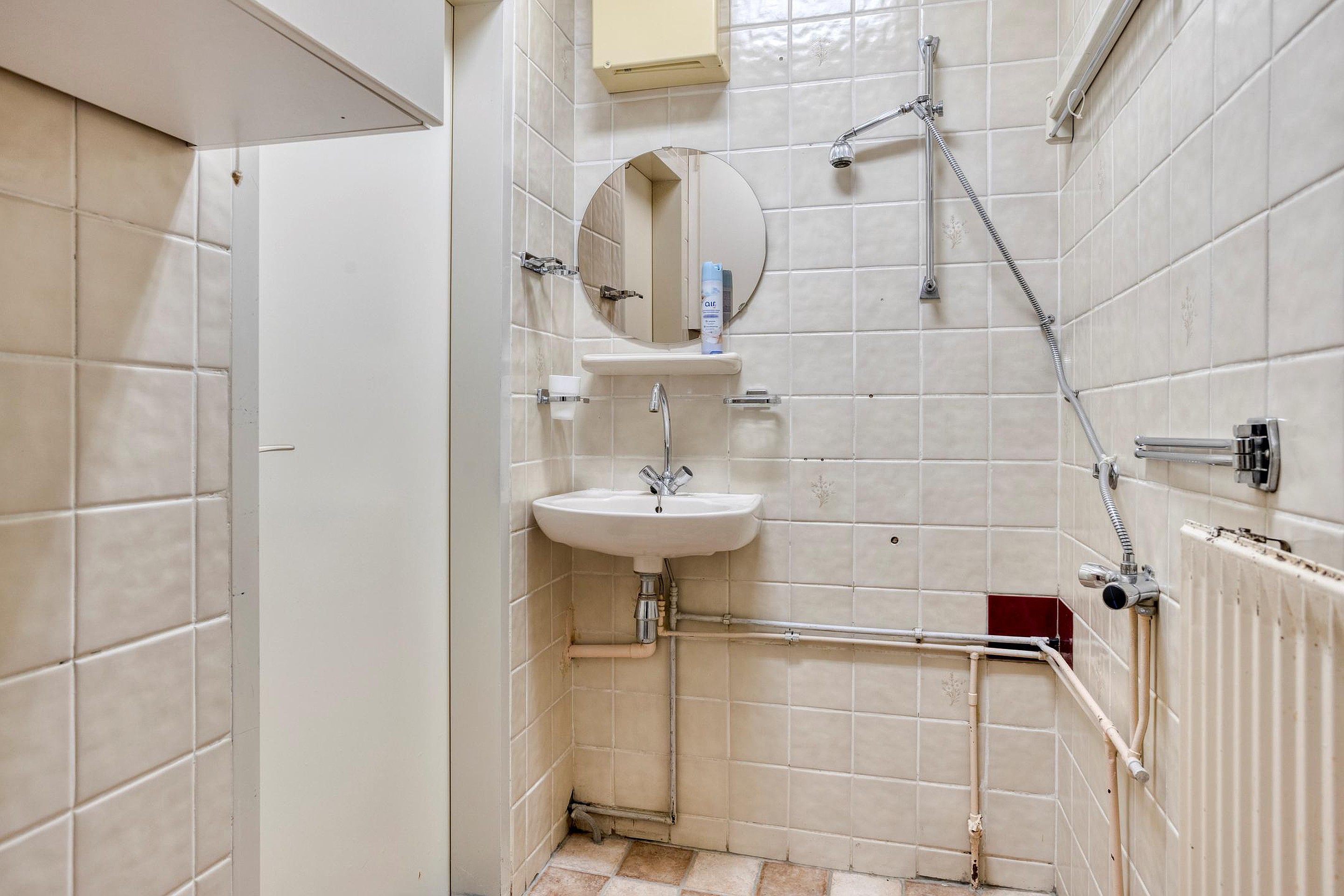 Aan de achterzijde is in aanbouw de keukenruimte gerealiseerd, die tevens toegang biedt tot de tuin. De keuken is deels uitgevoerd met inbouwapparatuur, waaronder een oven, koelkast en gaskookplaat. Daarnaast vind je op de begane grond een fijne slaapkamer van ca. 12 m2 en een badkamer, voorzien van een douche, toilet en wastafel.